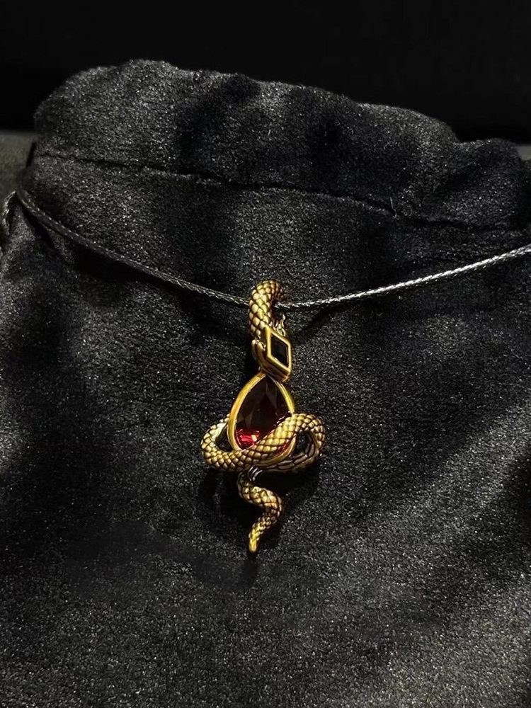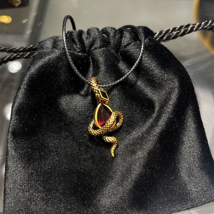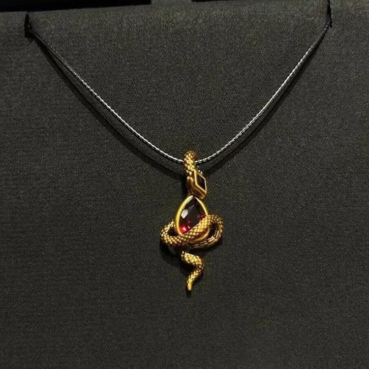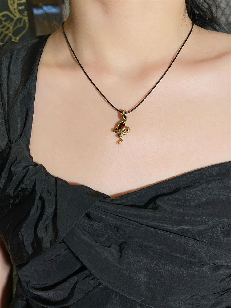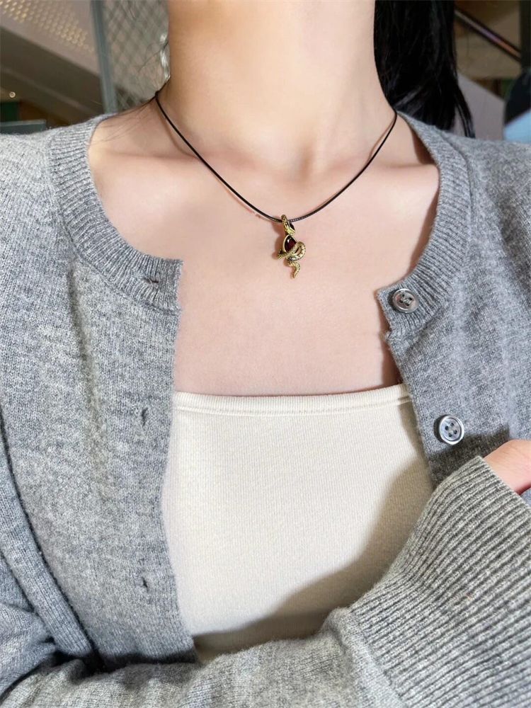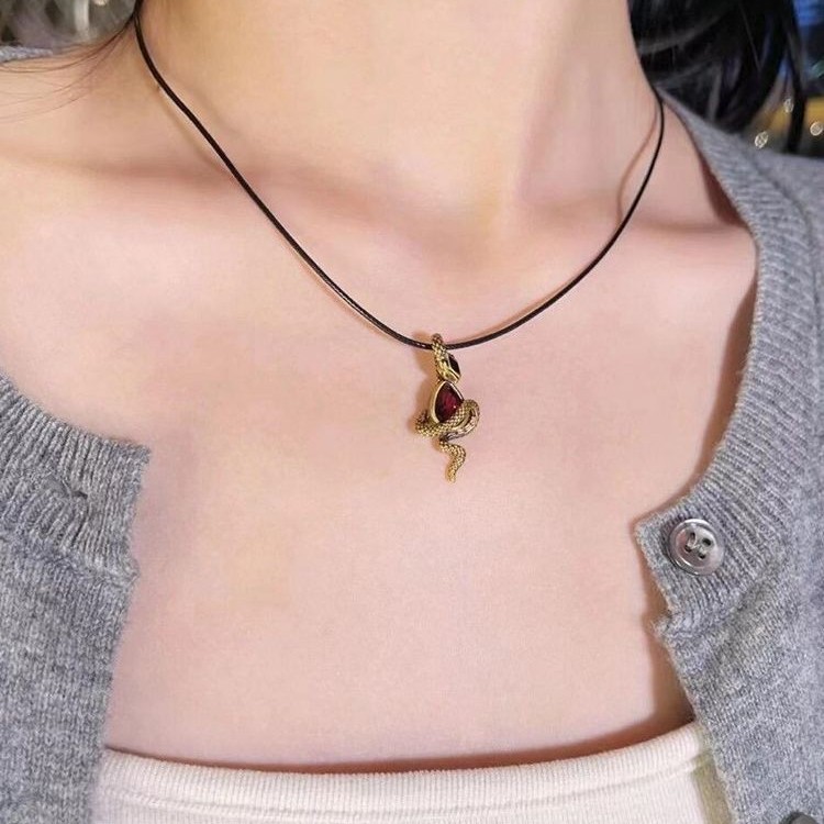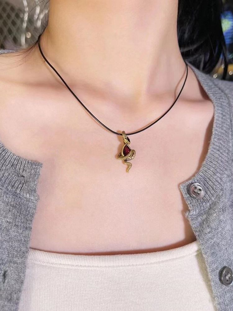 轻奢复古风红锆水滴灵蛇项链女精致百搭颈链小众个性设计感毛衣链