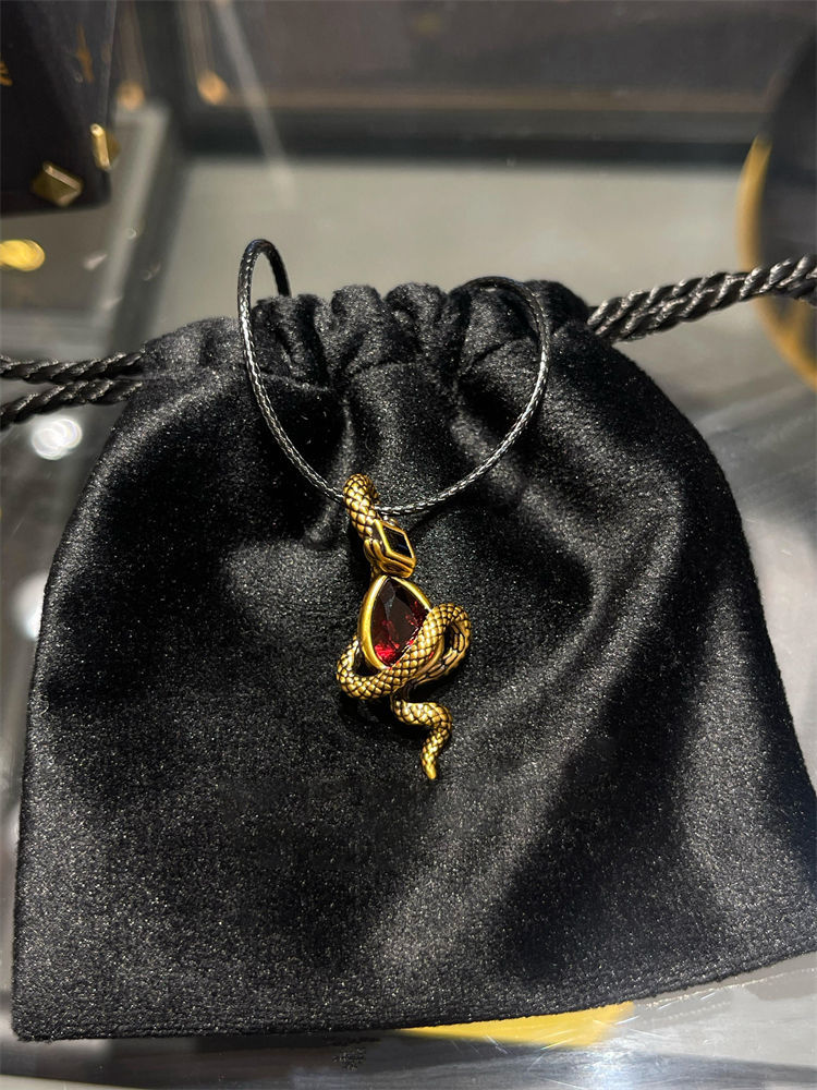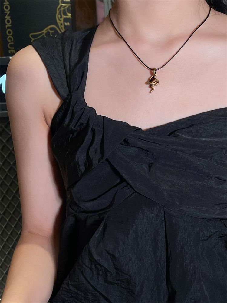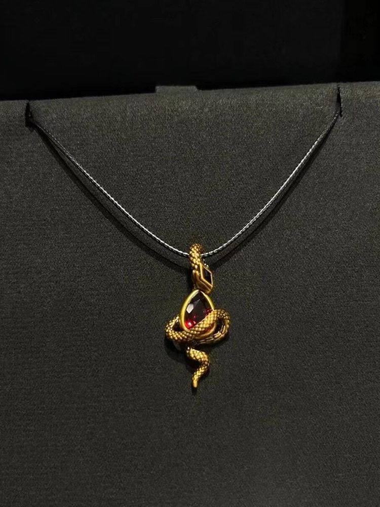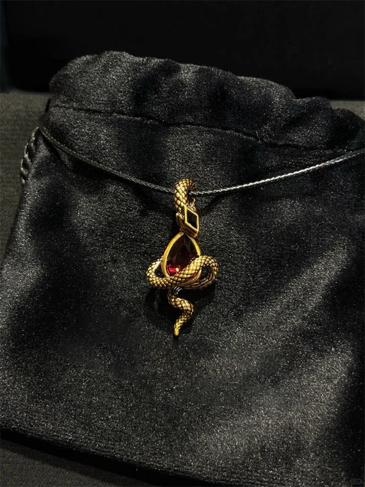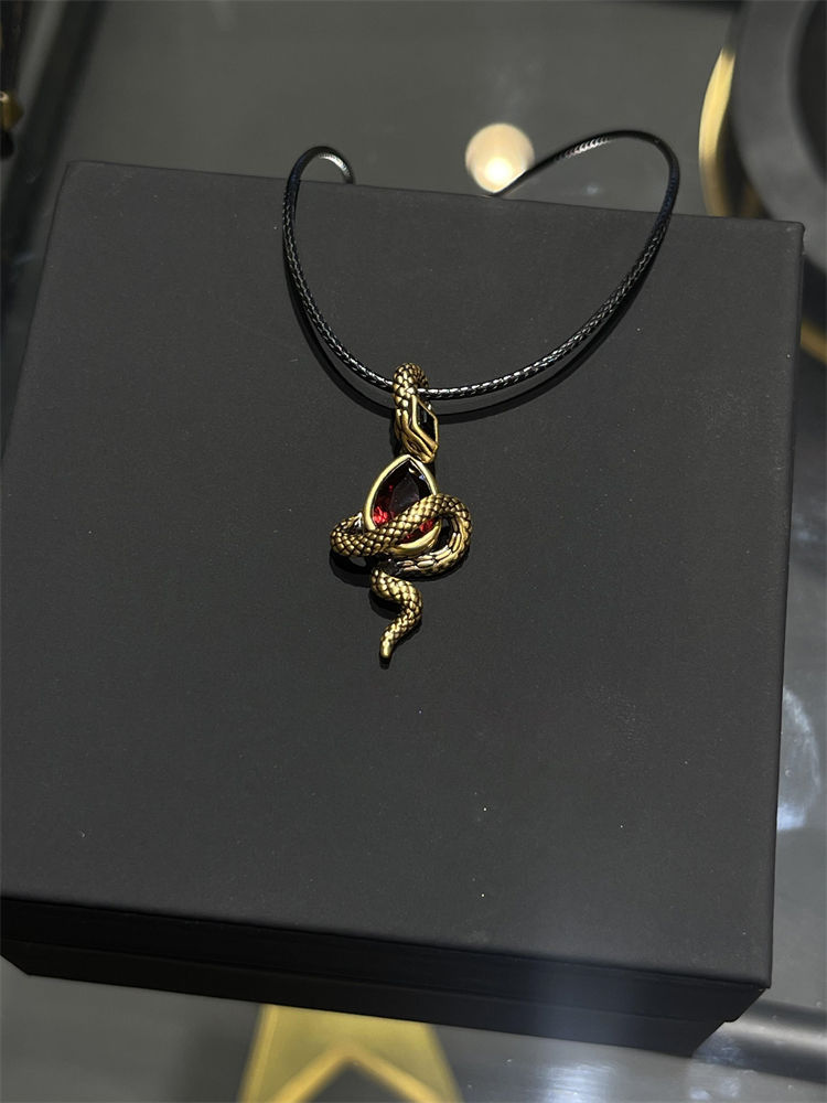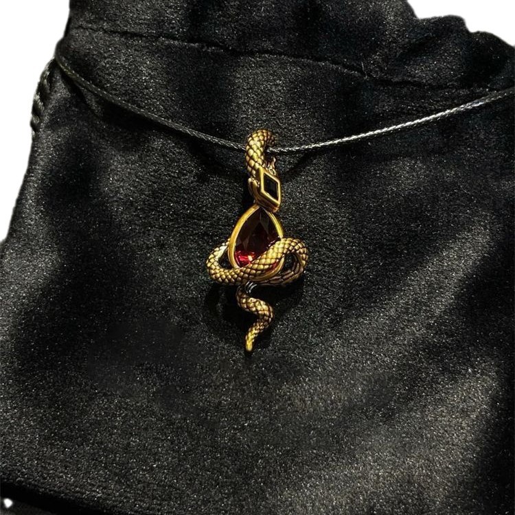 轻奢复古风红锆水滴灵蛇项链女精致百搭颈链小众个性设计感毛衣链