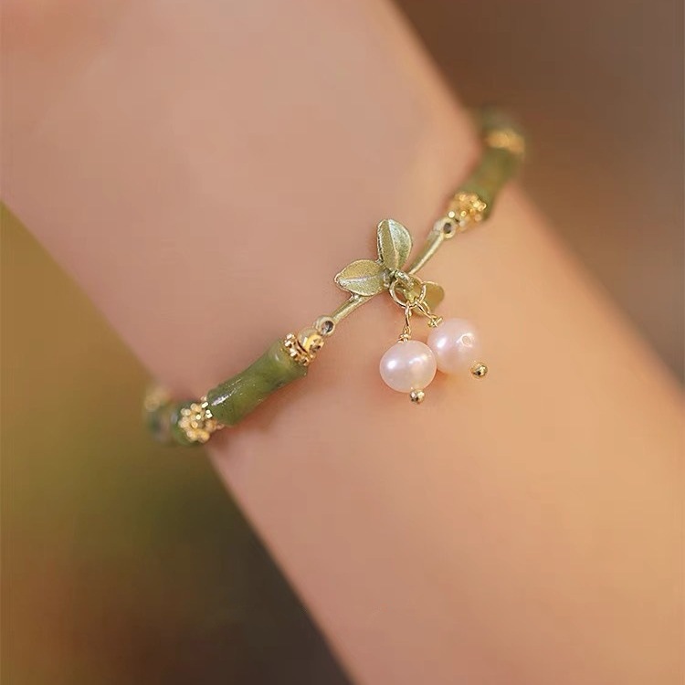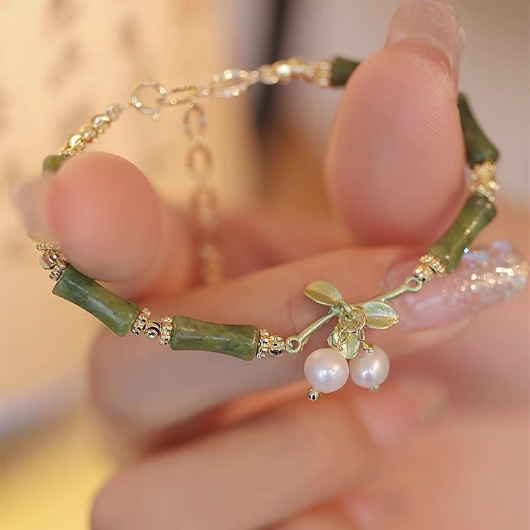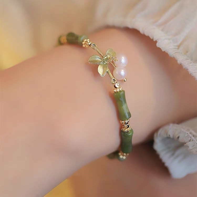 国风新中式竹节竹骨串珠女复古小众设计竹叶手串高级送闺蜜手链