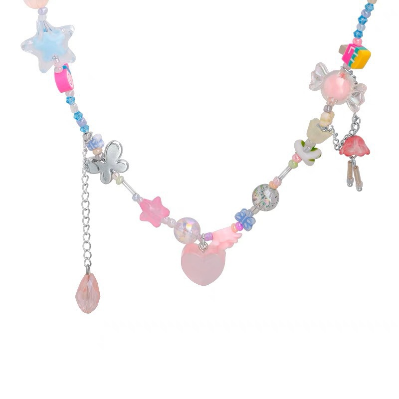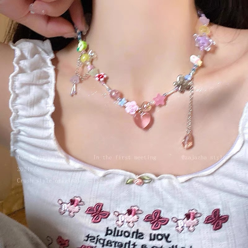 蜜桃粉!多巴胺爱心糖果项链女小众设计甜酷辣妹串珠锁骨链颈链