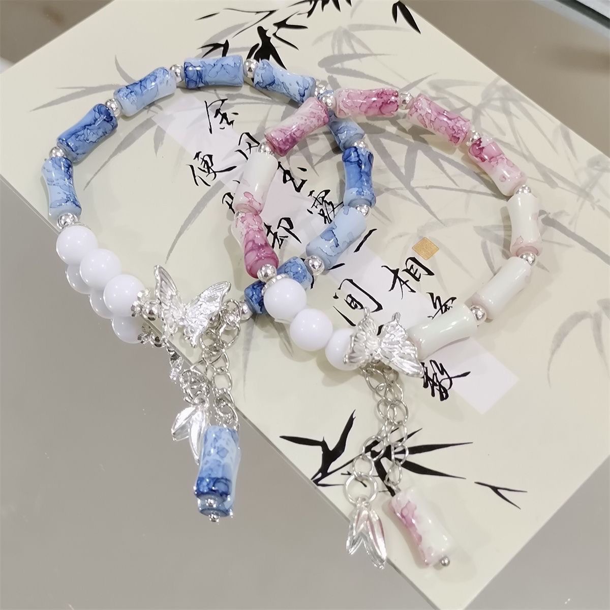 蝴蝶结爆花珠手链情侣手链小众高级感手工串珠手串直播批发