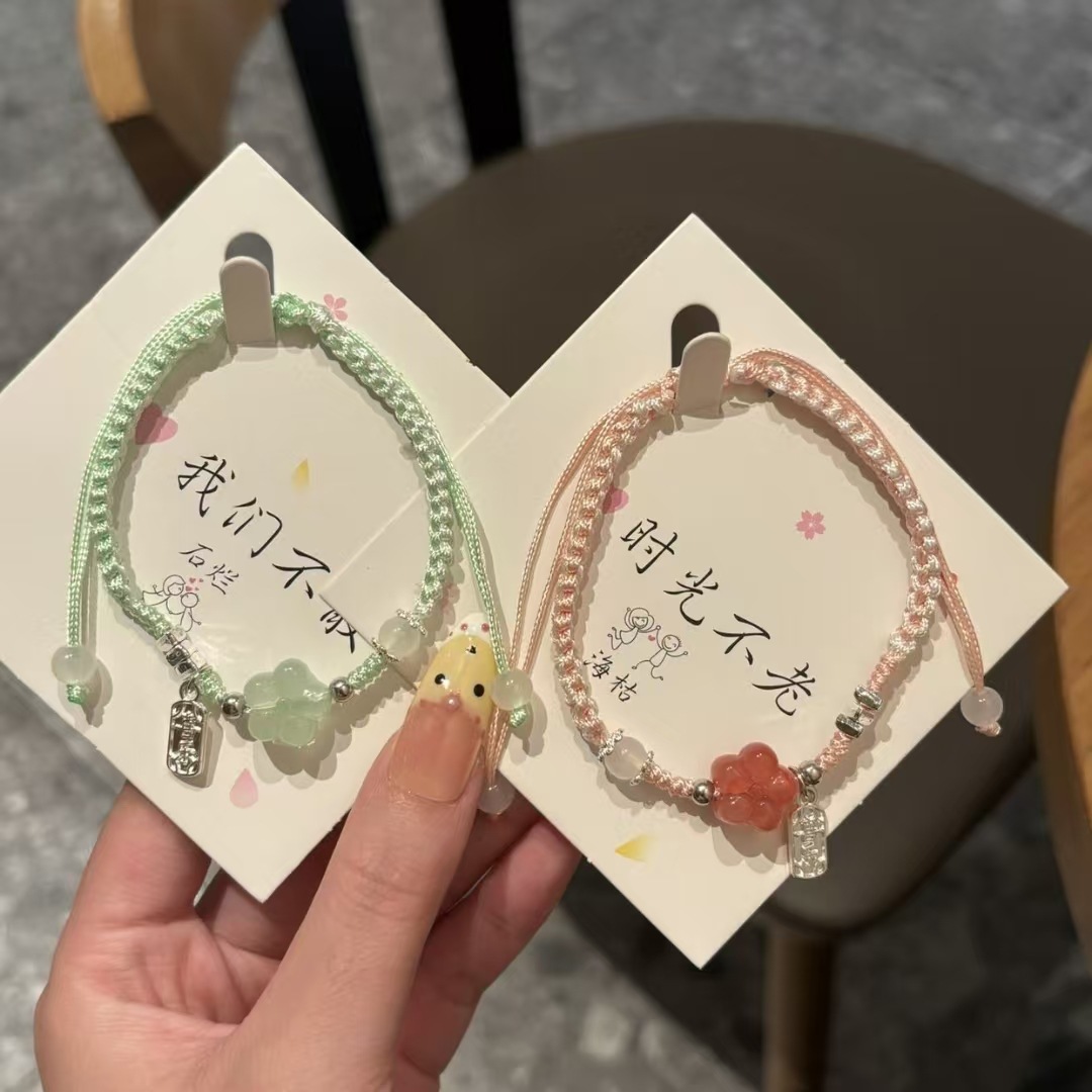 树脂国风少女梅花手链编织百搭情侣闺蜜手绳ins风小众百搭手串
