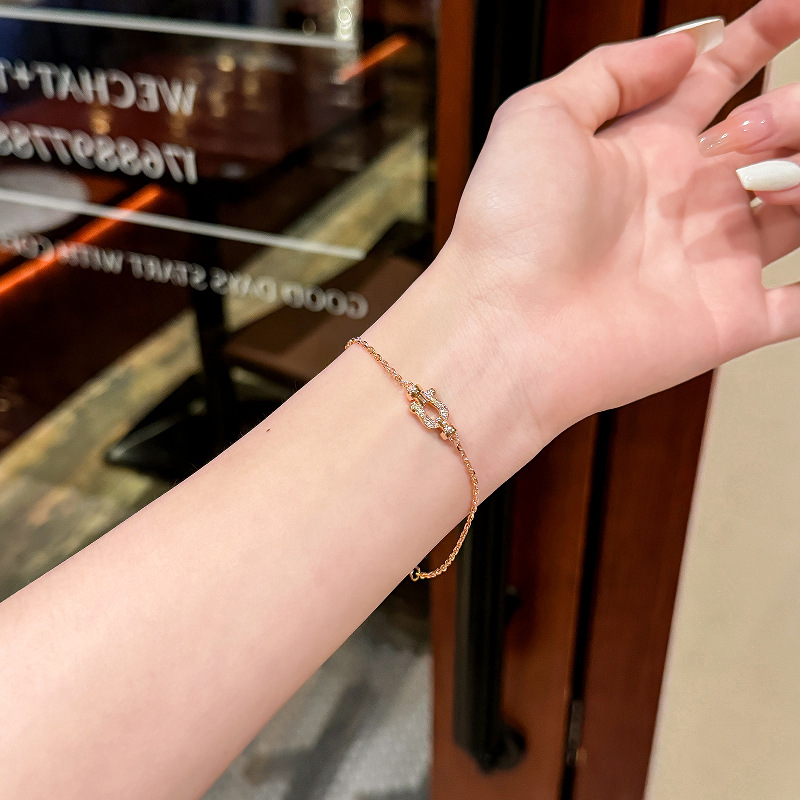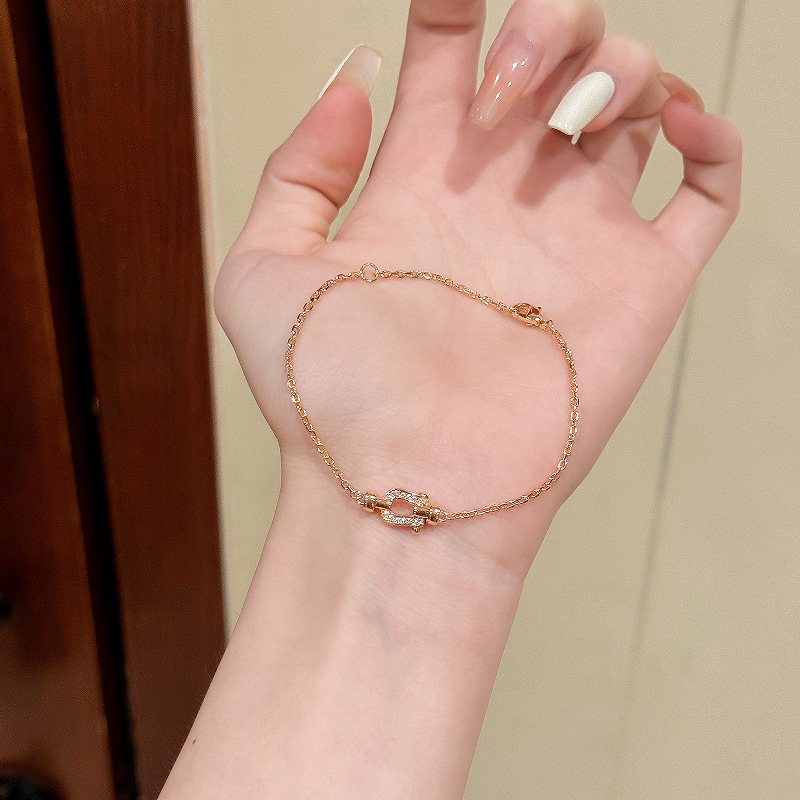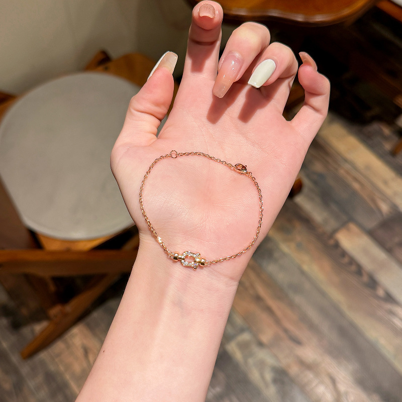 工厂直发ins马蹄扣手链女玫瑰金色 手镯手环带钻手串简约百搭女生