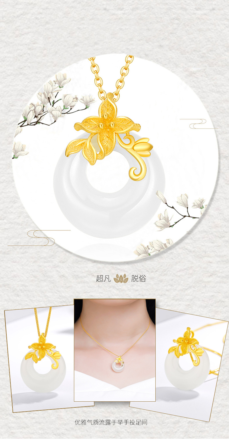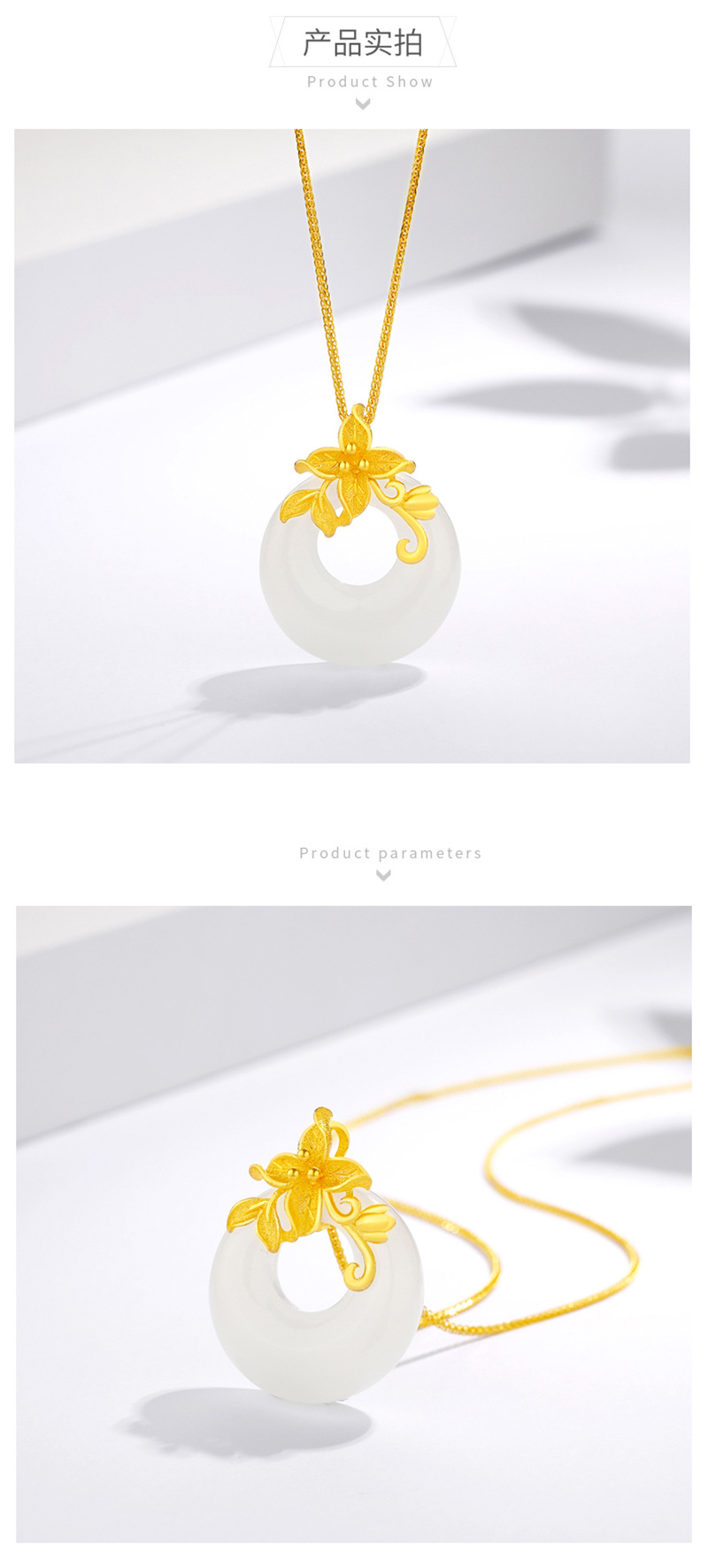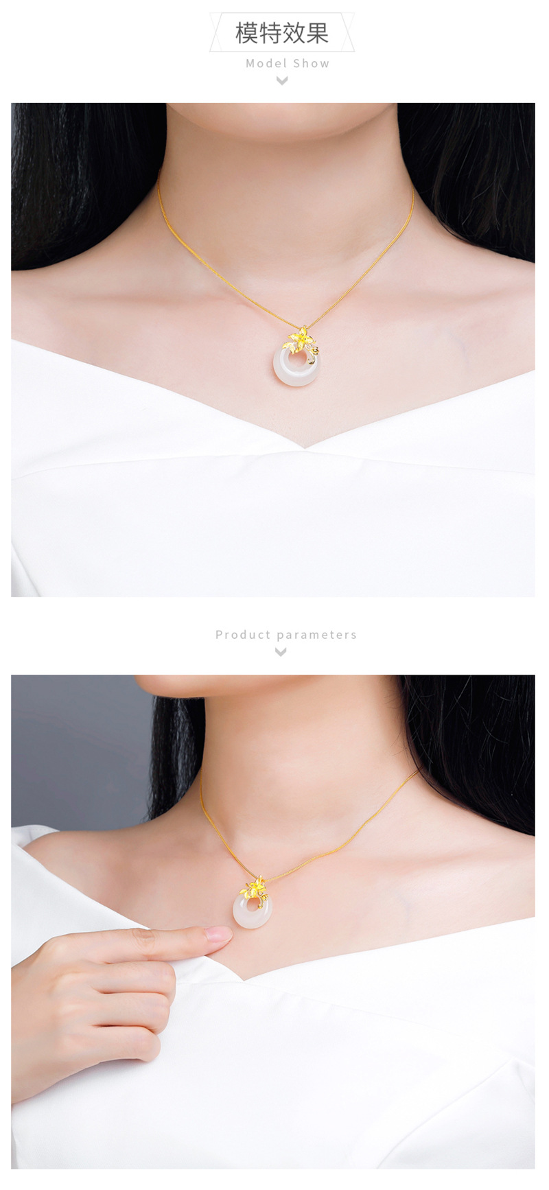 花朵平安扣项链女夏简约吊坠设计感小众花枝仿和田玉锁骨链新款潮