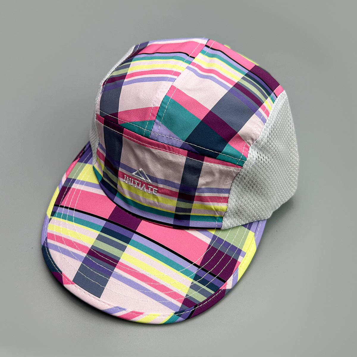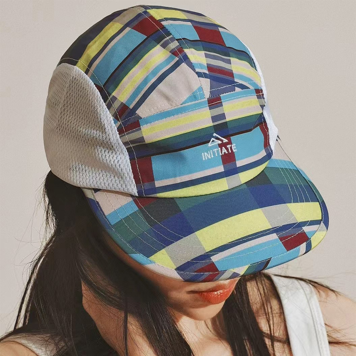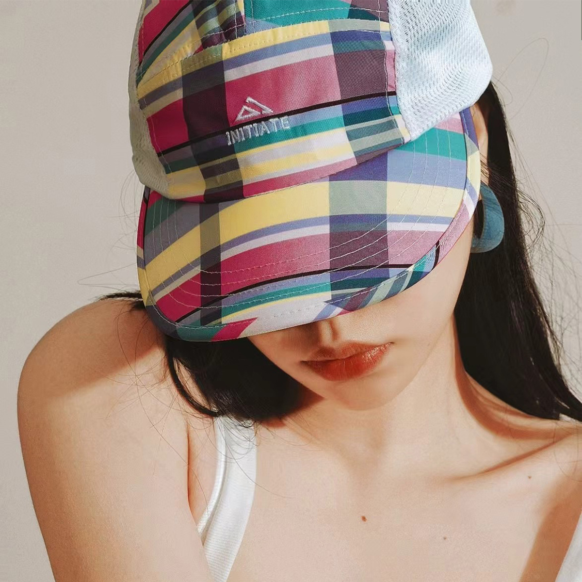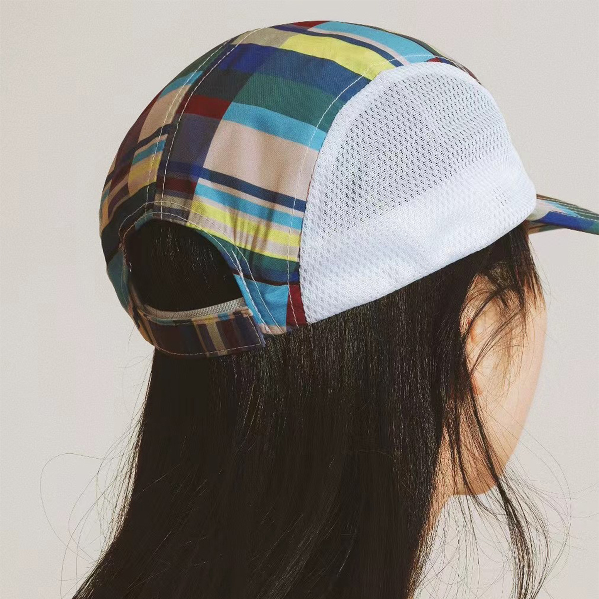 新款格纹刺绣字母速干网眼棒球帽男女拼色遮阳户外鸭舌帽子批发