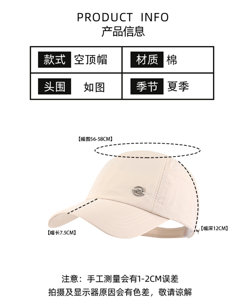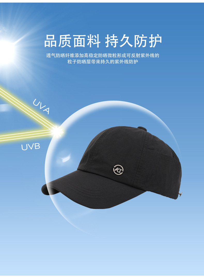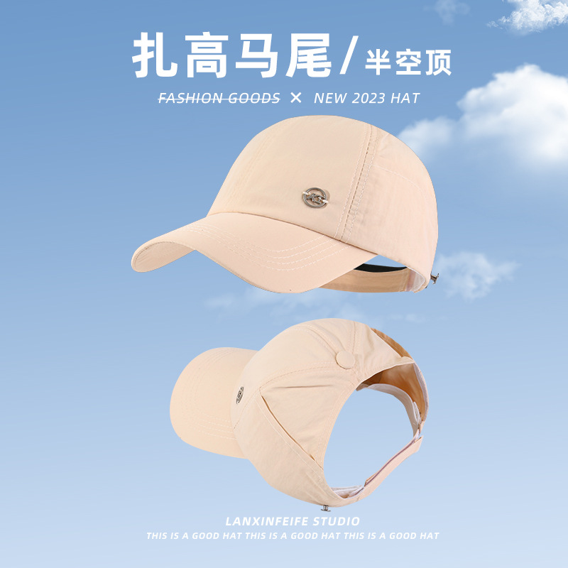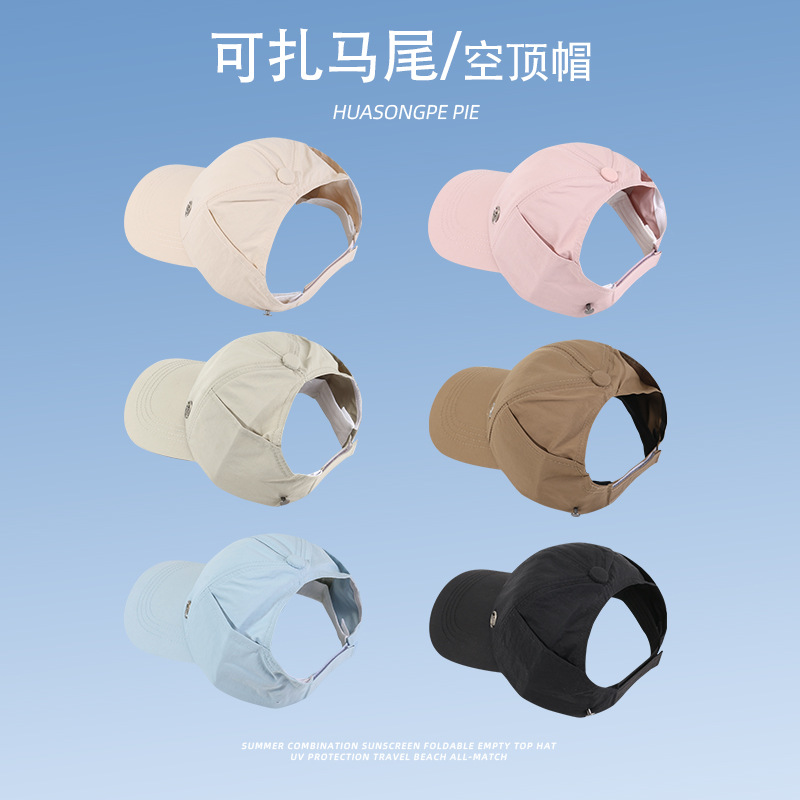 夏季棒球帽户外百搭防晒扎马尾时尚鸭舌帽软顶休闲显脸小遮阳帽子