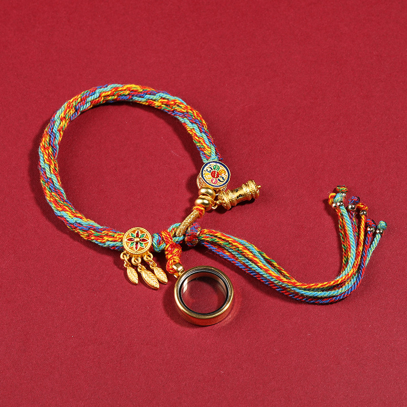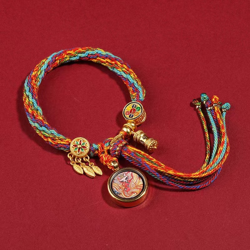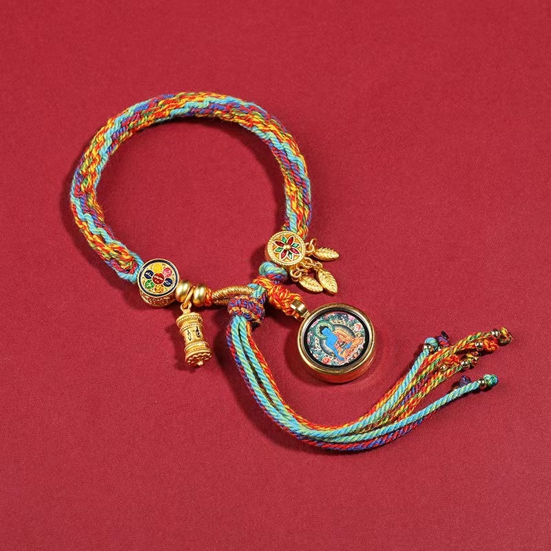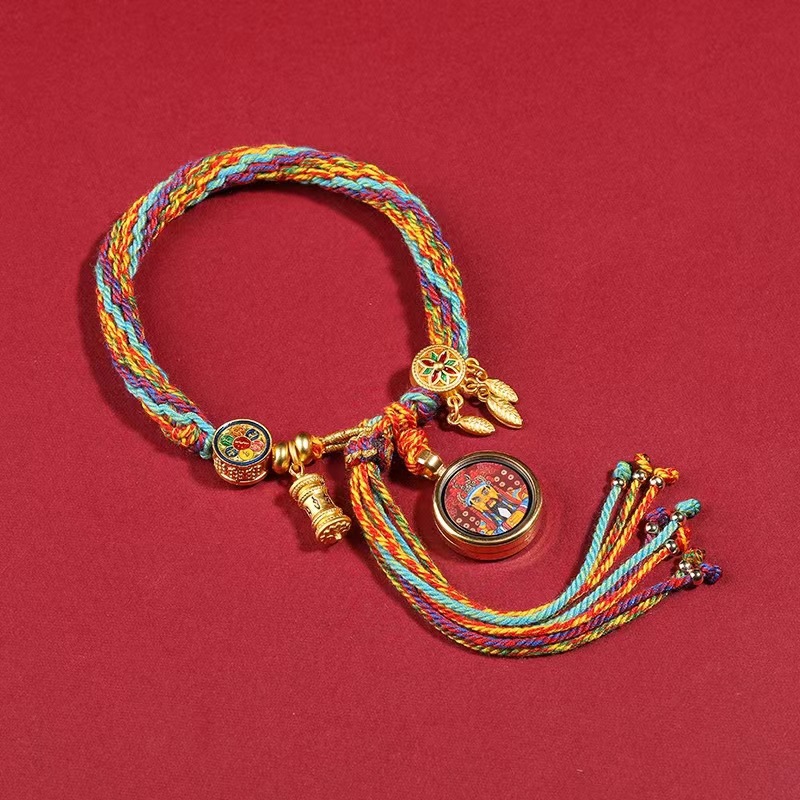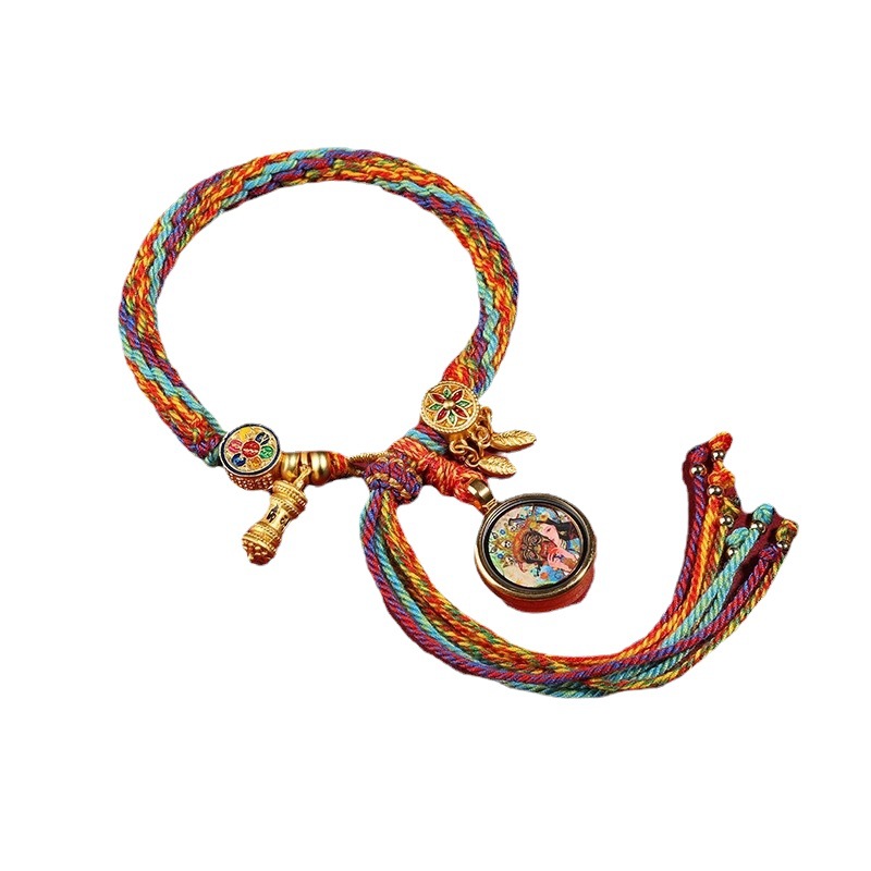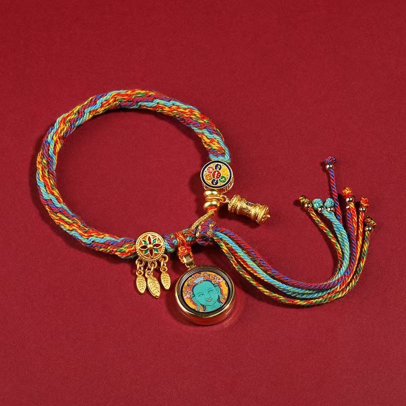 唐卡藏式手绳手搓棉绳编织手链五路眼扎基拉姆绿度母文