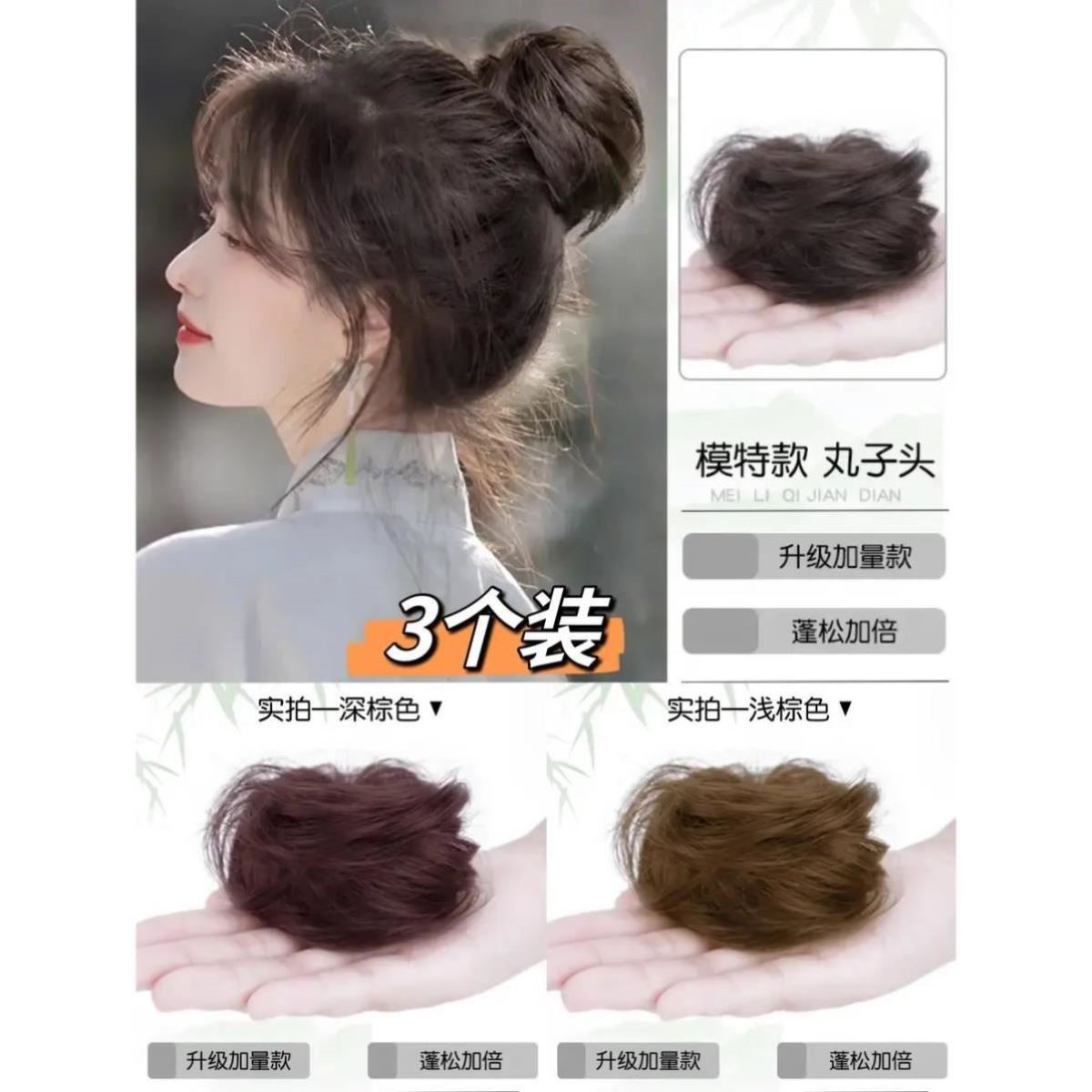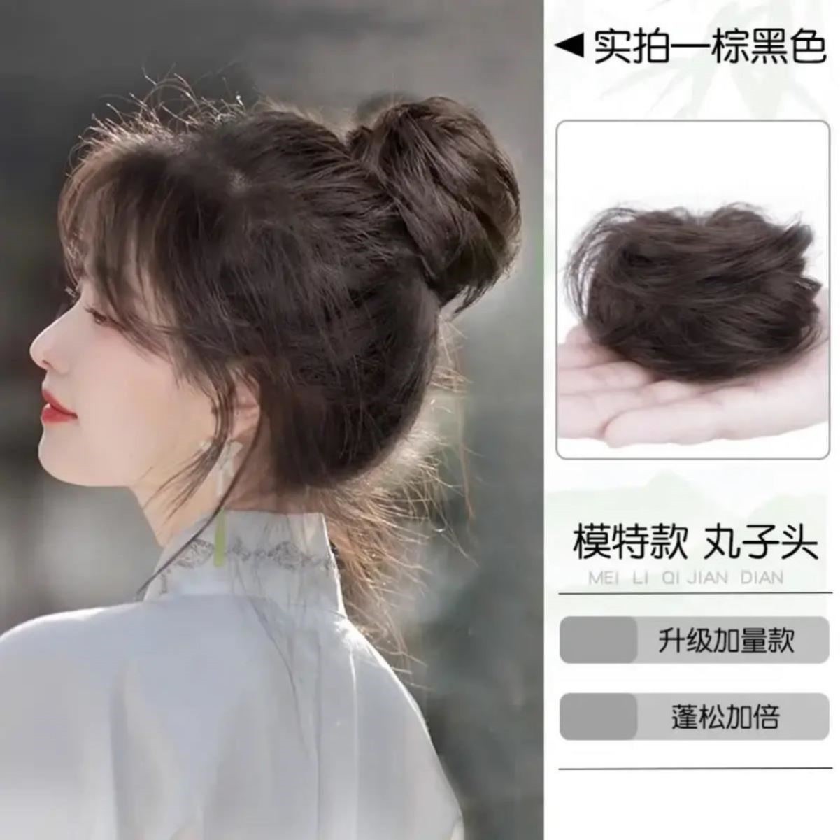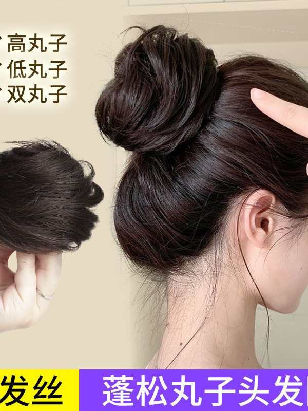 易凡低扎丸子头假发女真发发圈汉服古风发包自然蓬松发警