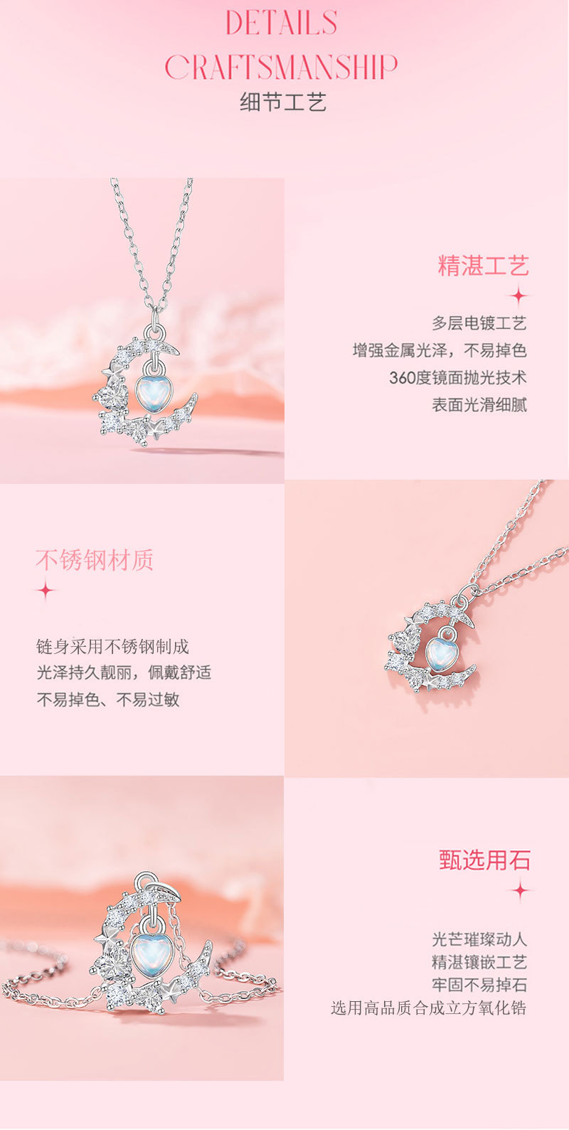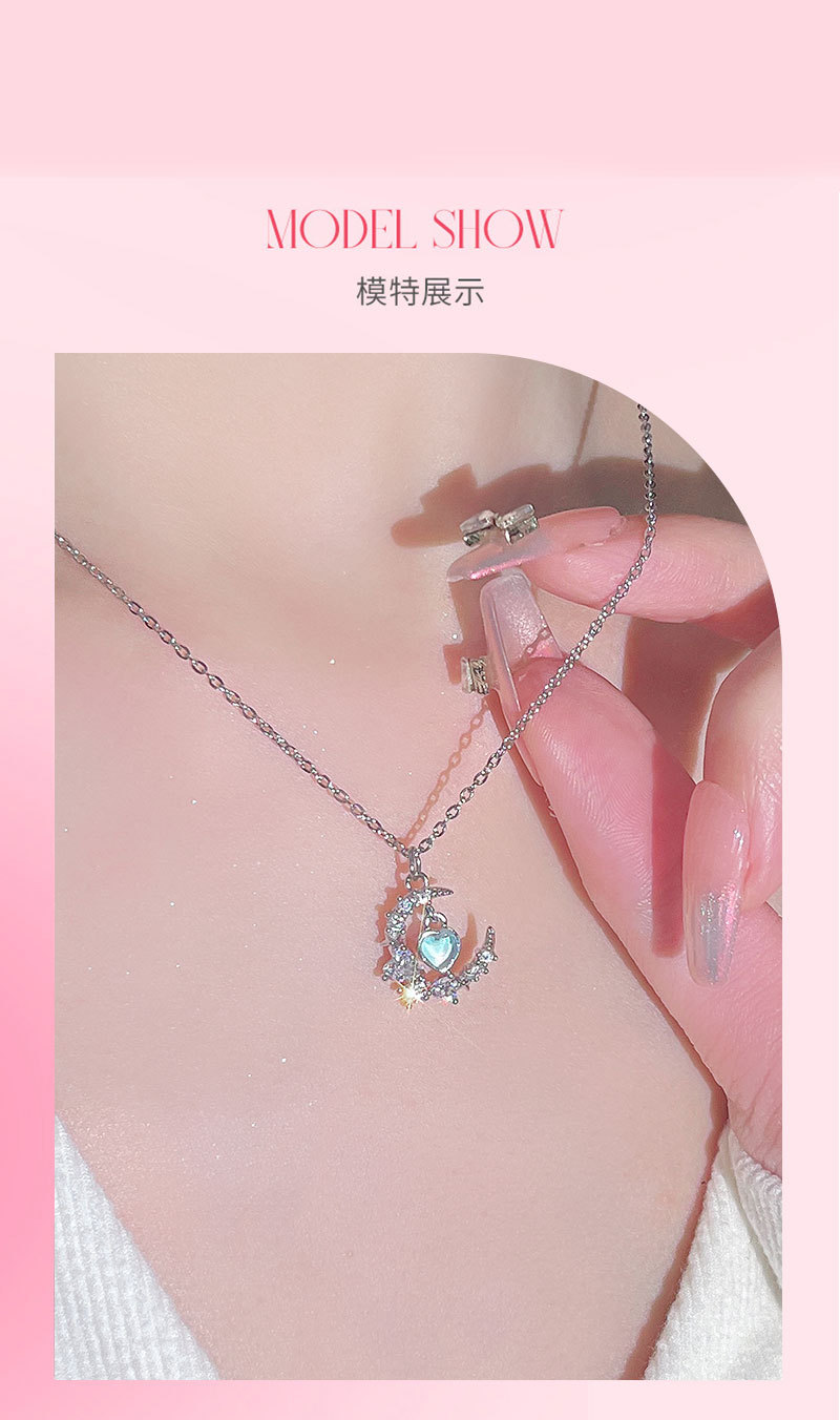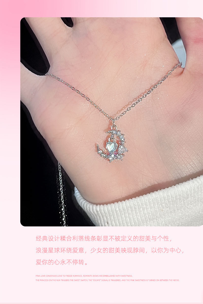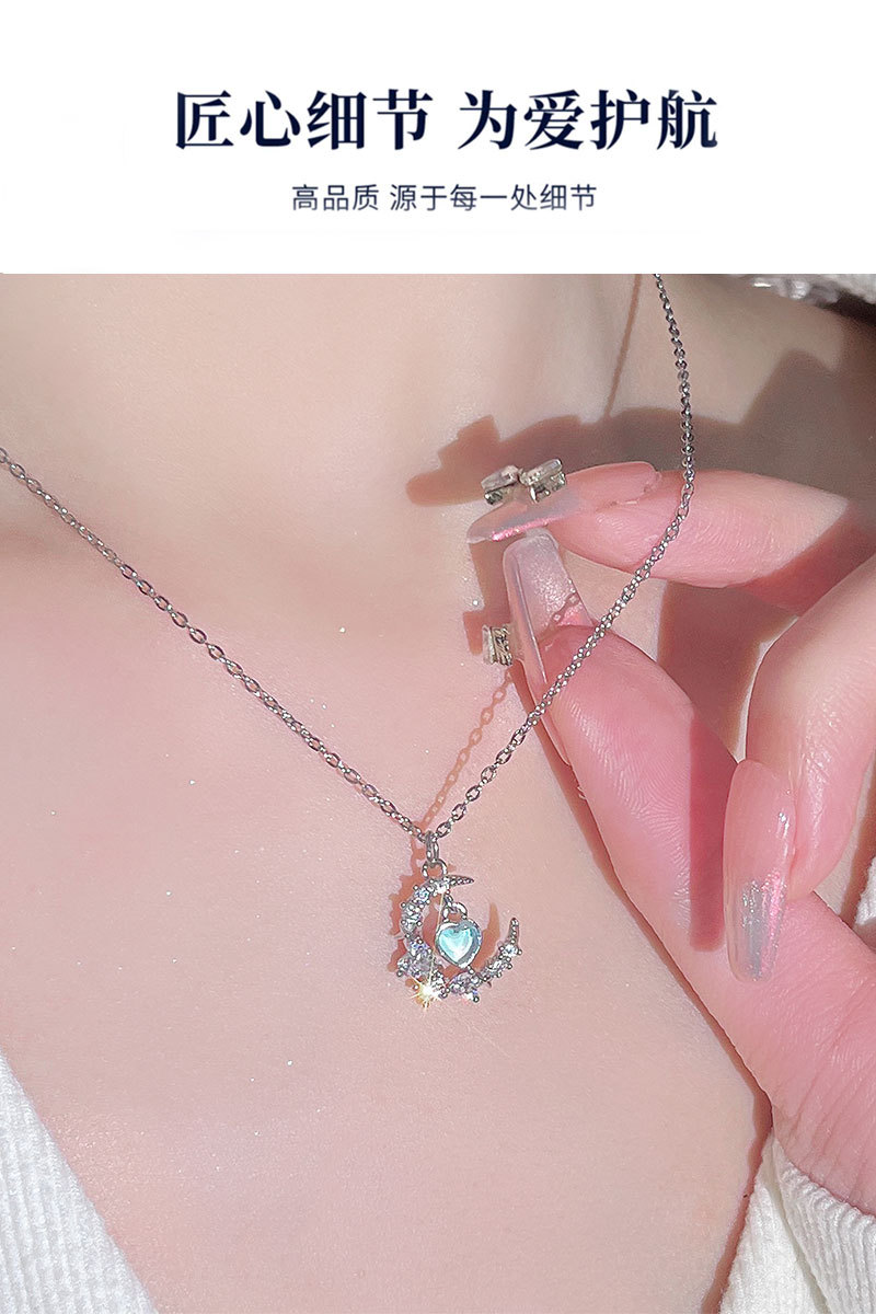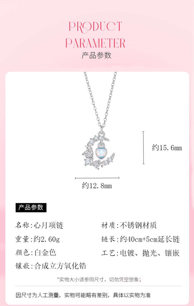 原创设计气质心月项链饰品女小众甜美个性少女心不锈钢锁骨链新款