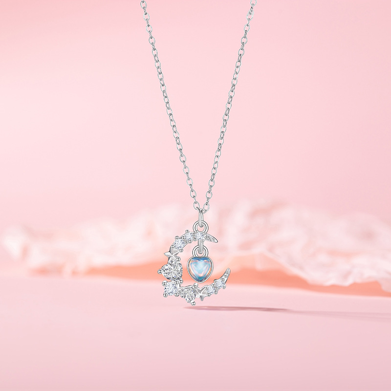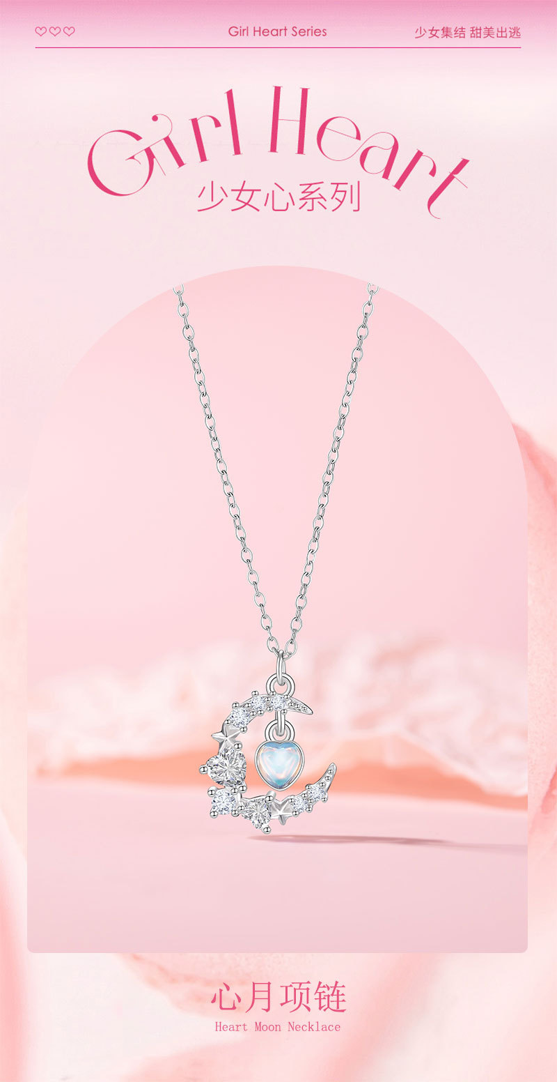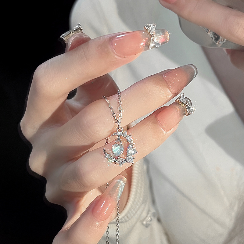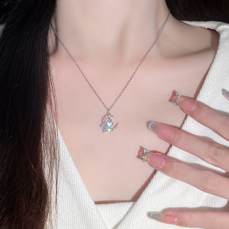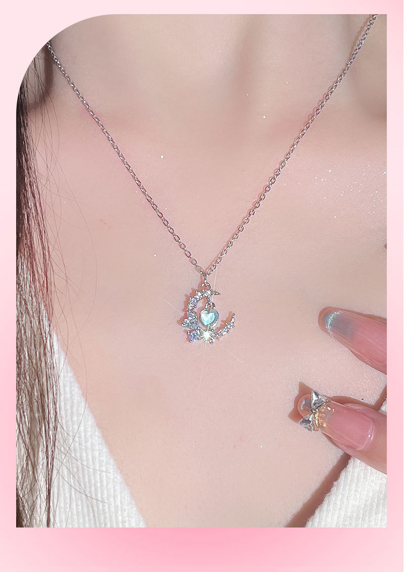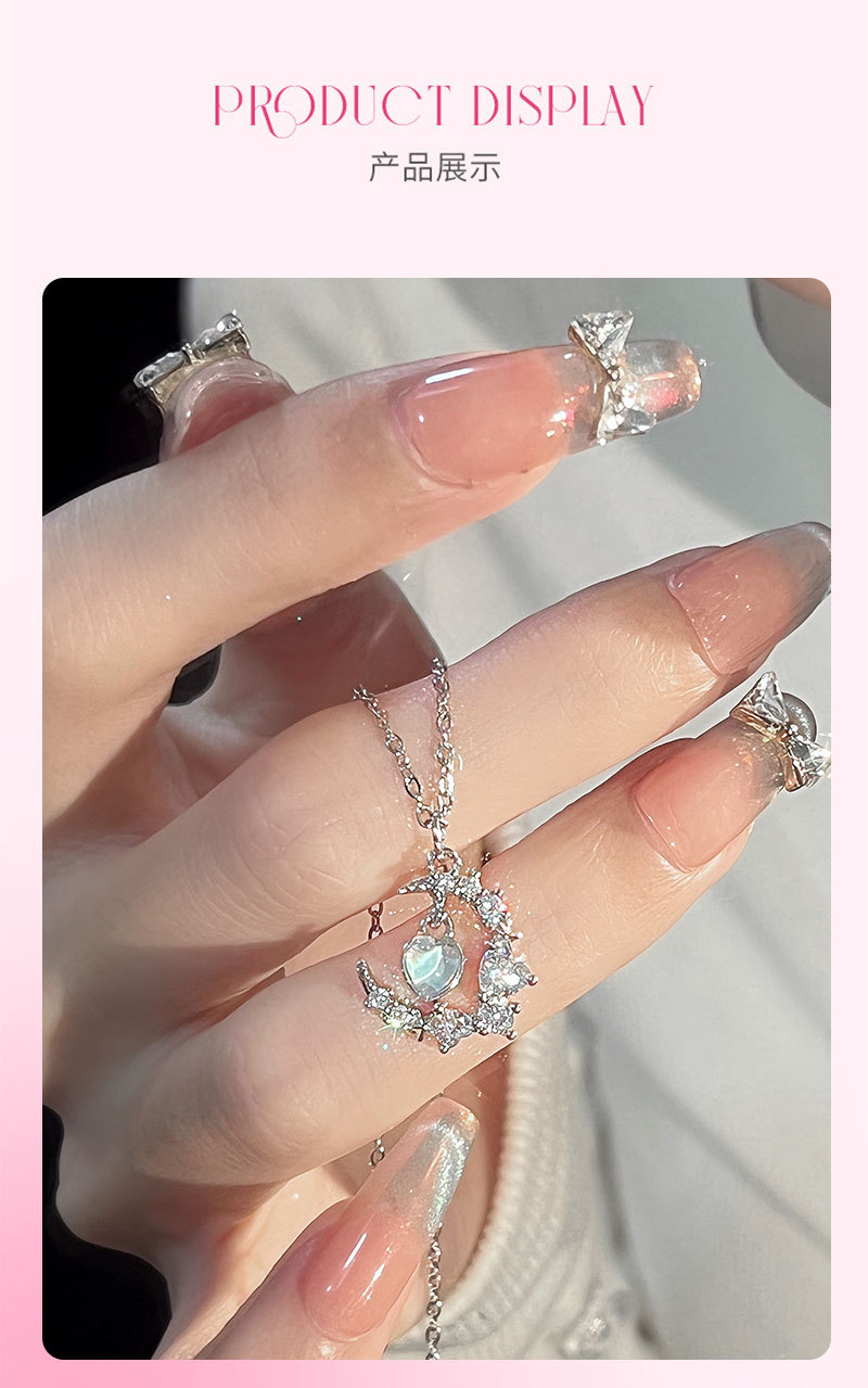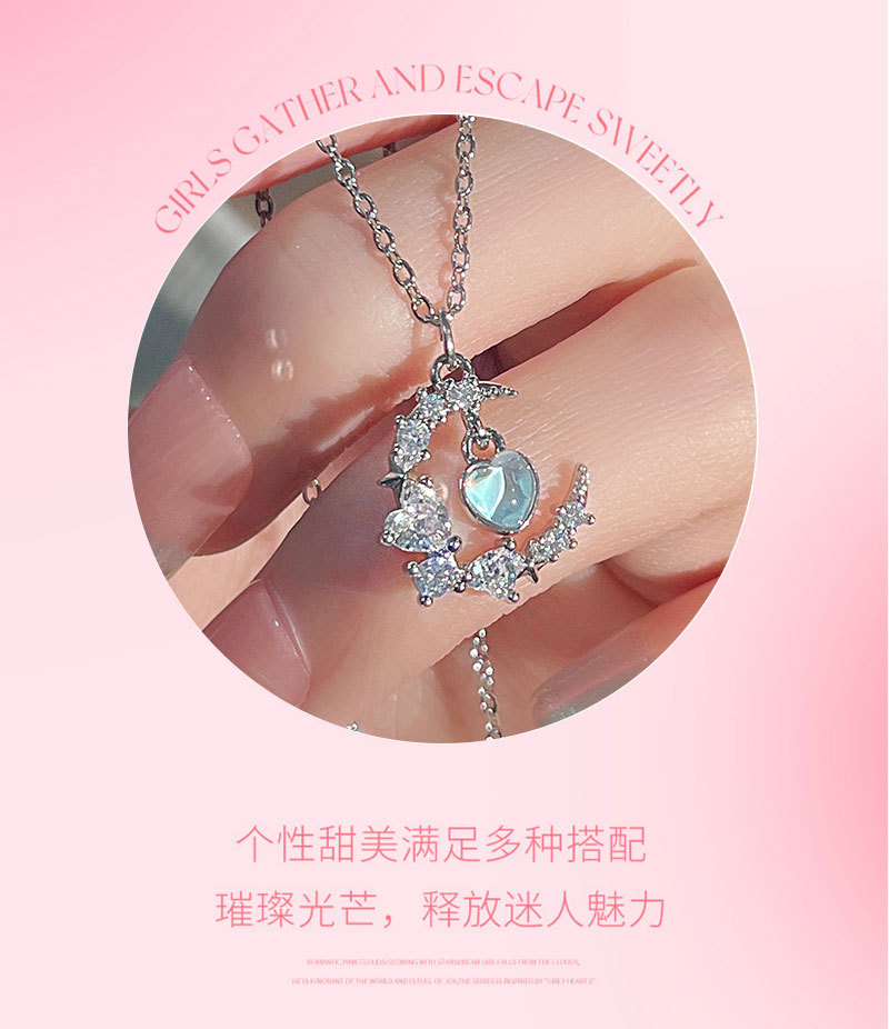 原创设计气质心月项链饰品女小众甜美个性少女心不锈钢锁骨链新款