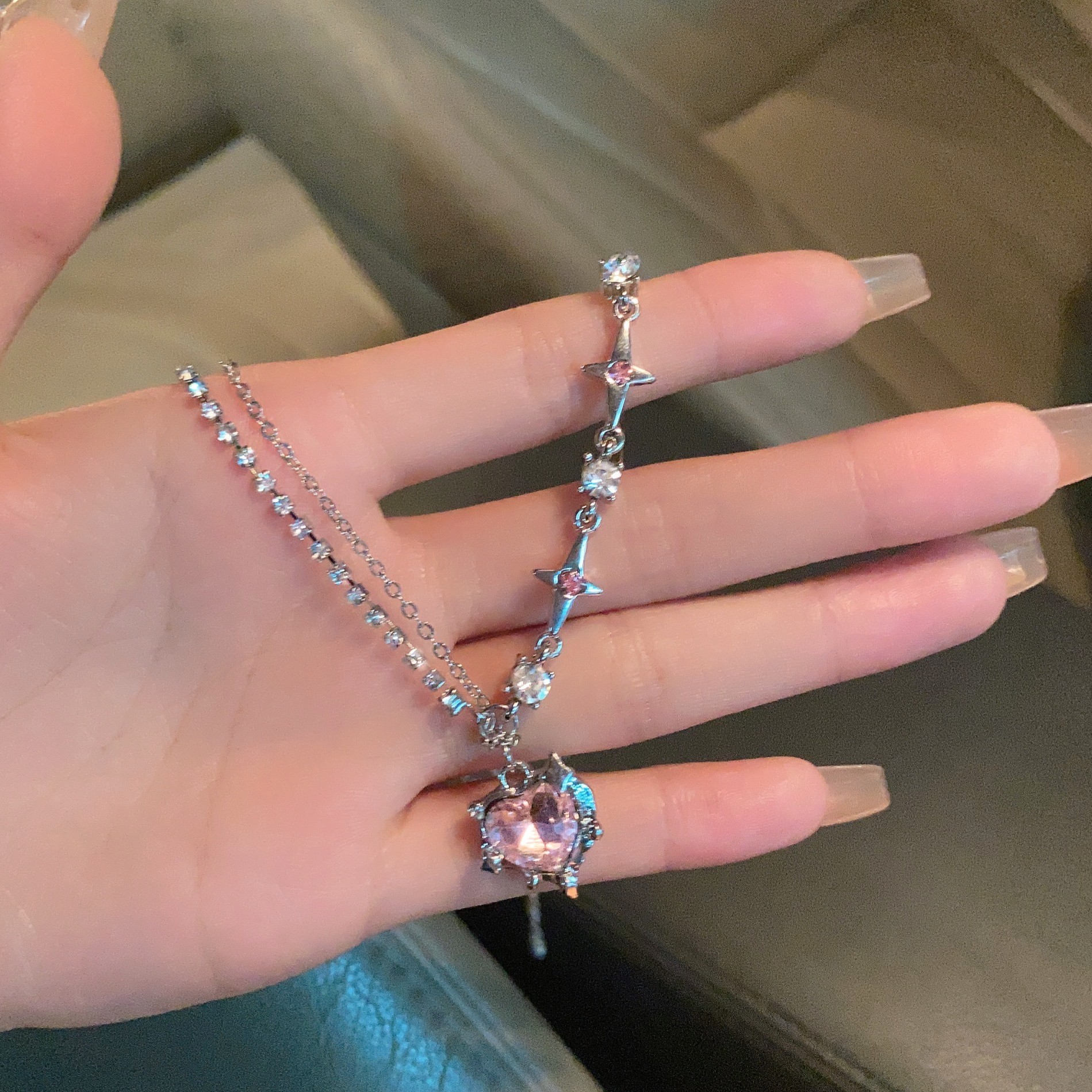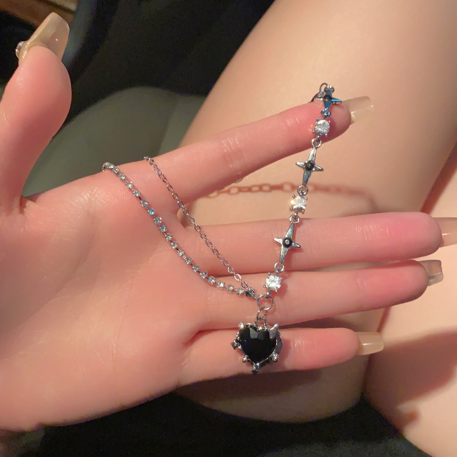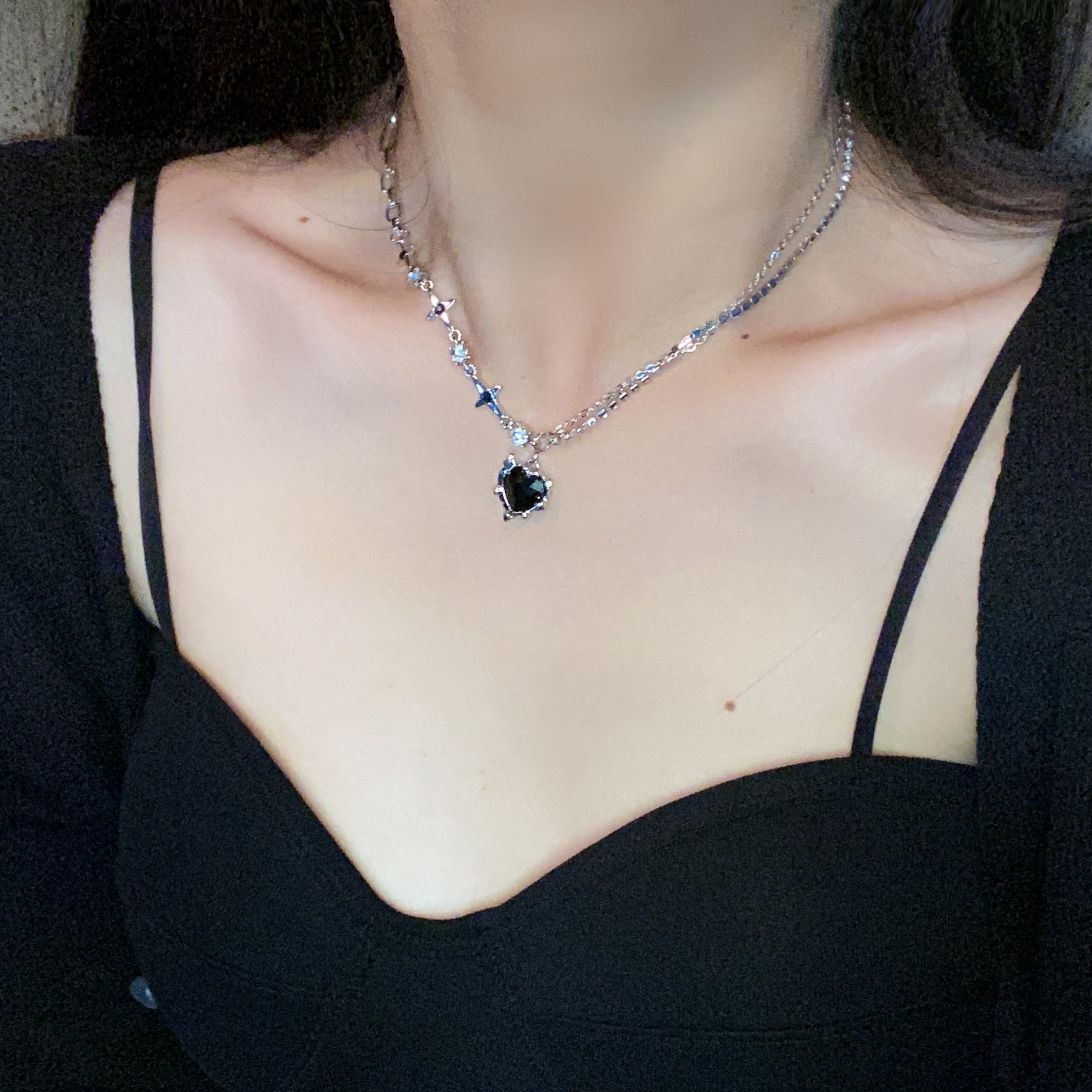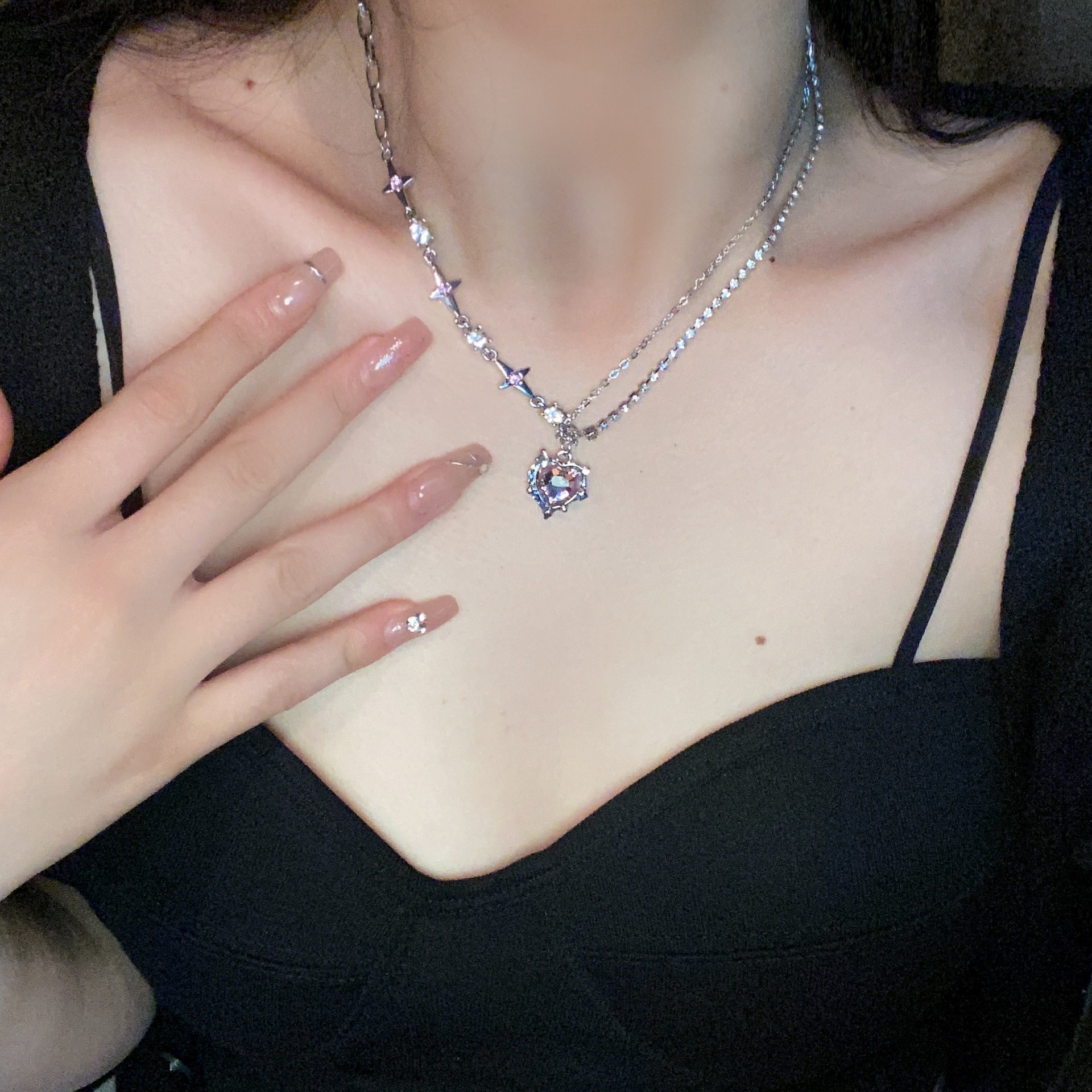 甜酷辣妹镶钻爱心芒星项链时尚创意设计感锁骨链冷淡风项坠项饰女