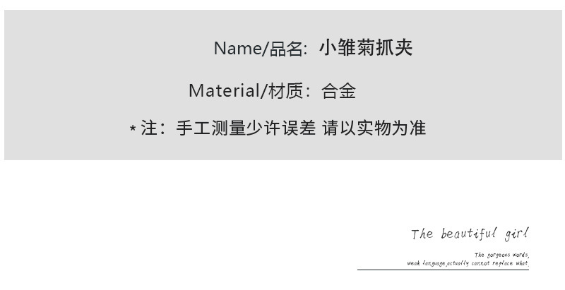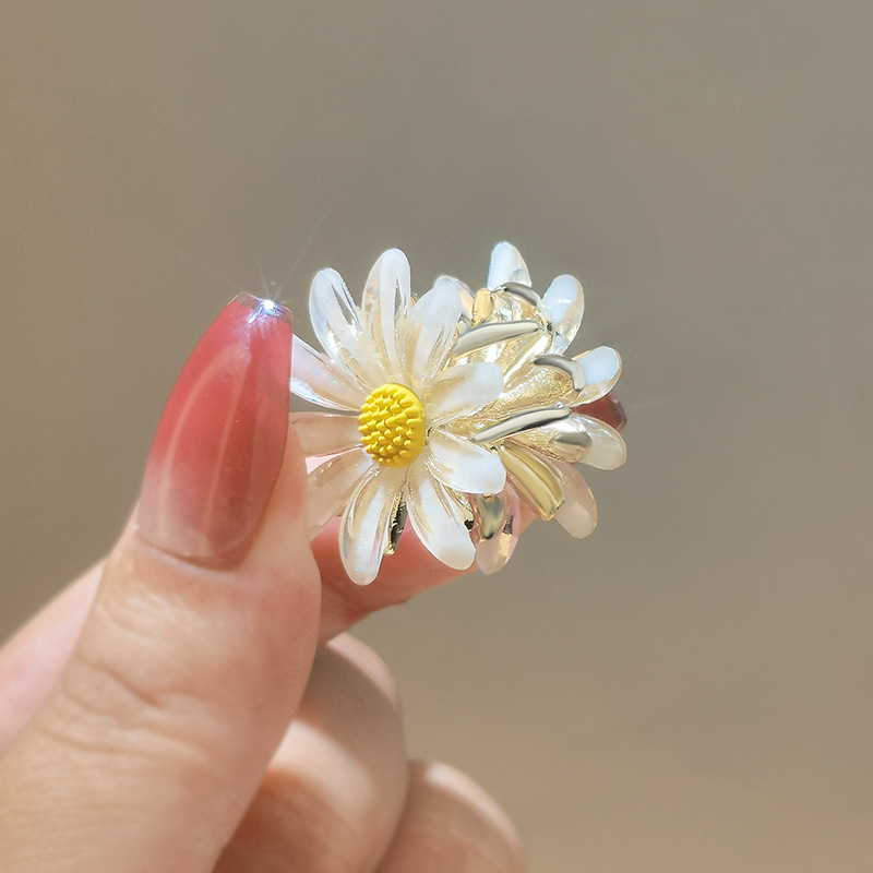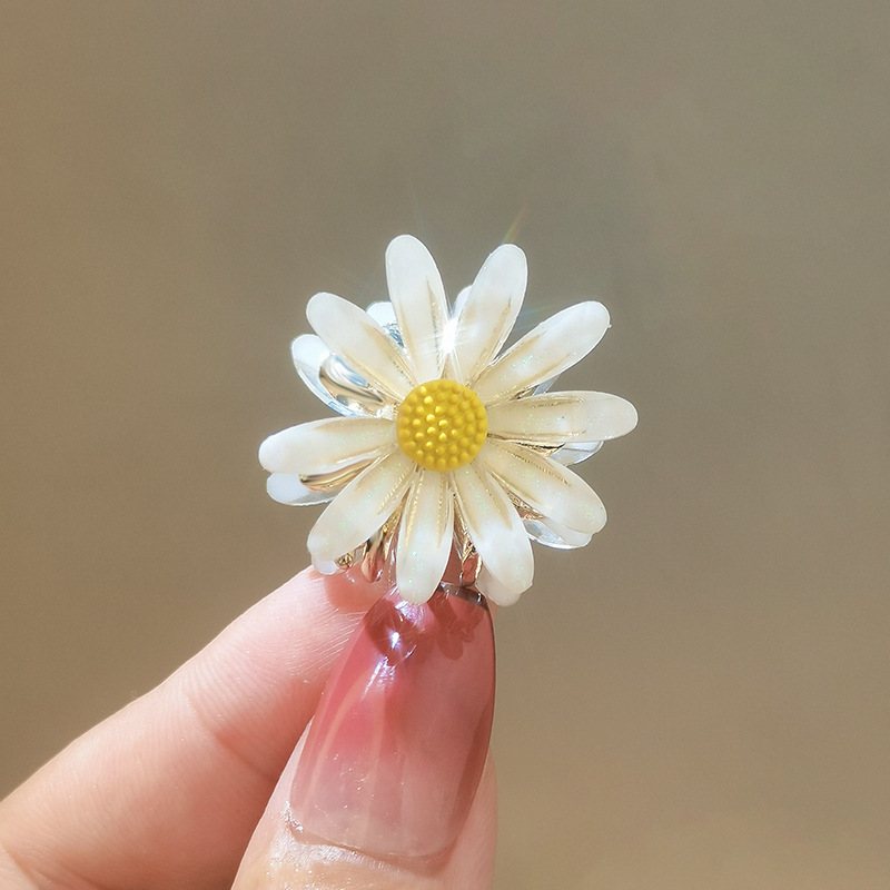 新款金属花朵发夹气质鲨鱼夹小号邹菊马尾固定发抓高级感夹子发饰