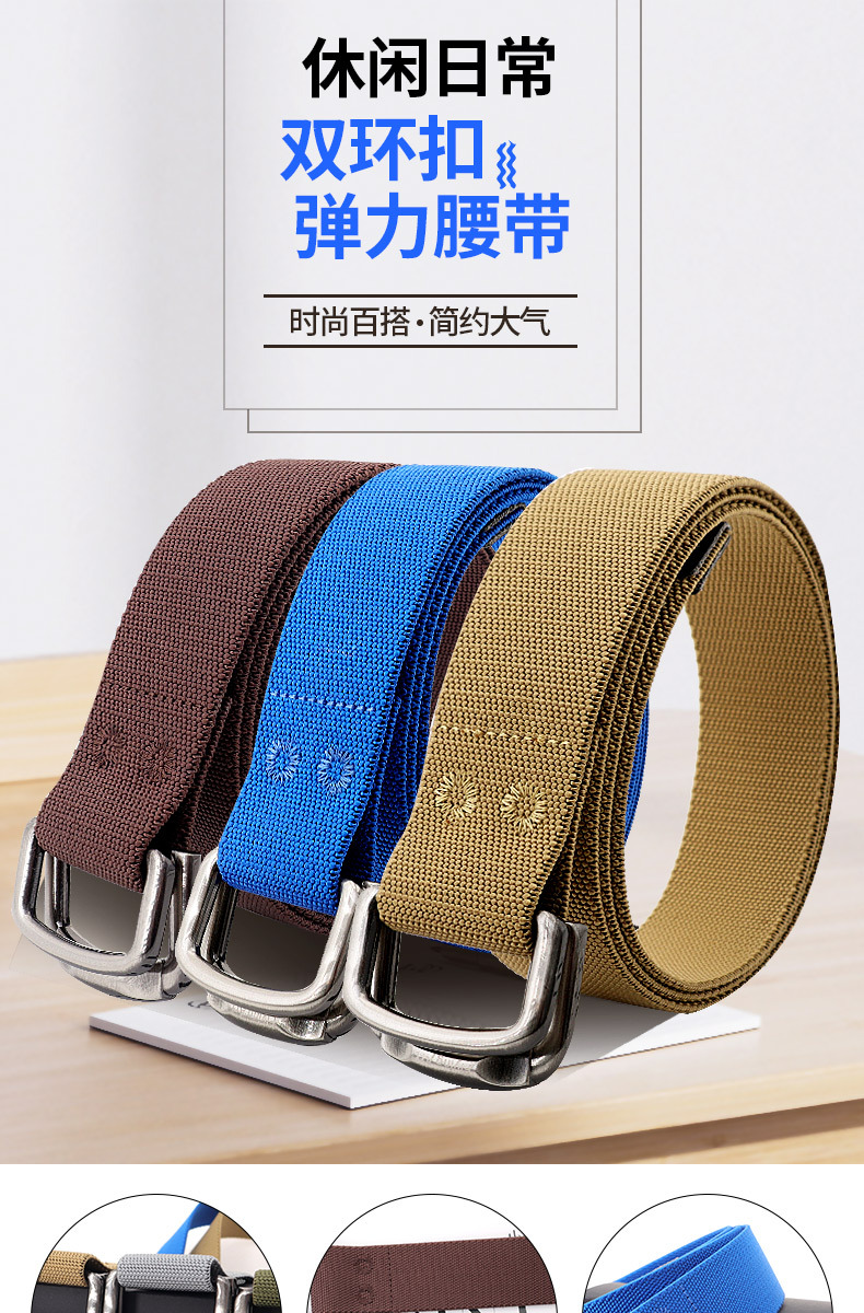 双环扣弹力腰带男士松紧休闲合金牛仔裤腰带休闲女3.8cm跨境厂家