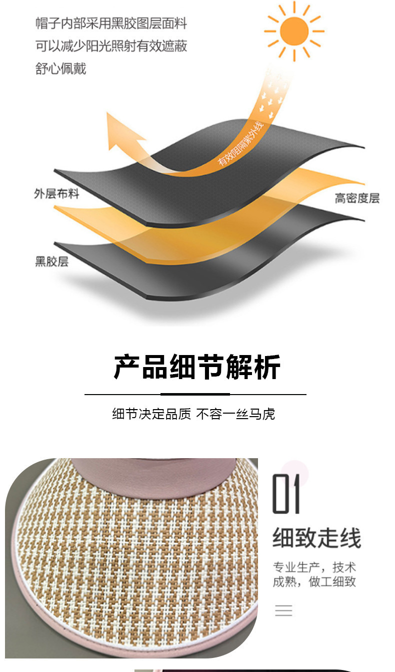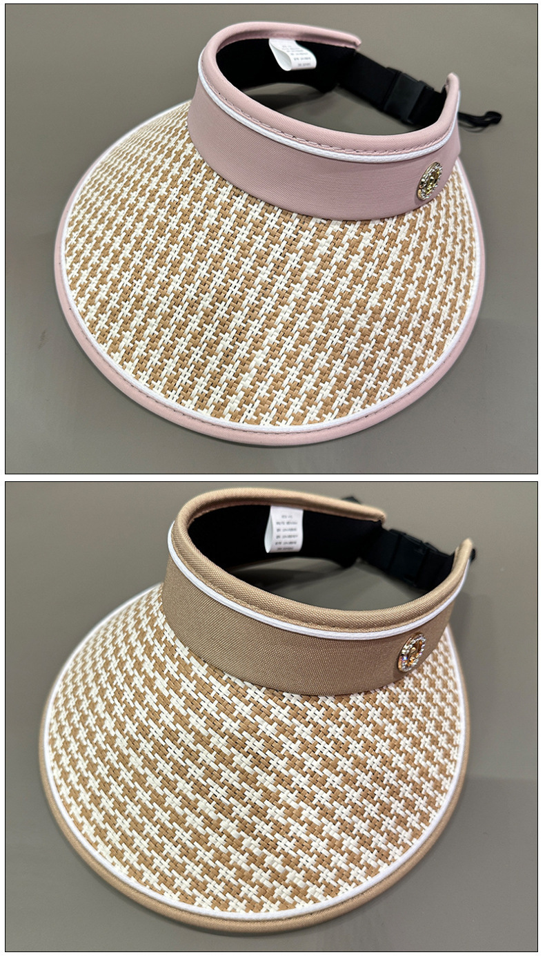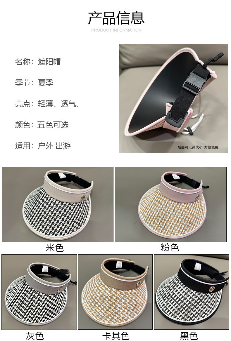 千鸟格空顶帽女夏季新款大檐遮阳帽日系草编洋气沙滩防晒太阳帽