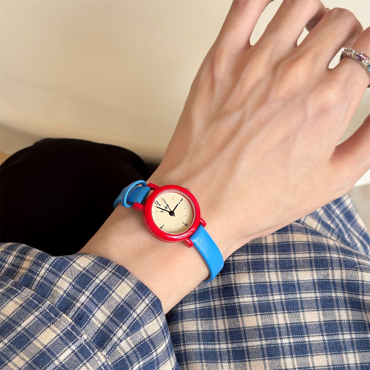 抖音热销爆款多巴胺撞色小清新手表女款简约休闲学生时尚石英女表