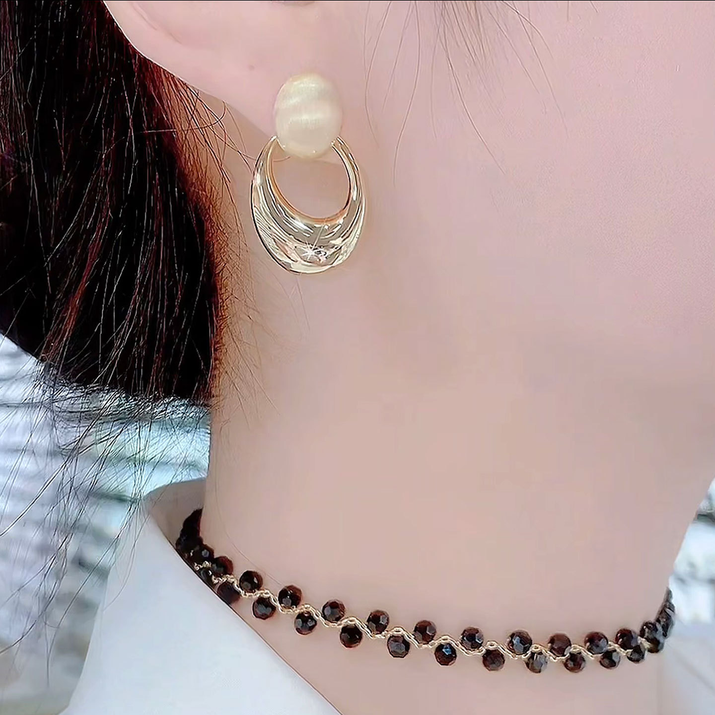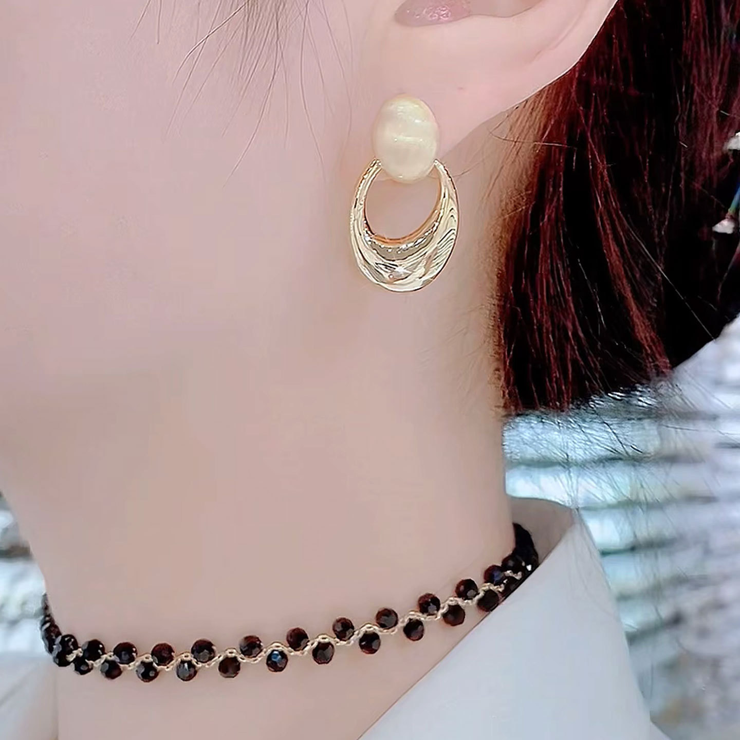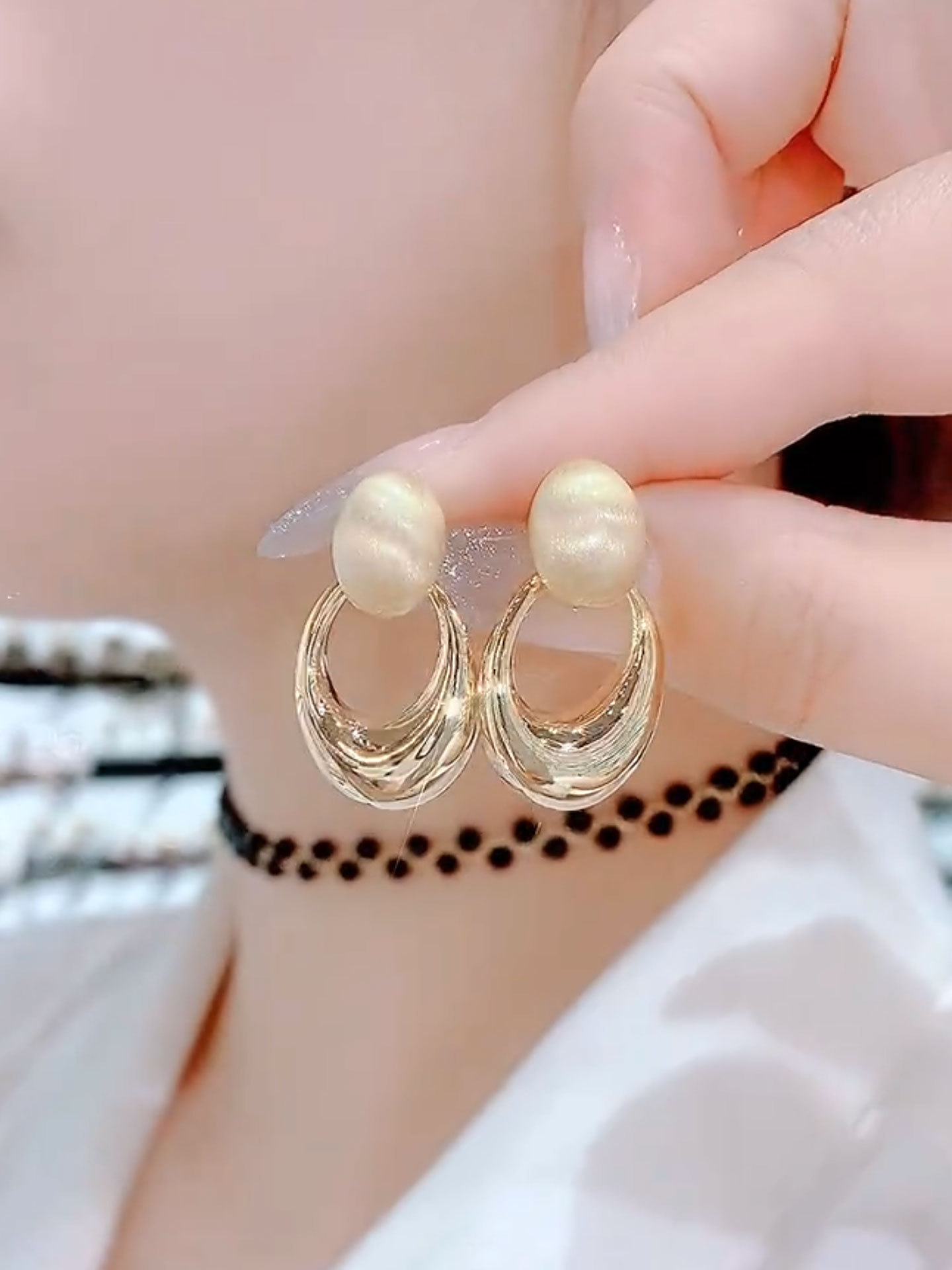 小众设计感椭圆磨砂圈圈耳钉轻奢高级感流行耳坠精致百搭气质耳饰