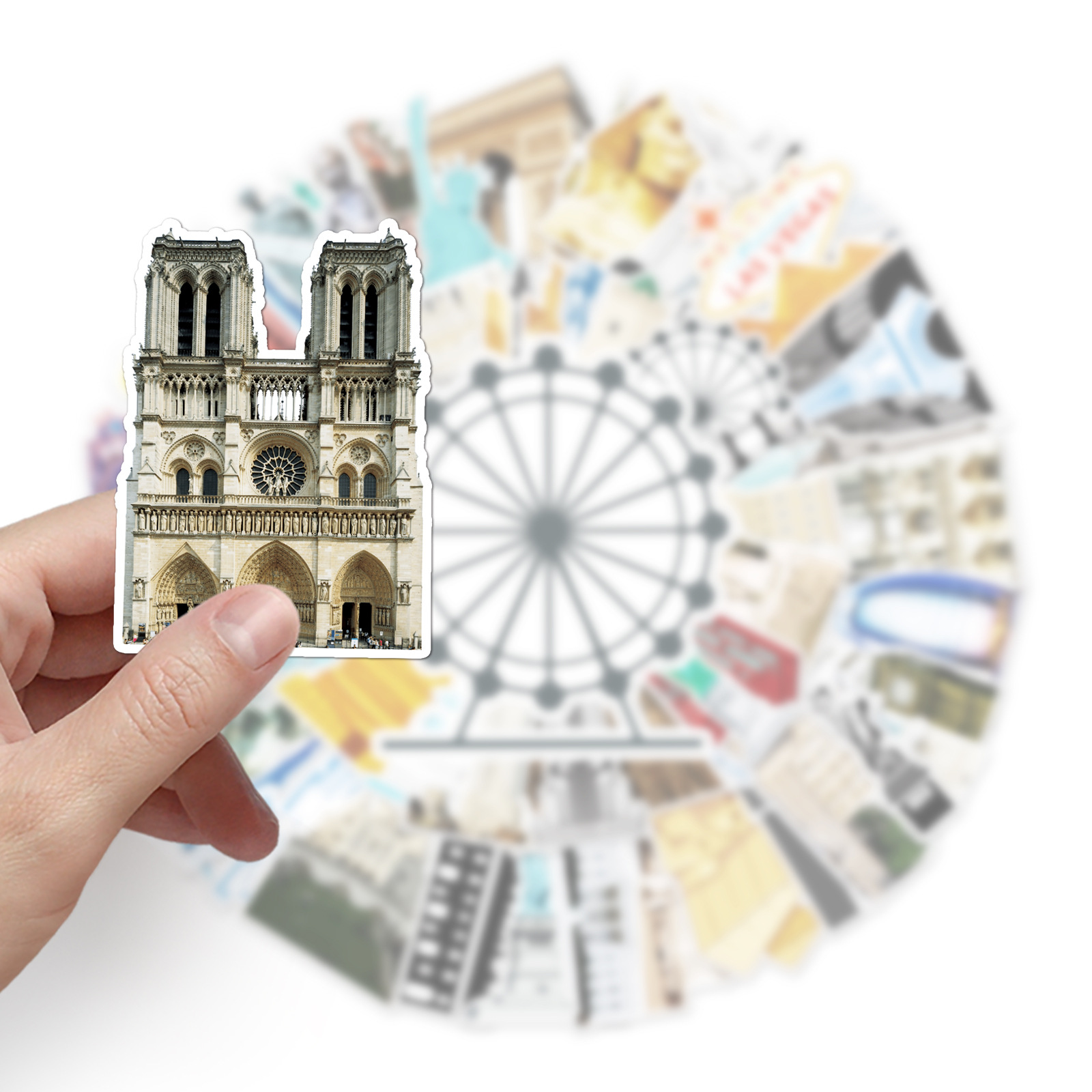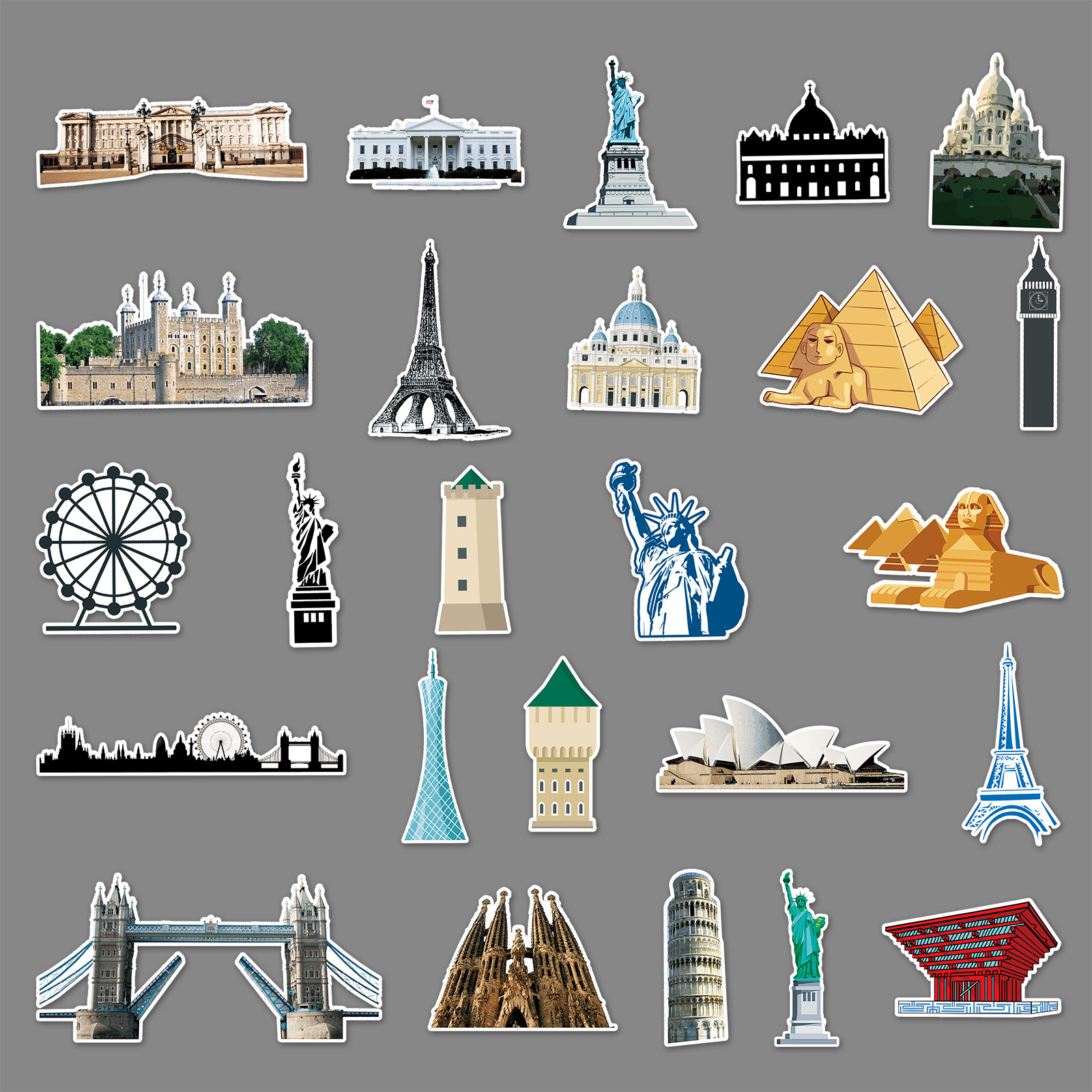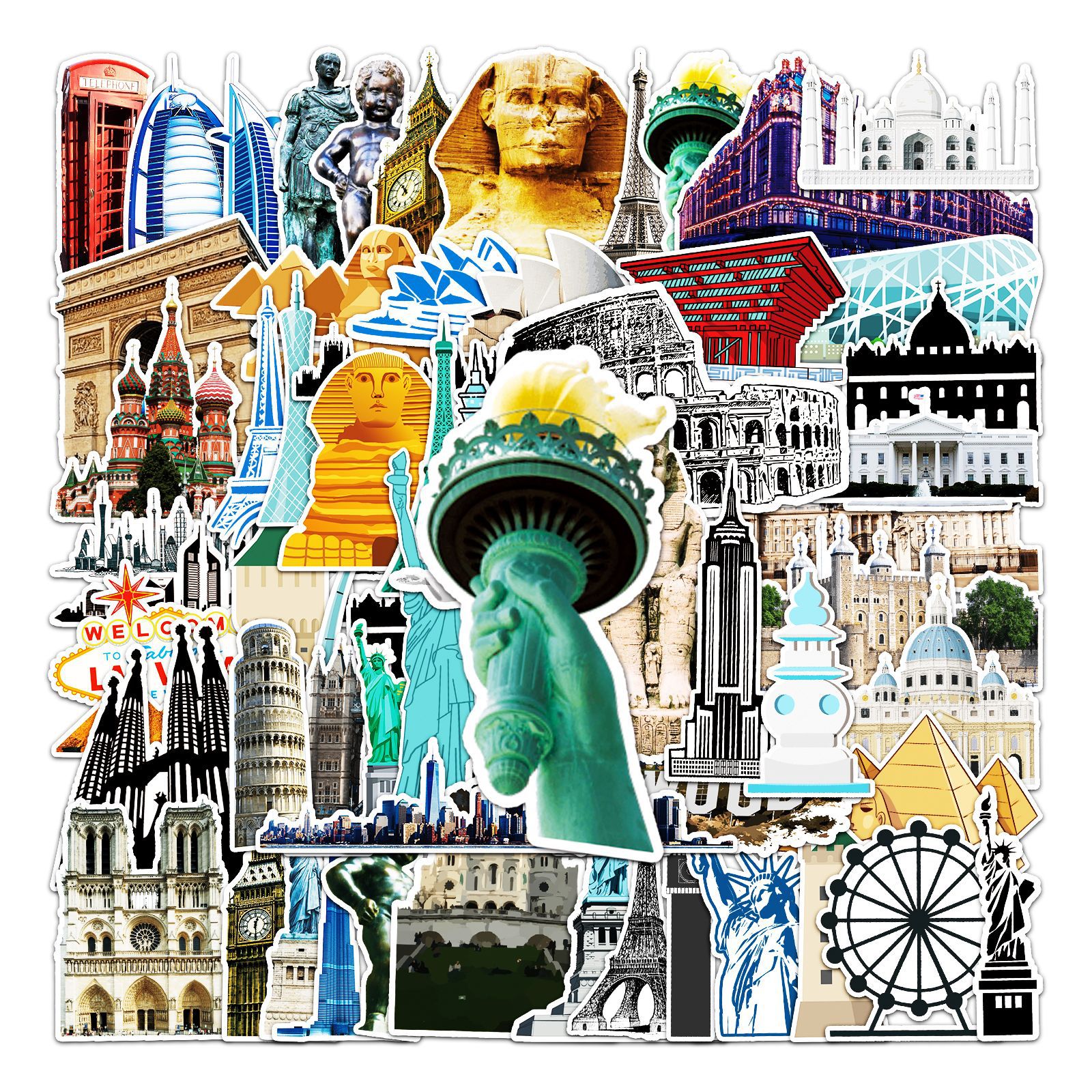64张不重复地标建筑贴纸 diy行李箱自行车滑板车汽车防水装饰贴纸