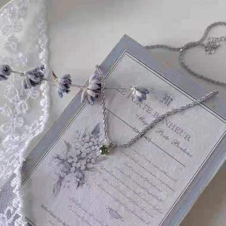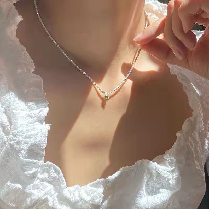 森林味道 法式复古风橄榄绿钻迷你吊坠满天星项链女ins小众锁骨链
