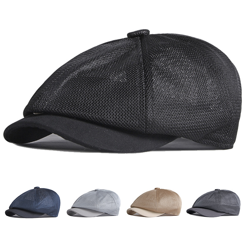 镂空透气网眼八角帽男夏季英伦复古休闲光板鸭舌贝雷帽男女画家帽