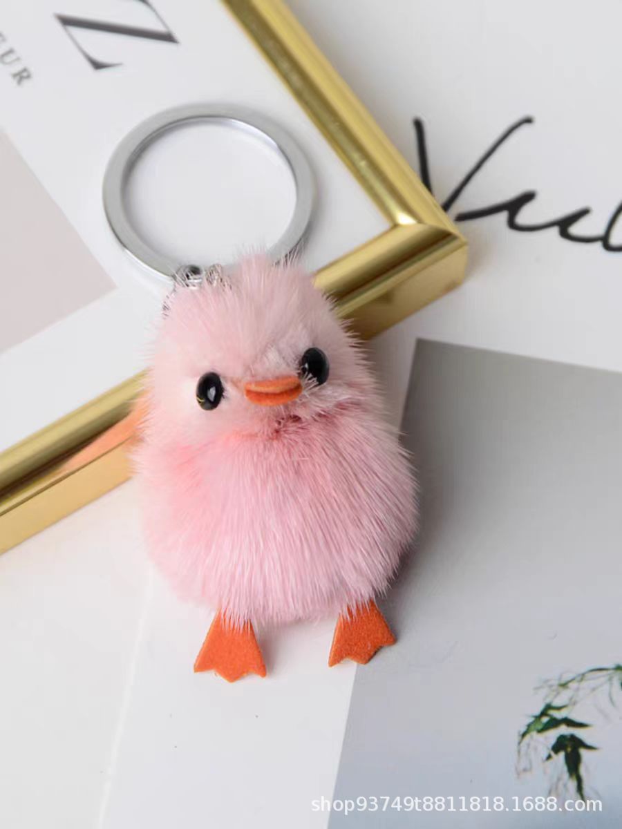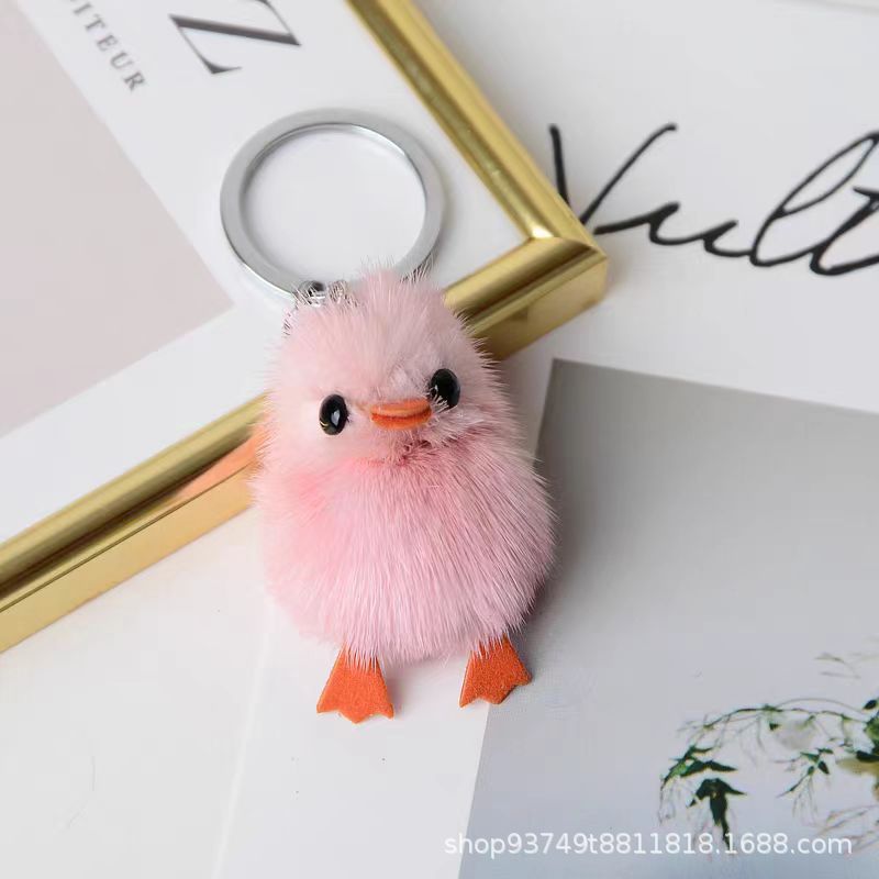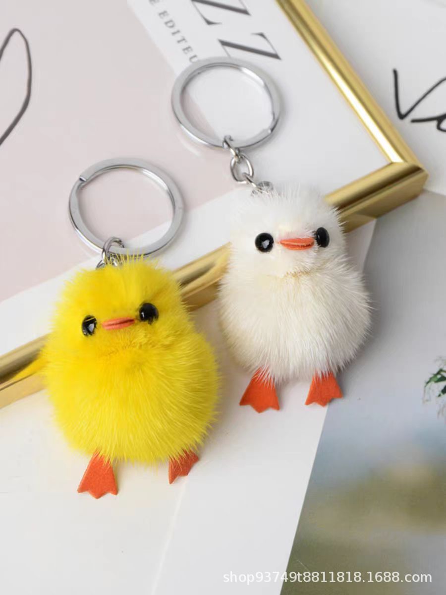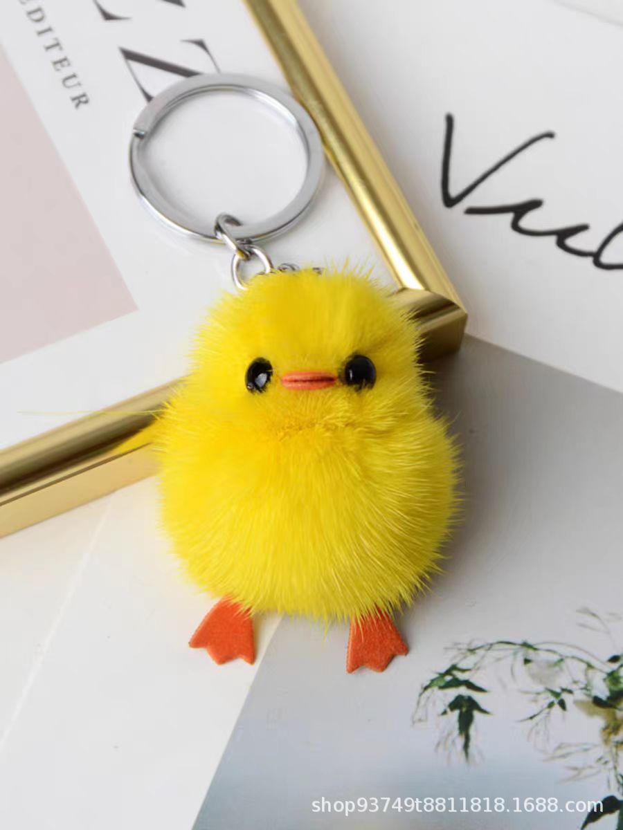 超萌迷你水貂毛小鸡可爱毛绒玩偶小黄鸭汽车钥匙扣手机挂件挂饰