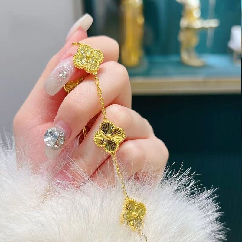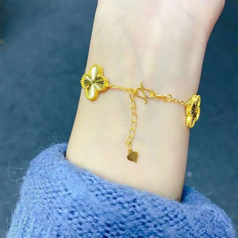 【福利价】新款沙金色车花五花四叶草女手链送女友情人节七夕礼物
