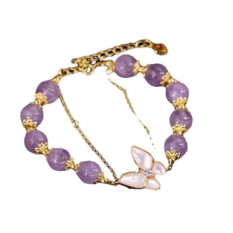 仿紫水晶蝴蝶手链女ins轻奢小众设计高级感新款水晶手串送闺蜜礼