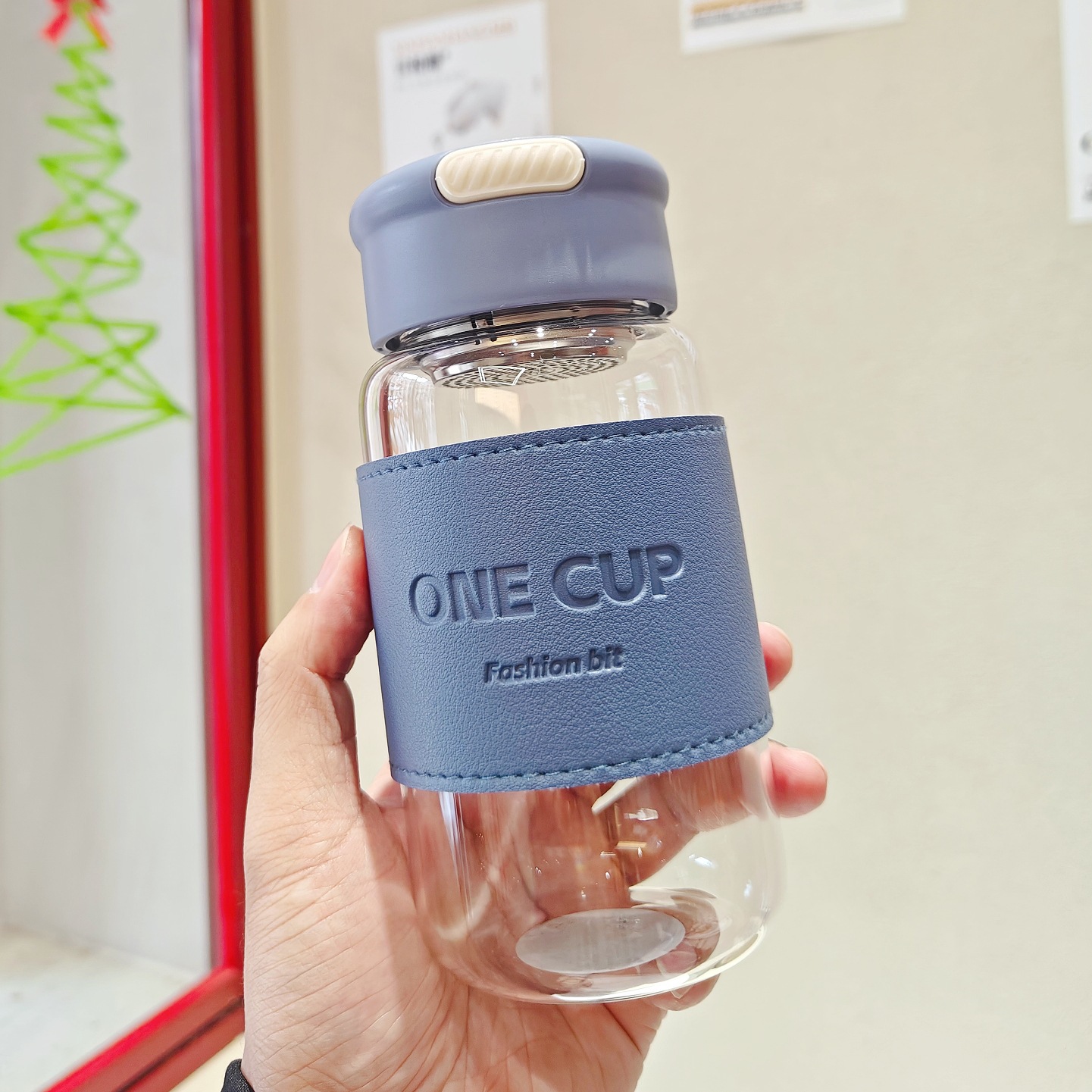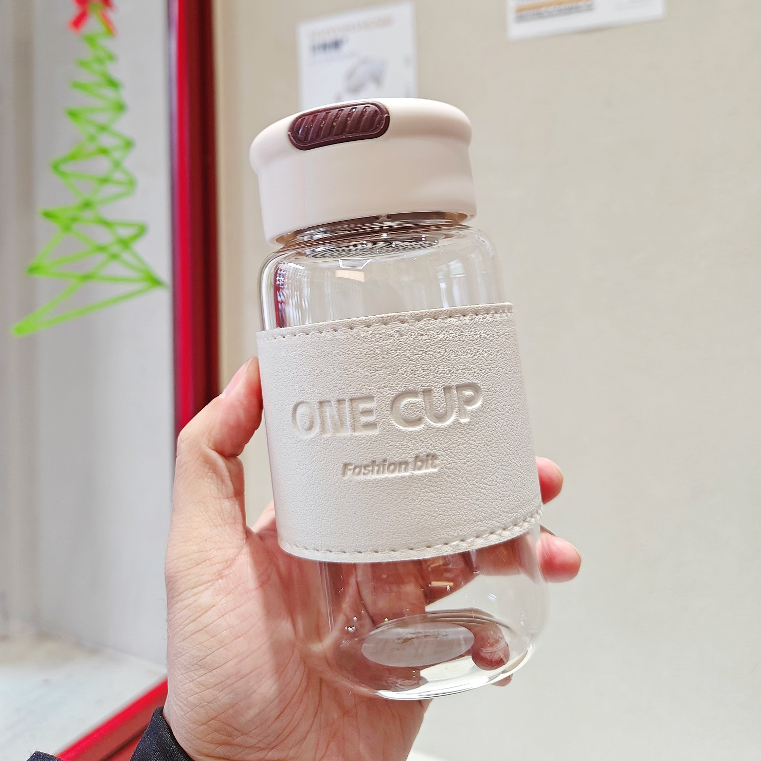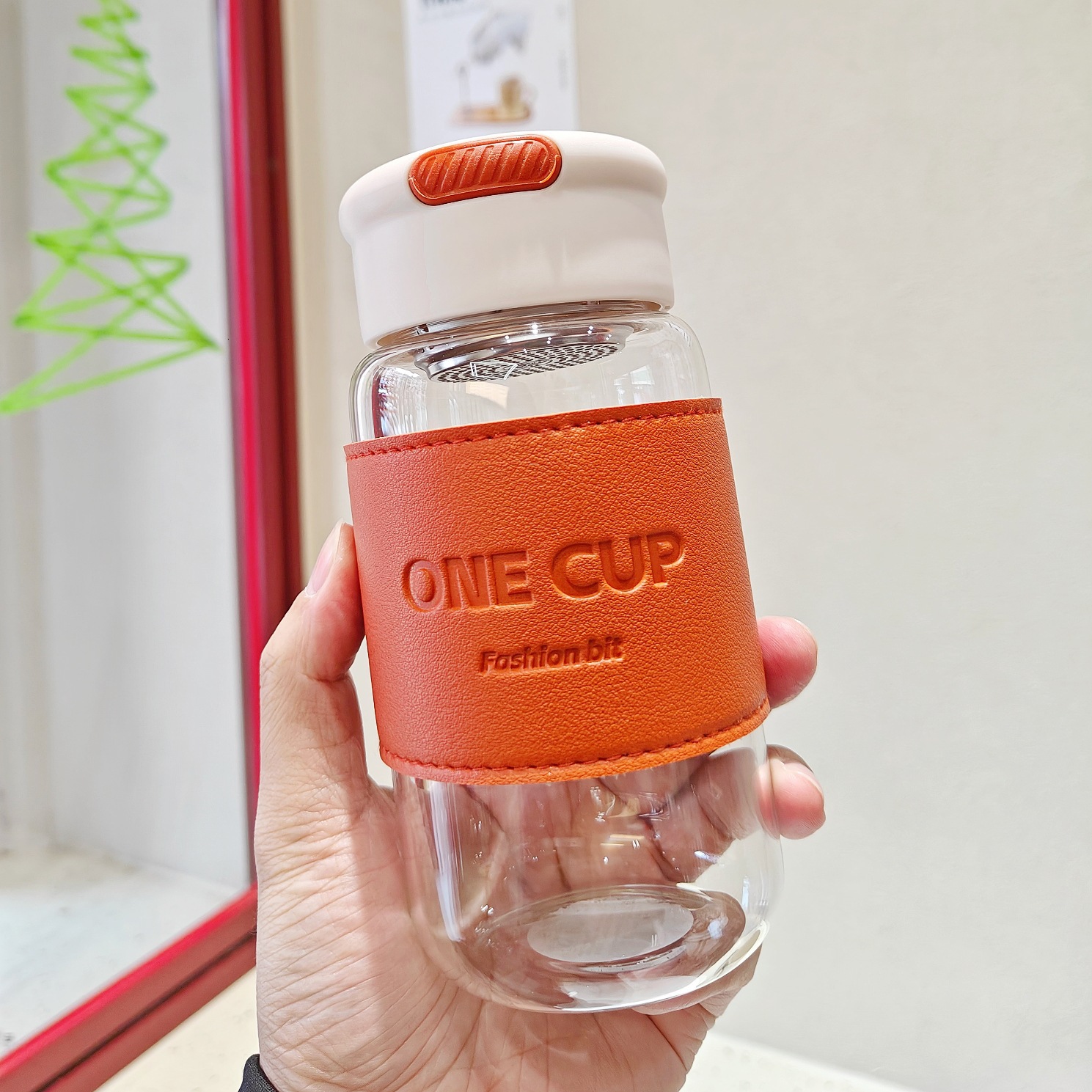 简约茶水分离玻璃杯高颜值手提杯子带茶隔随手杯情侣水杯办公水杯