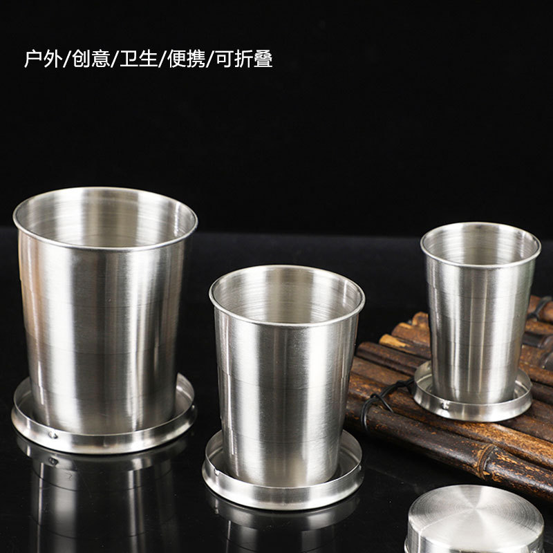 不锈钢折叠杯户外野营洗漱水杯便携创意压缩杯迷你小酒杯啤酒杯