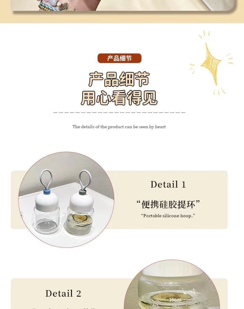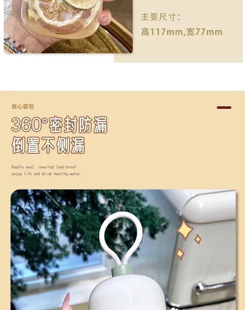 提绳胖胖杯带刻度玻璃水杯随身便携分装迷你咖啡豆浆冷饮礼品杯子