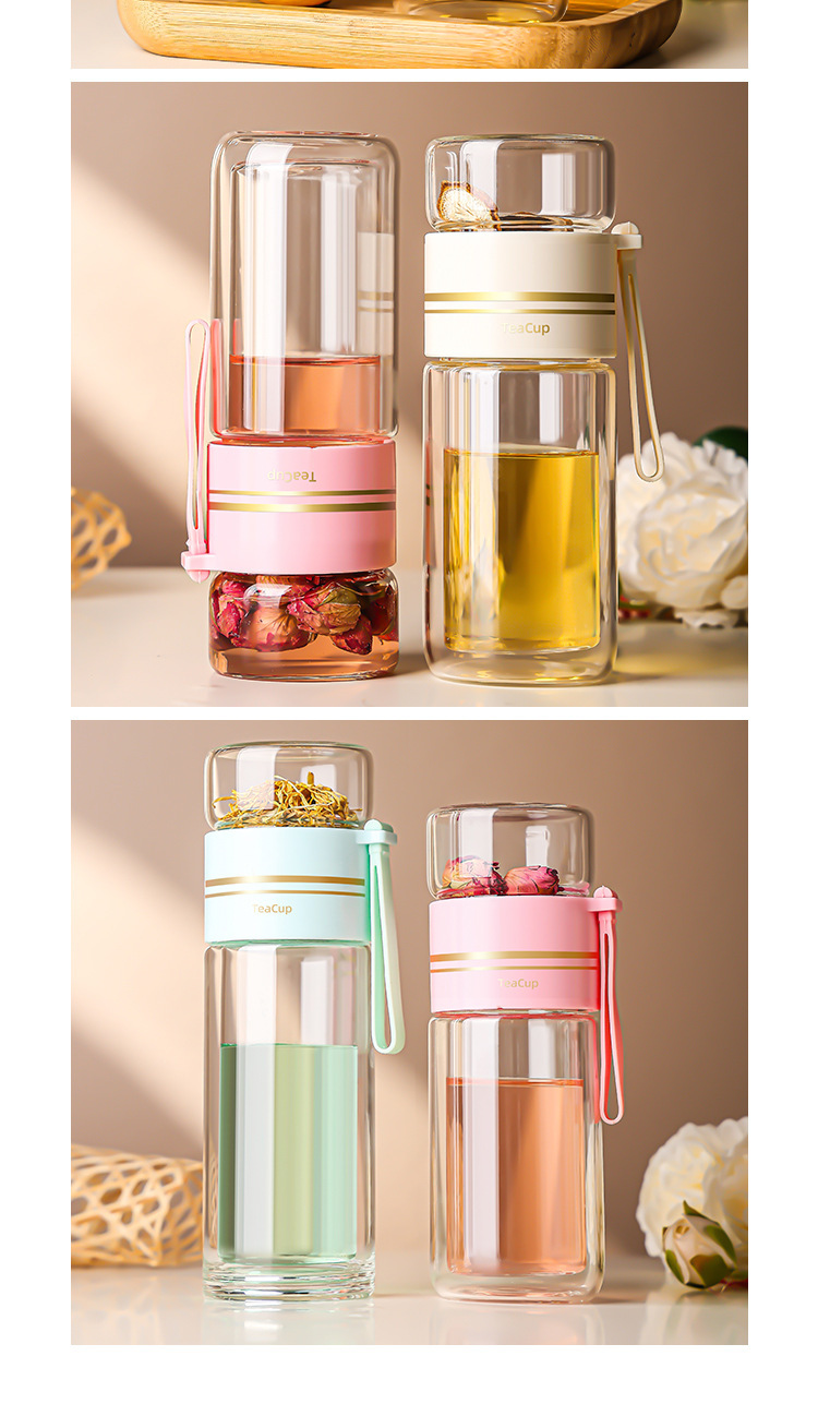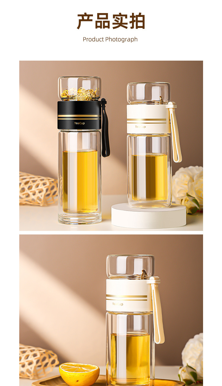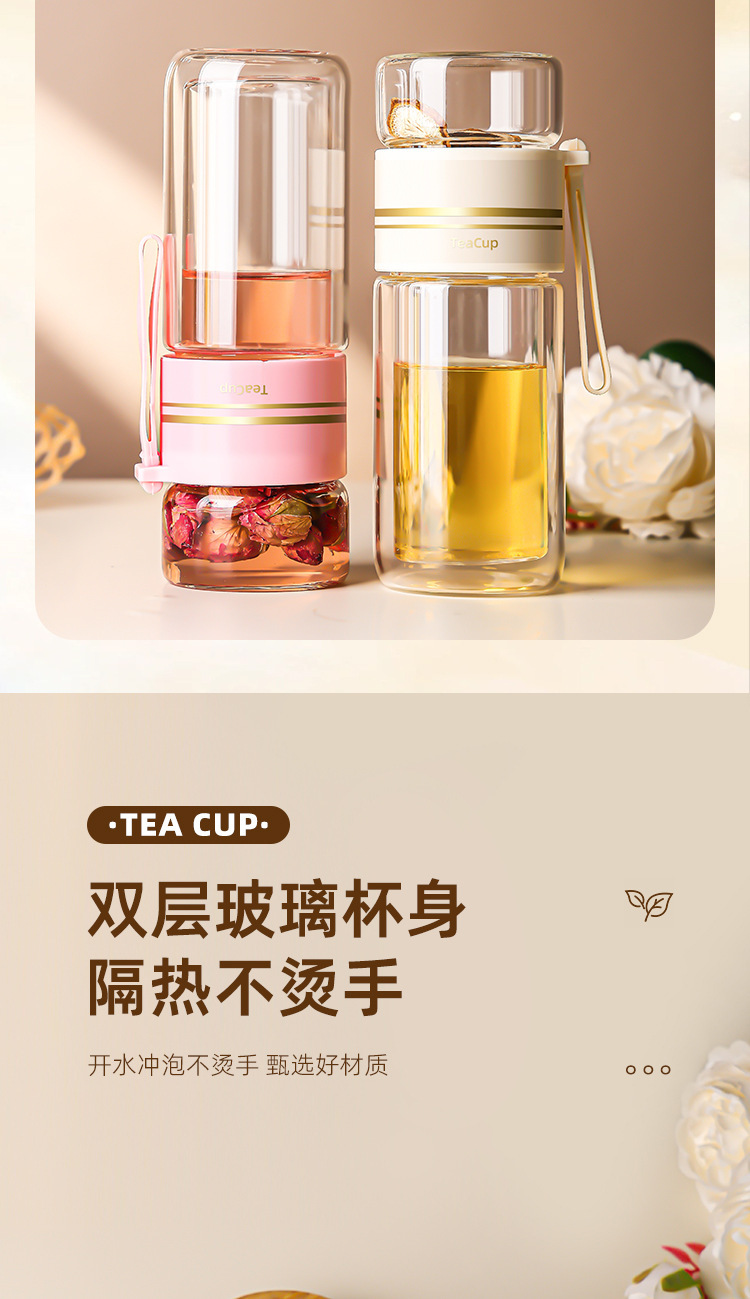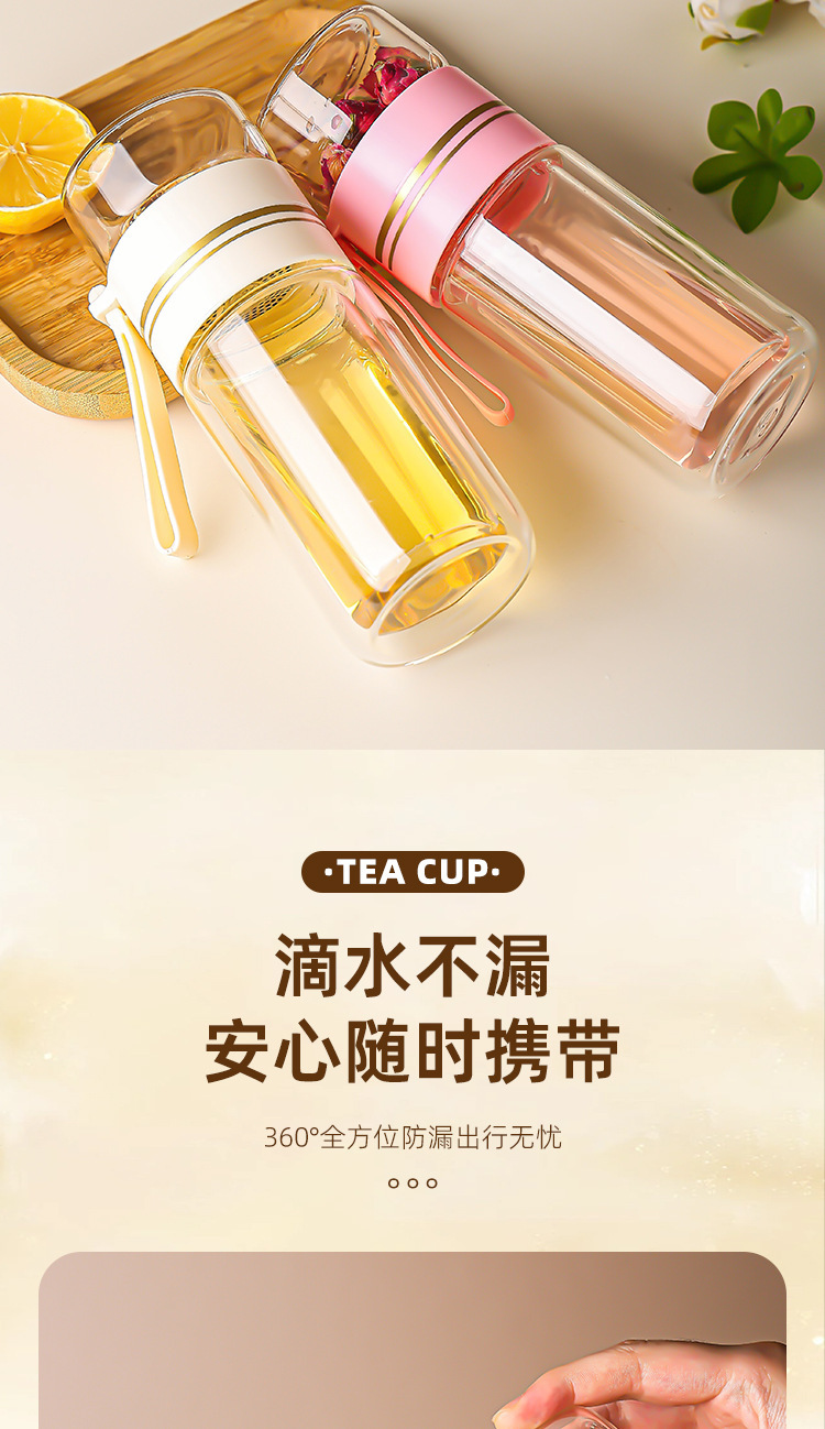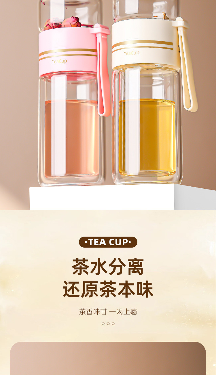 ins高档茶水分离杯子带滤网男女泡茶玻璃杯双层隔热高硼硅水杯