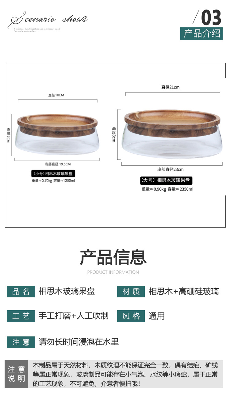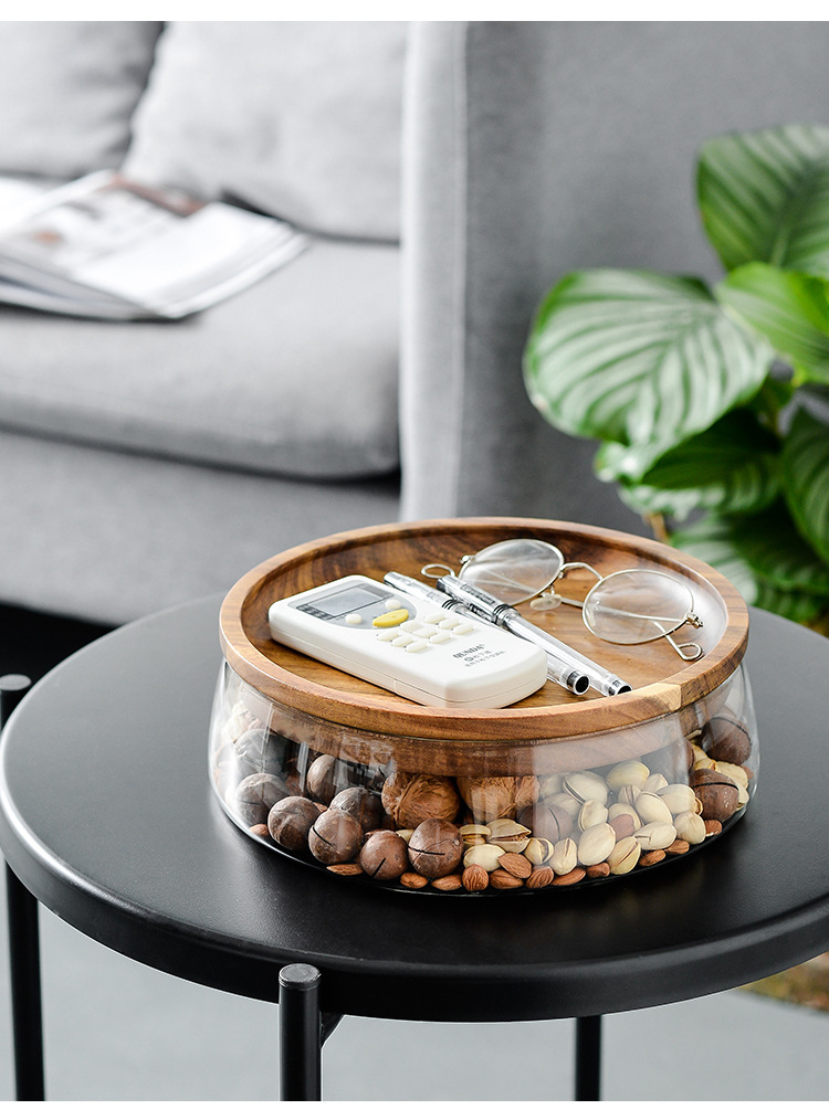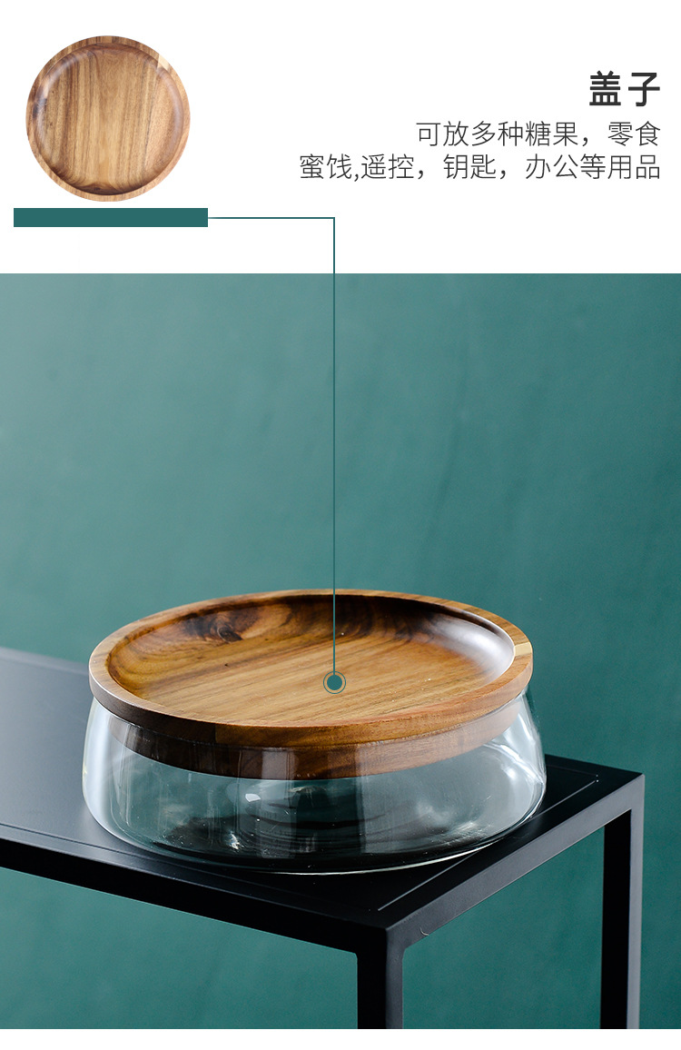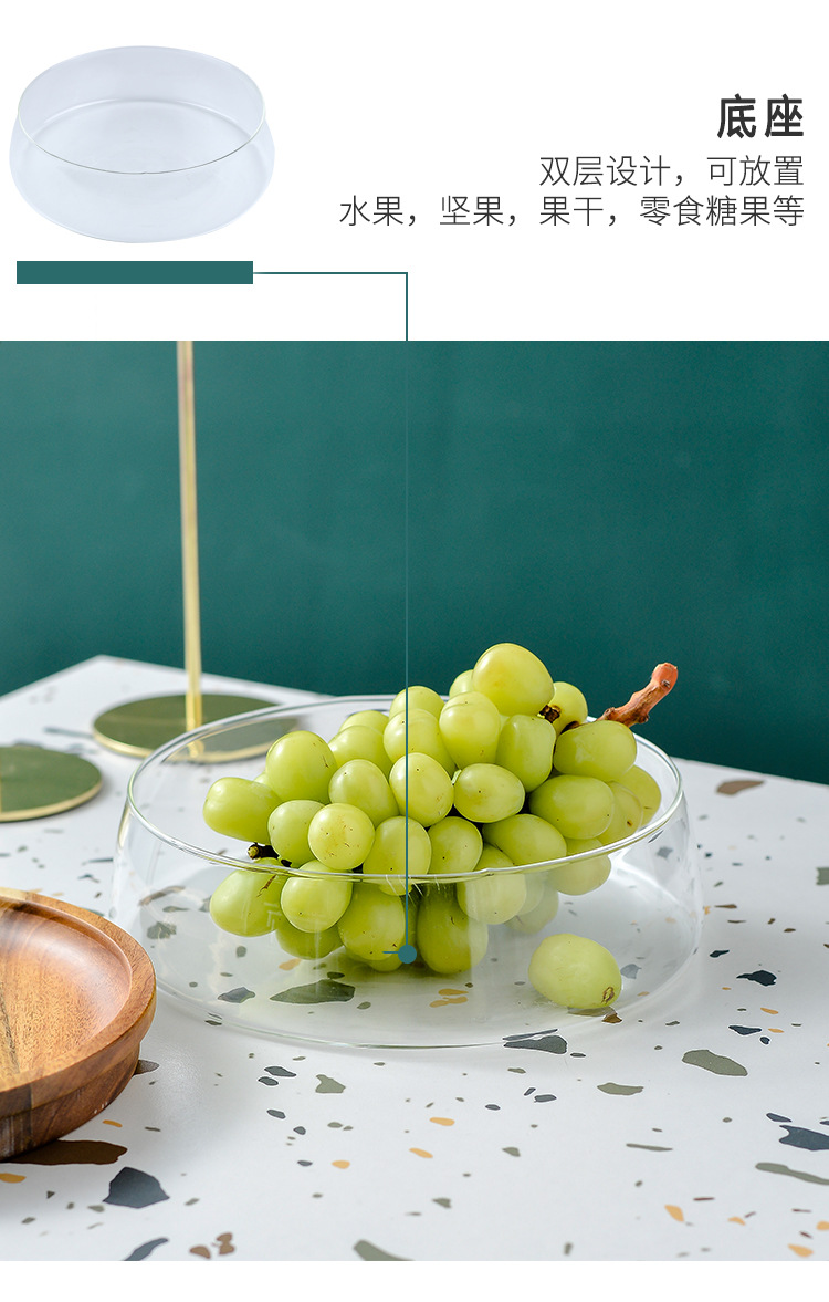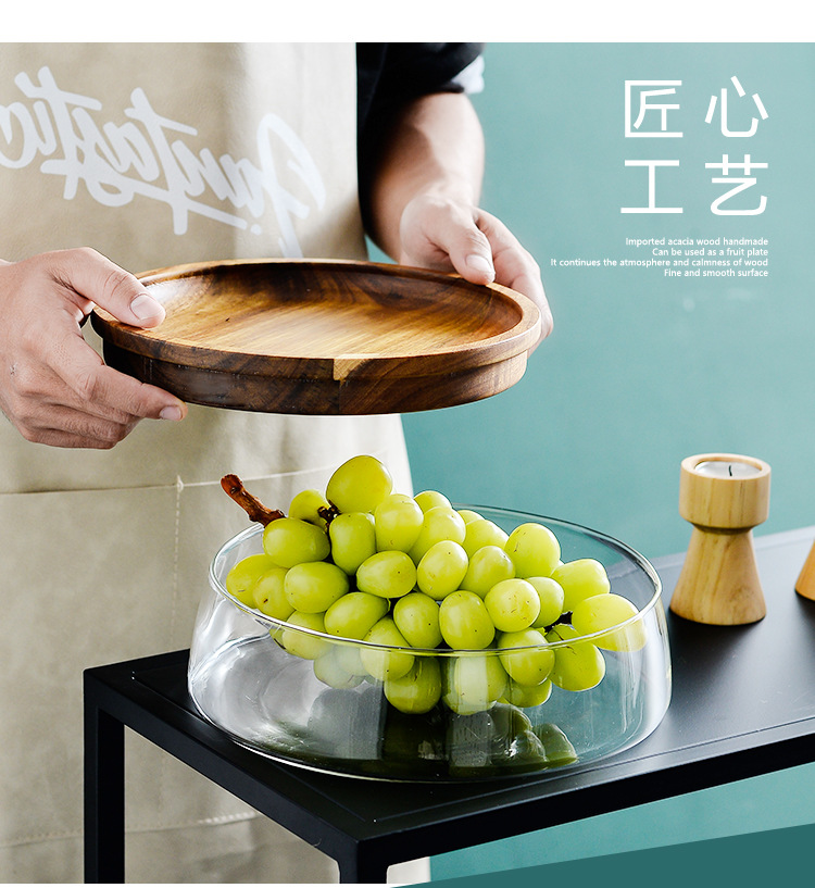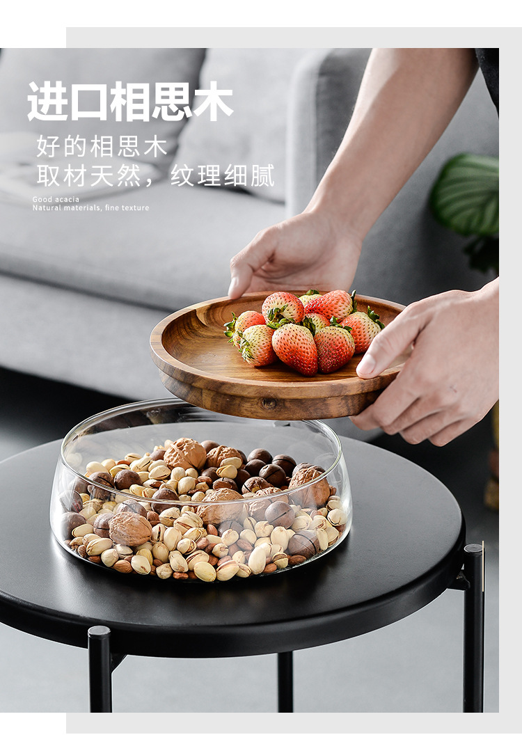 简约日式玻璃果盘客厅糖果盆干果盘木质收纳盒高脚水果盘收纳摆台