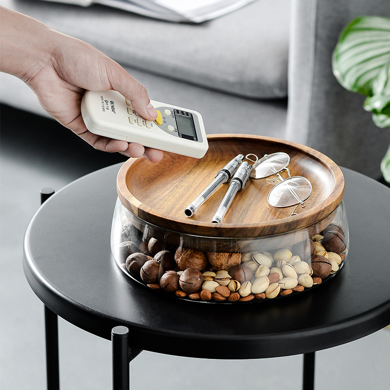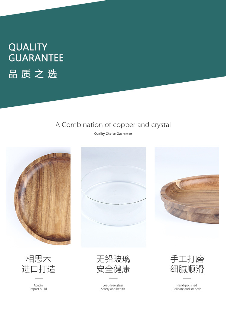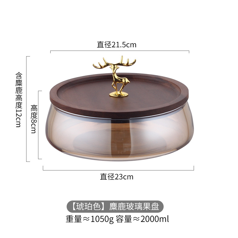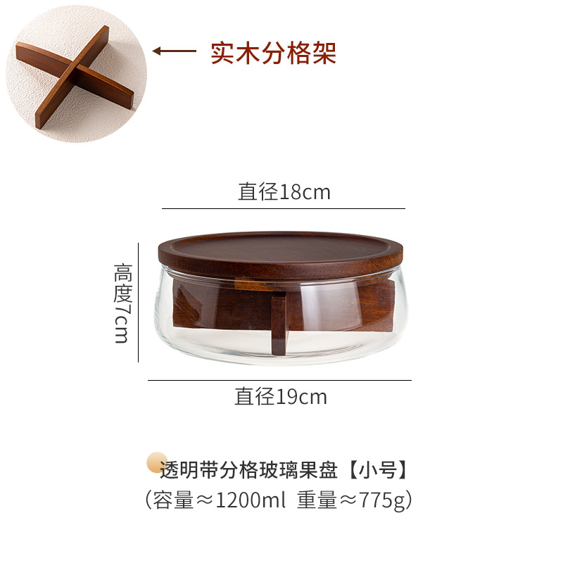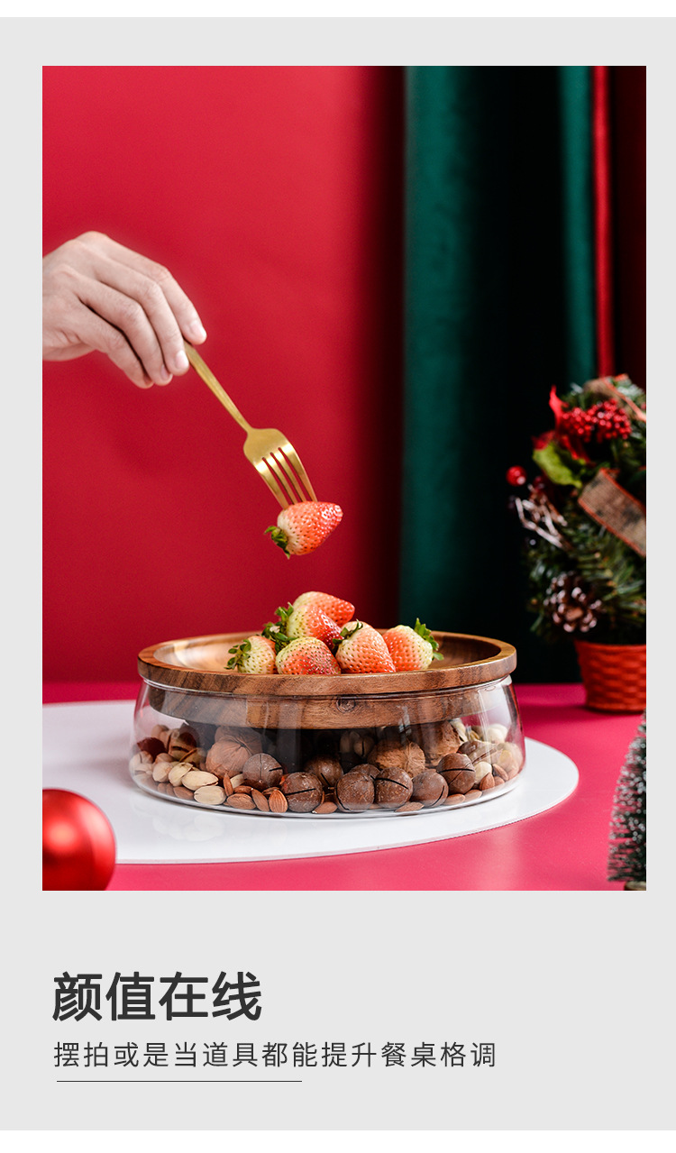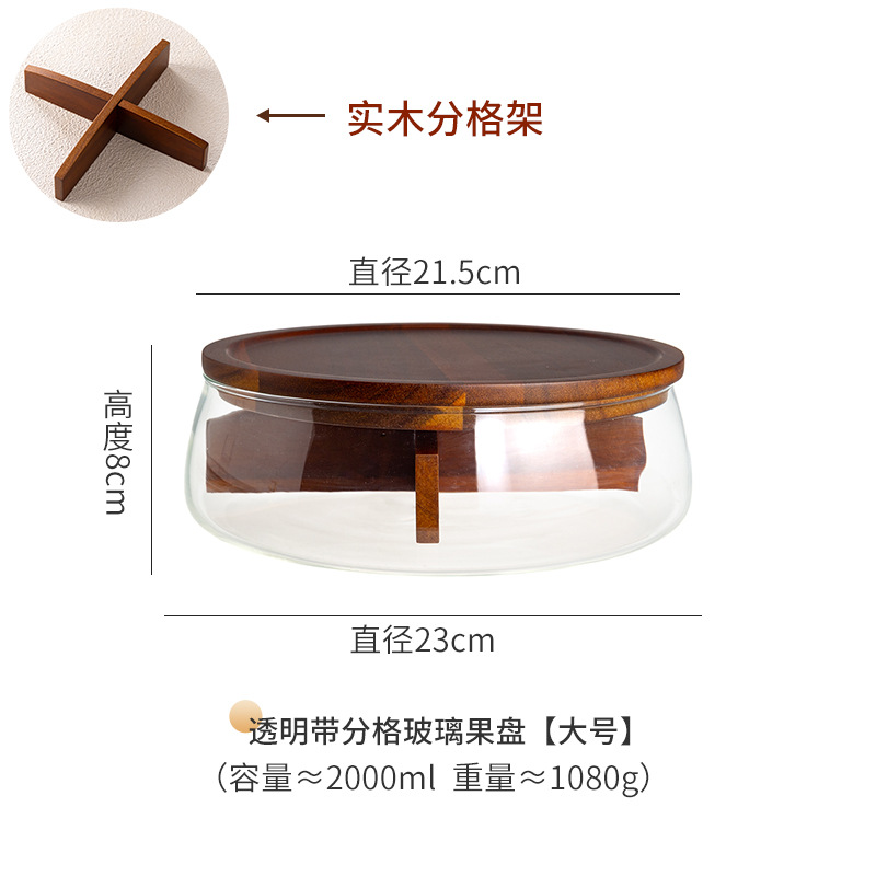 简约日式玻璃果盘客厅糖果盆干果盘木质收纳盒高脚水果盘收纳摆台