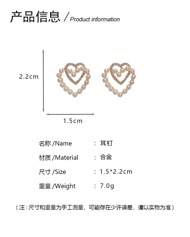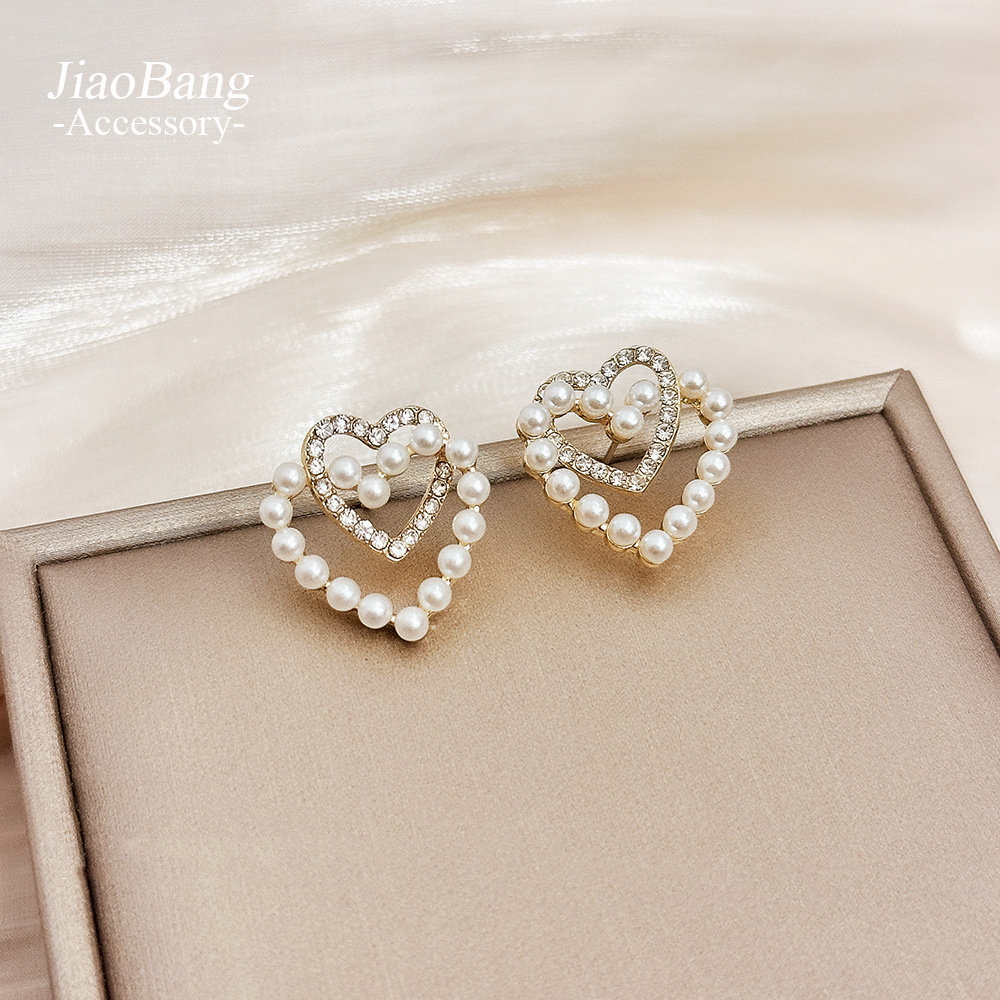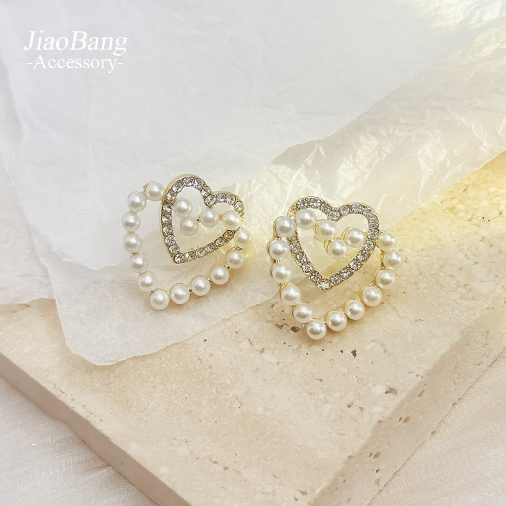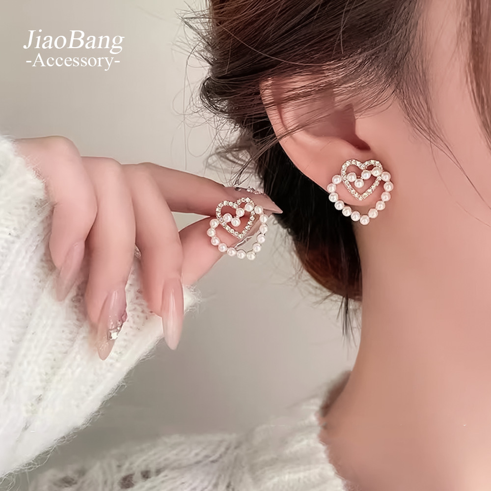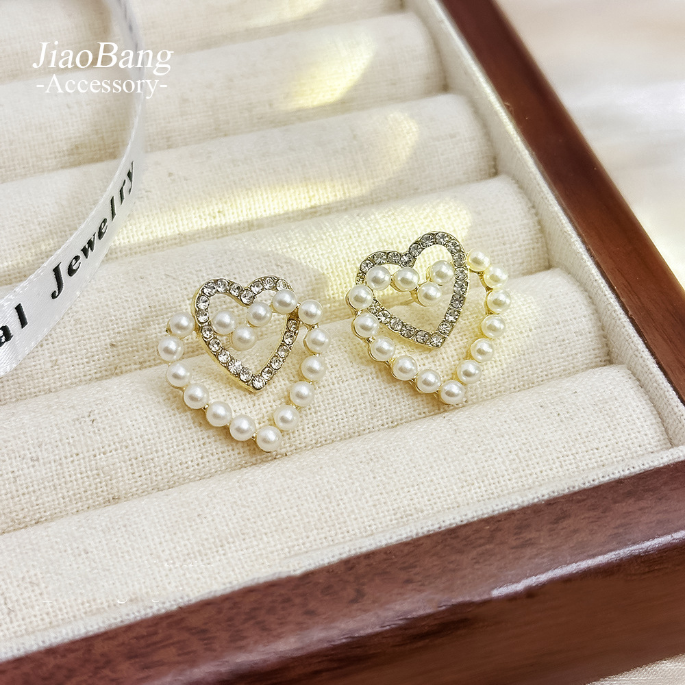 简约时尚珍珠爱心耳环女独特气质桃心耳钉高级感个性轻奢网红耳饰
