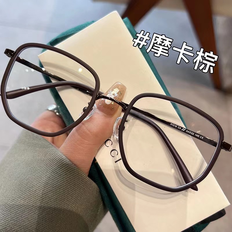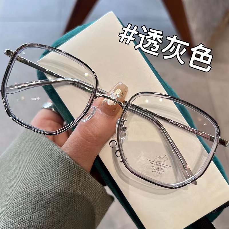 新款小红书网红素颜眼镜多边形镜框文艺平光镜防蓝光眼镜女架大框