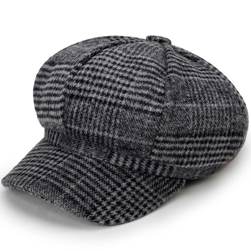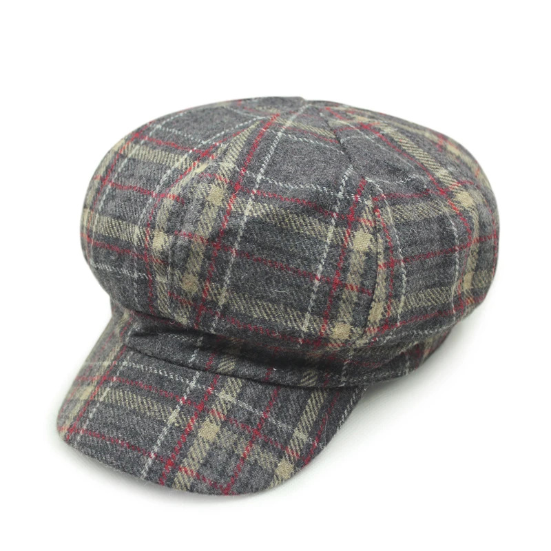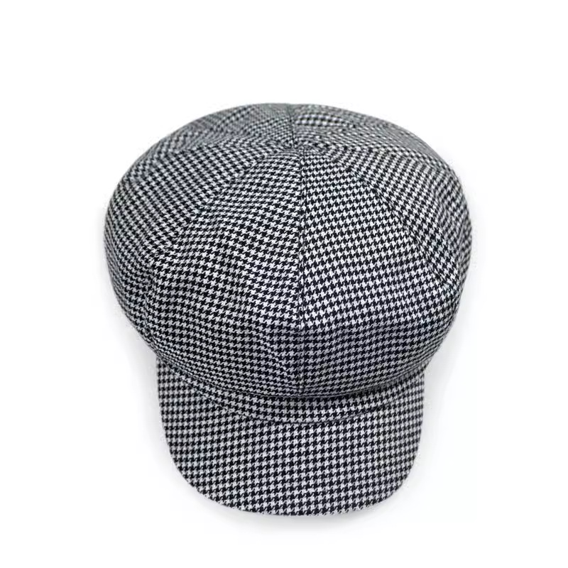 春秋季千鸟格子全封口八角帽女时尚文艺画家帽复古休闲鸭舌报童帽