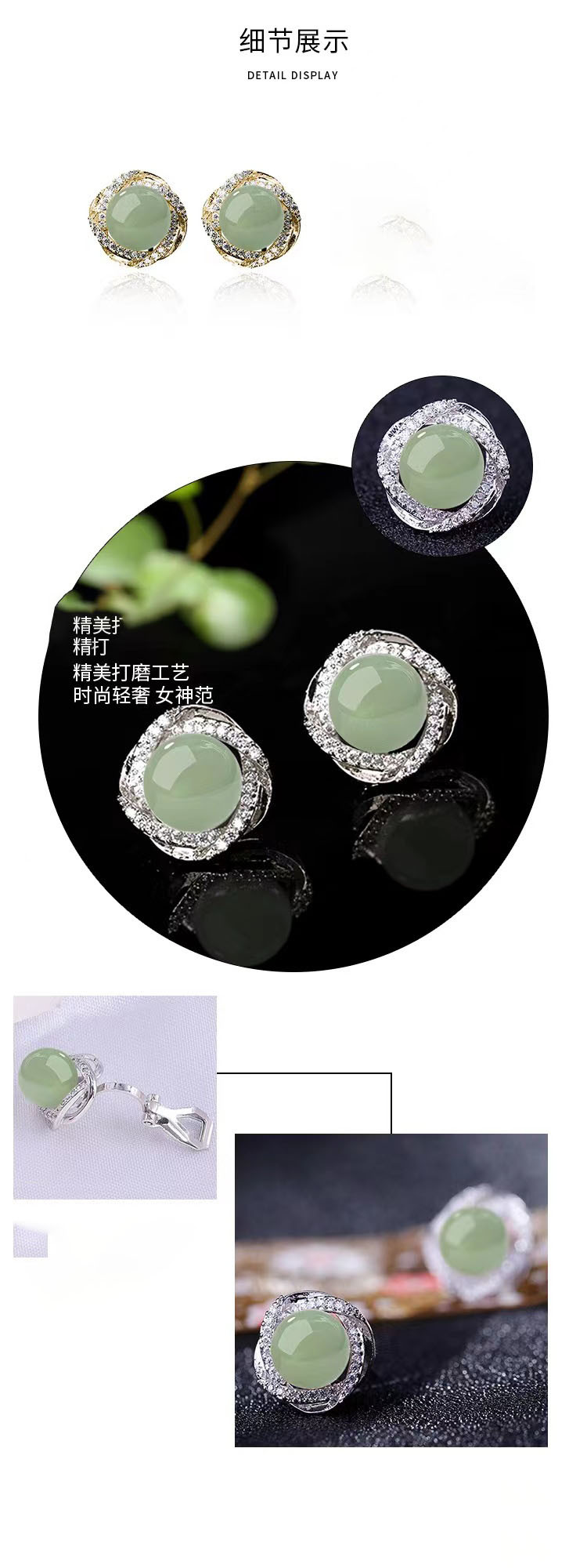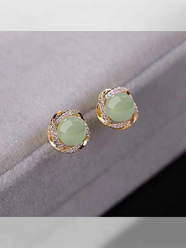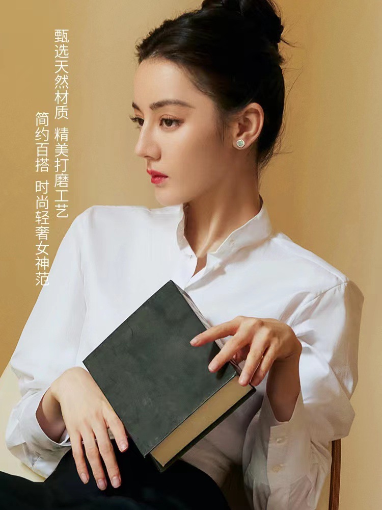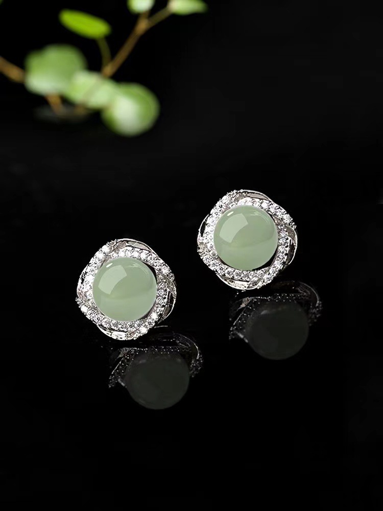 气质复古风耳环和田玉耳钉新款2023爆款民族风冰种耳饰耳夹高级感
