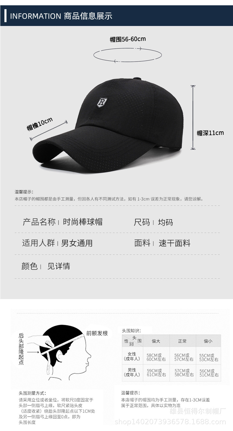 新款小R标鸭舌帽男女春秋户外防晒透气遮阳帽钓鱼登山跑步速干帽