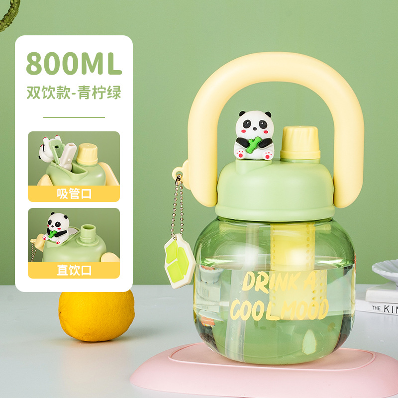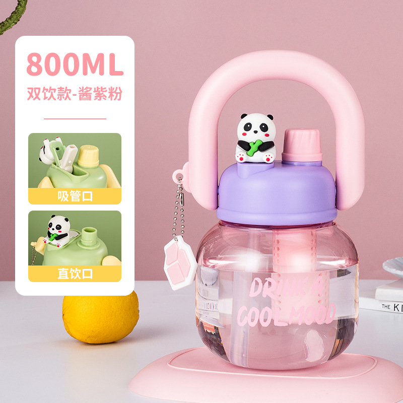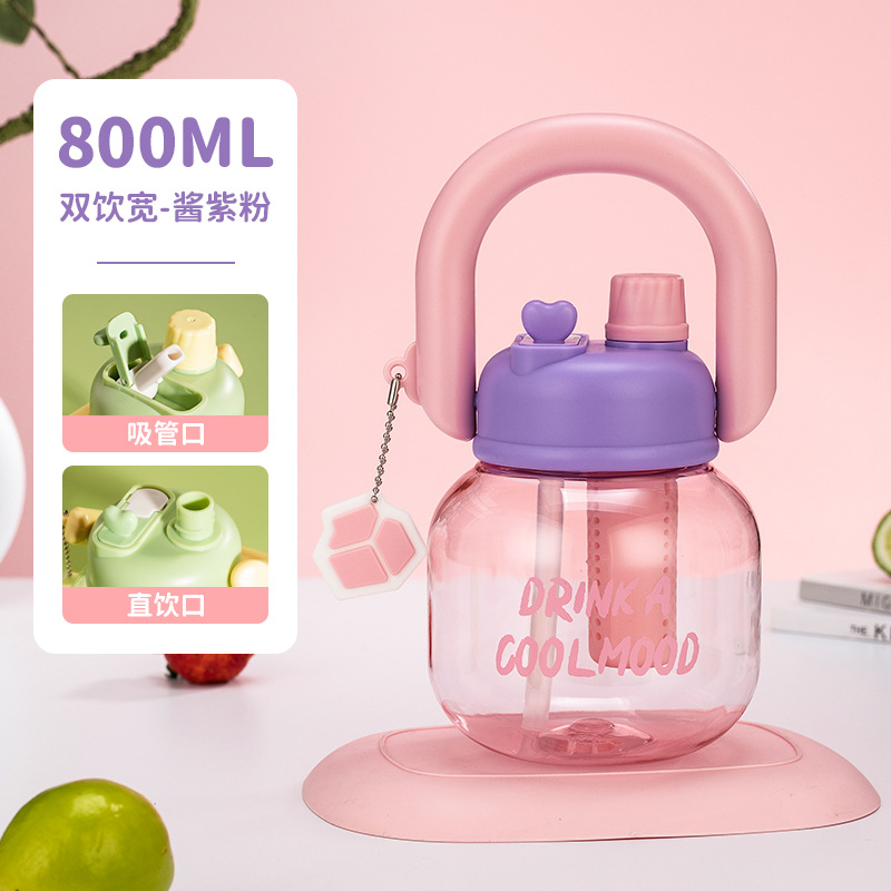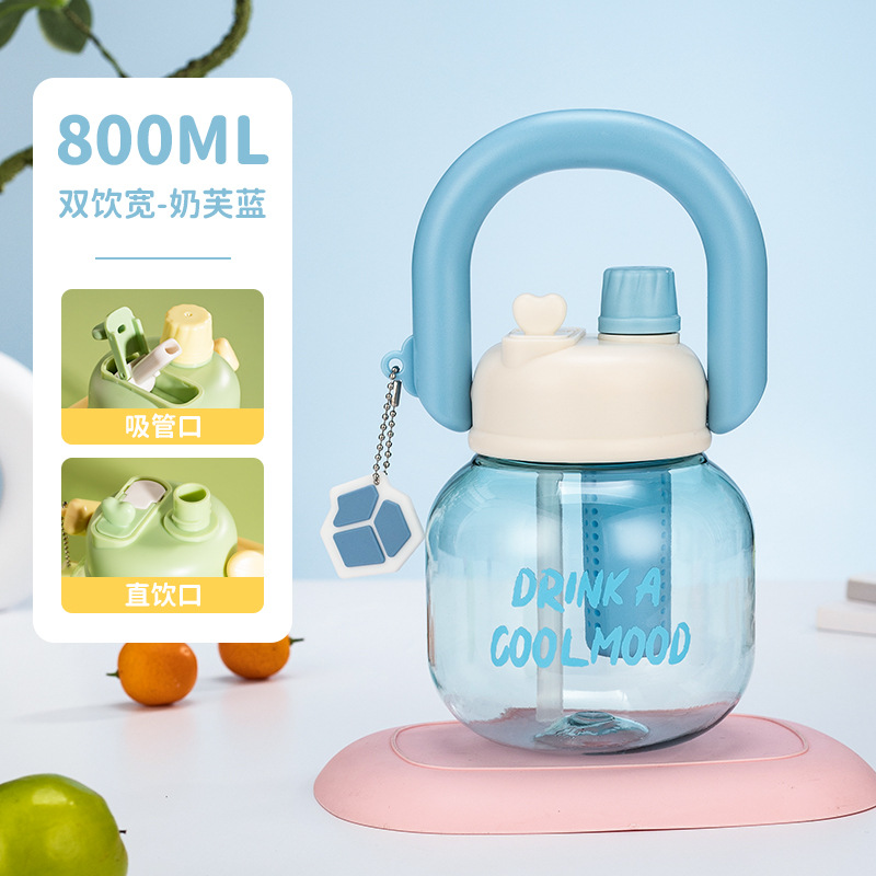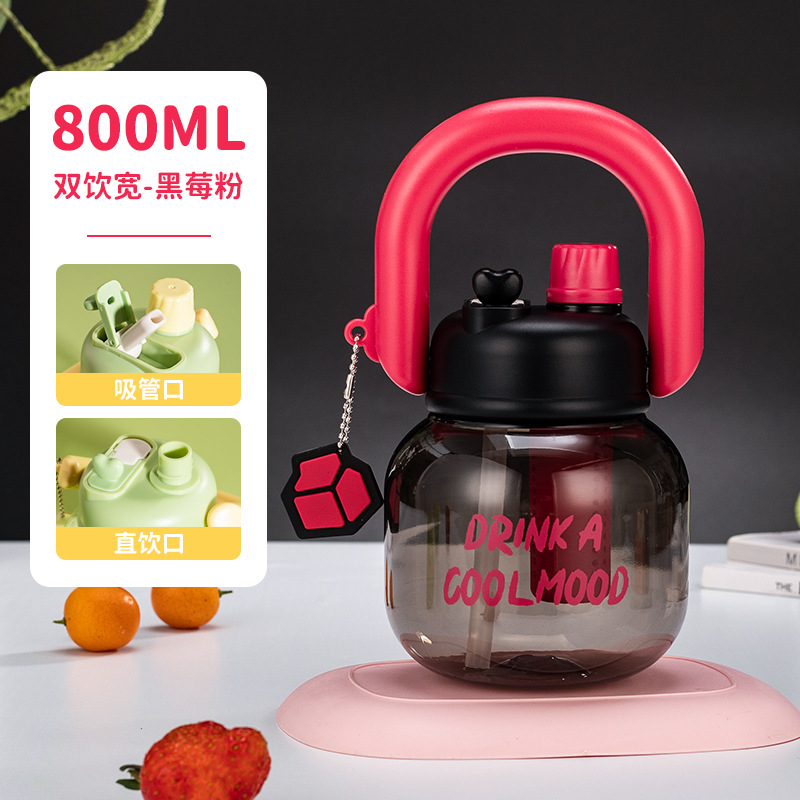 新款高颜值大肚杯大容量花茶杯男女学生水壶手提吸管杯双饮塑料杯