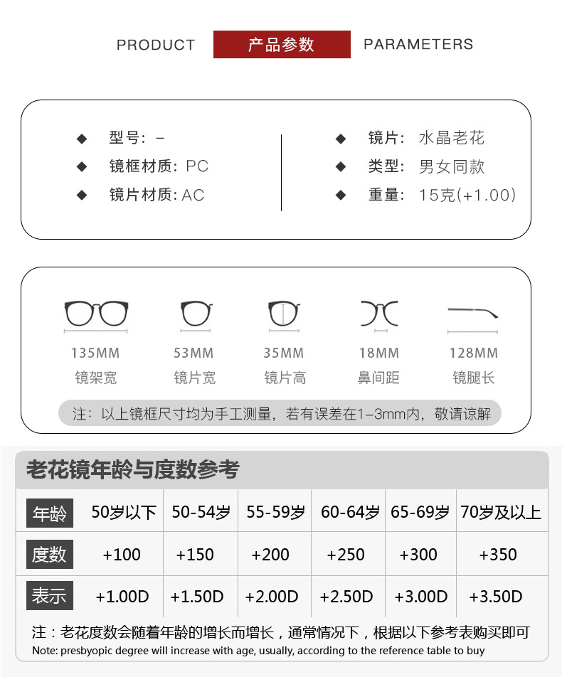 高清仿水晶男女老花镜专业摆地摊跑江湖老花镜舒适超轻老花镜批发