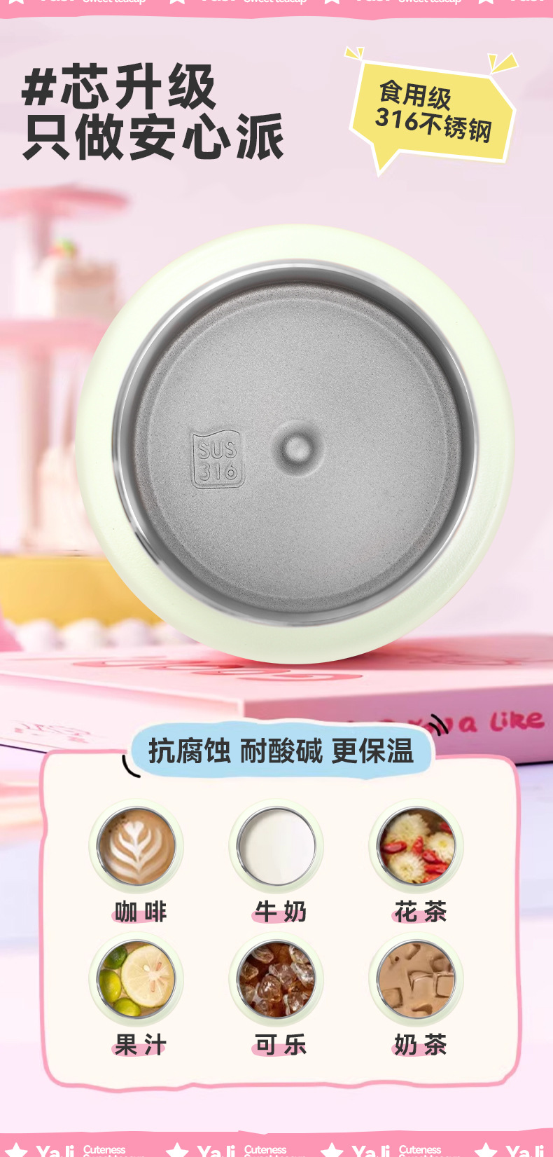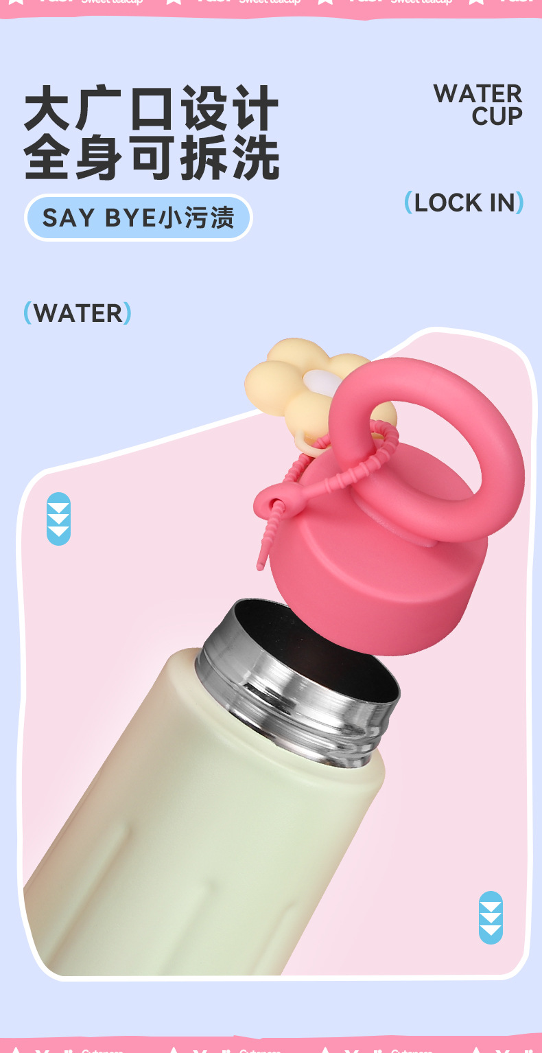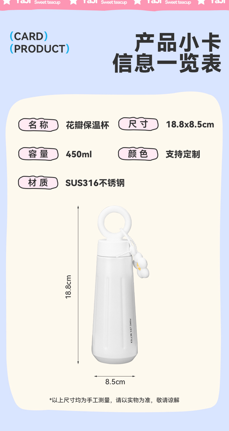 新款316不锈钢保温杯高颜值创意提手花瓣杯户外便携运动水杯现货