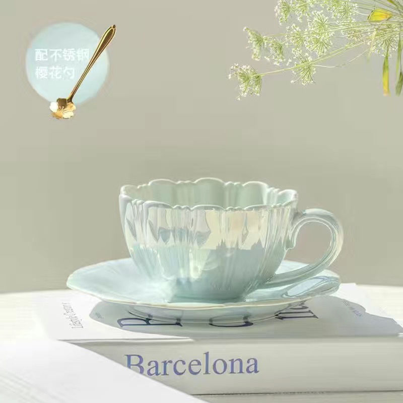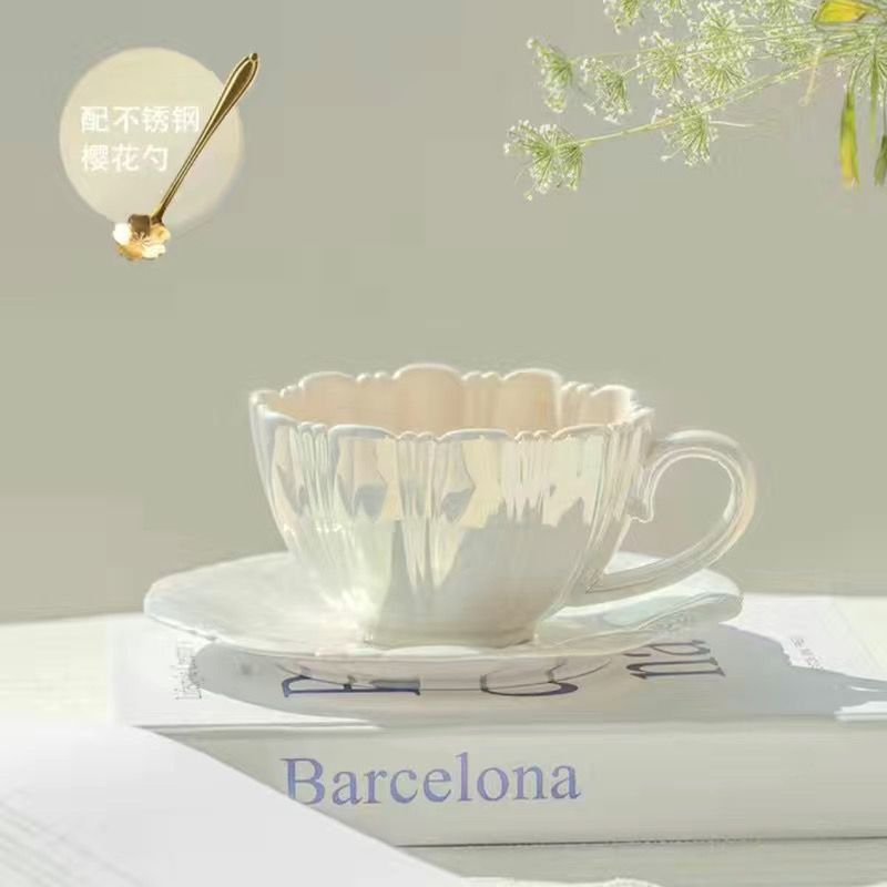 花瓣高颜值咖啡杯碟套装高级礼品陶瓷杯下午茶马克杯ins水杯套装