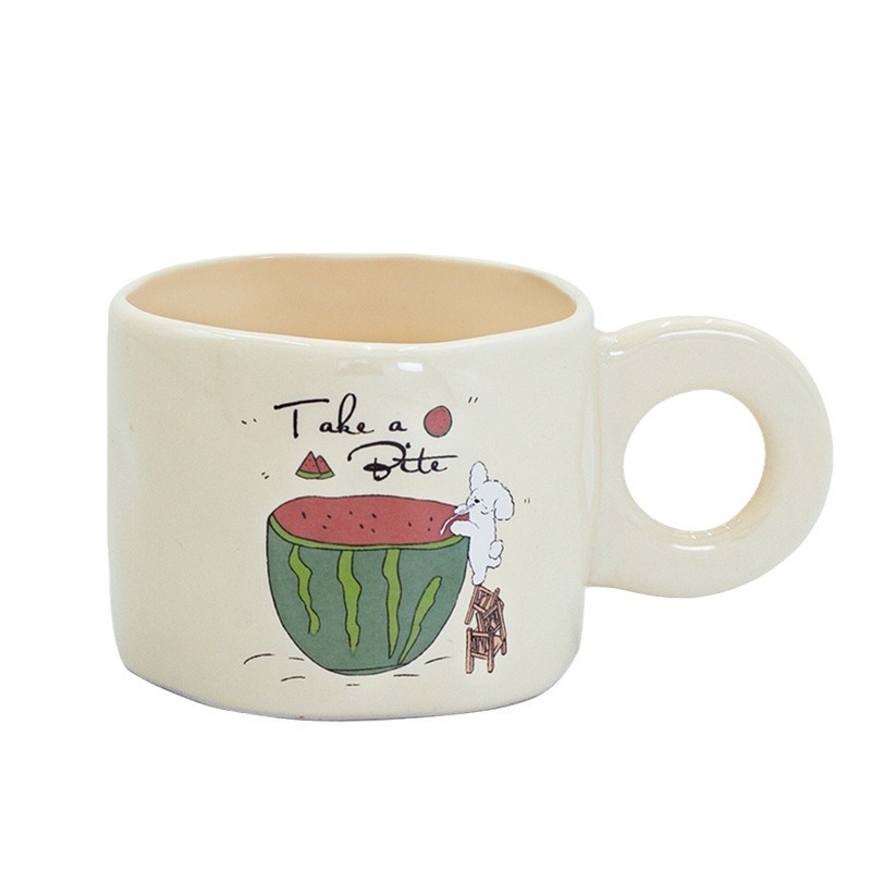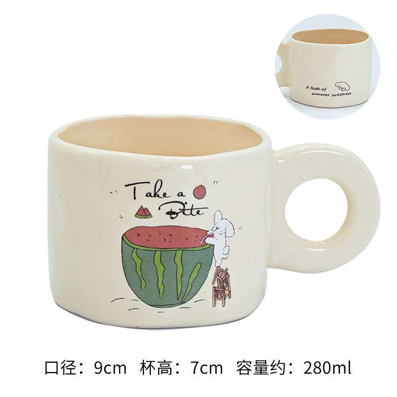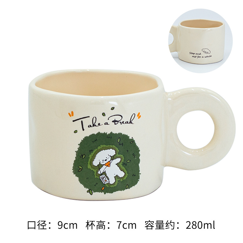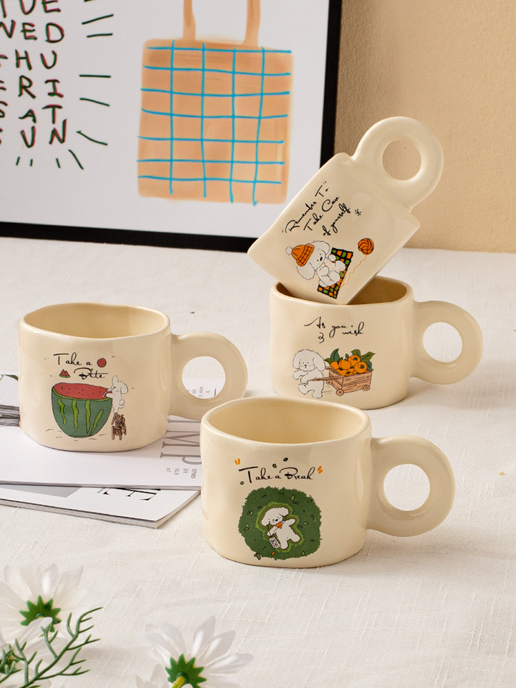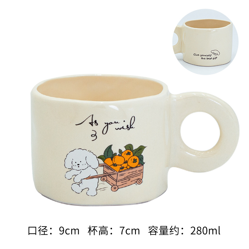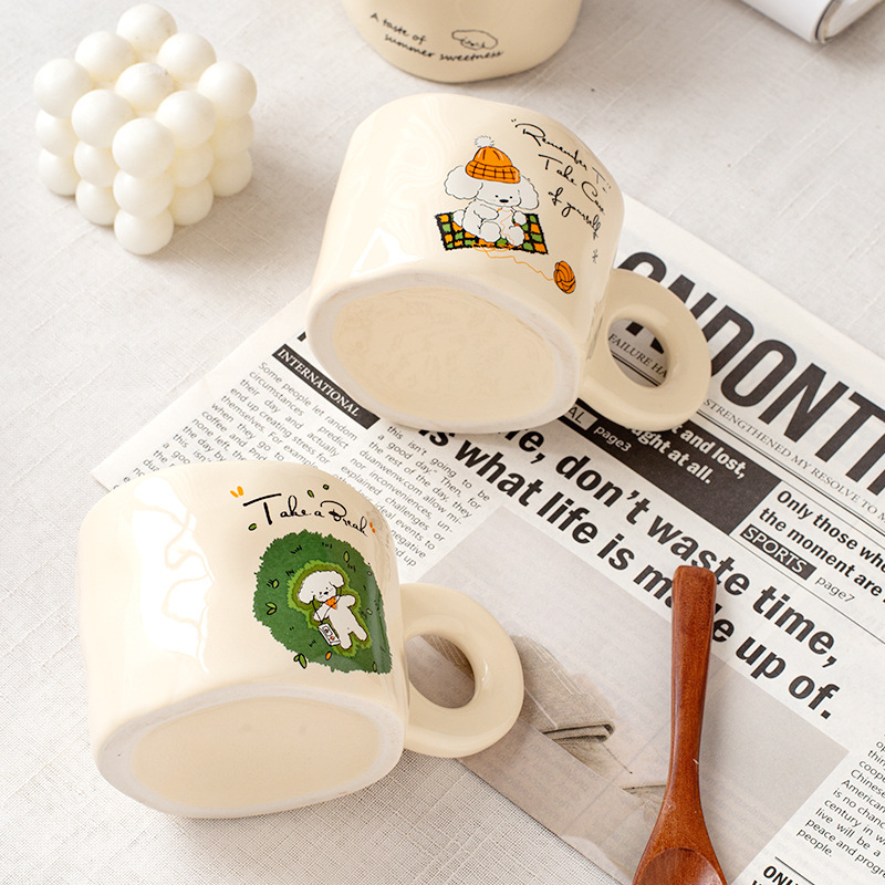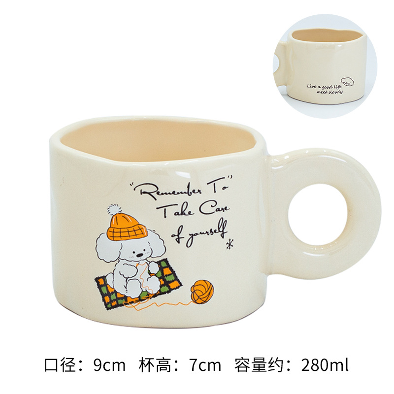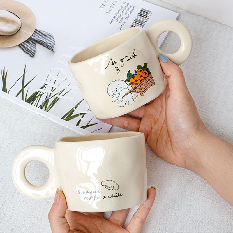 可爱线条狗狗ins奶油风手捏陶瓷马克杯伴手礼logo可定情侣闺蜜杯
