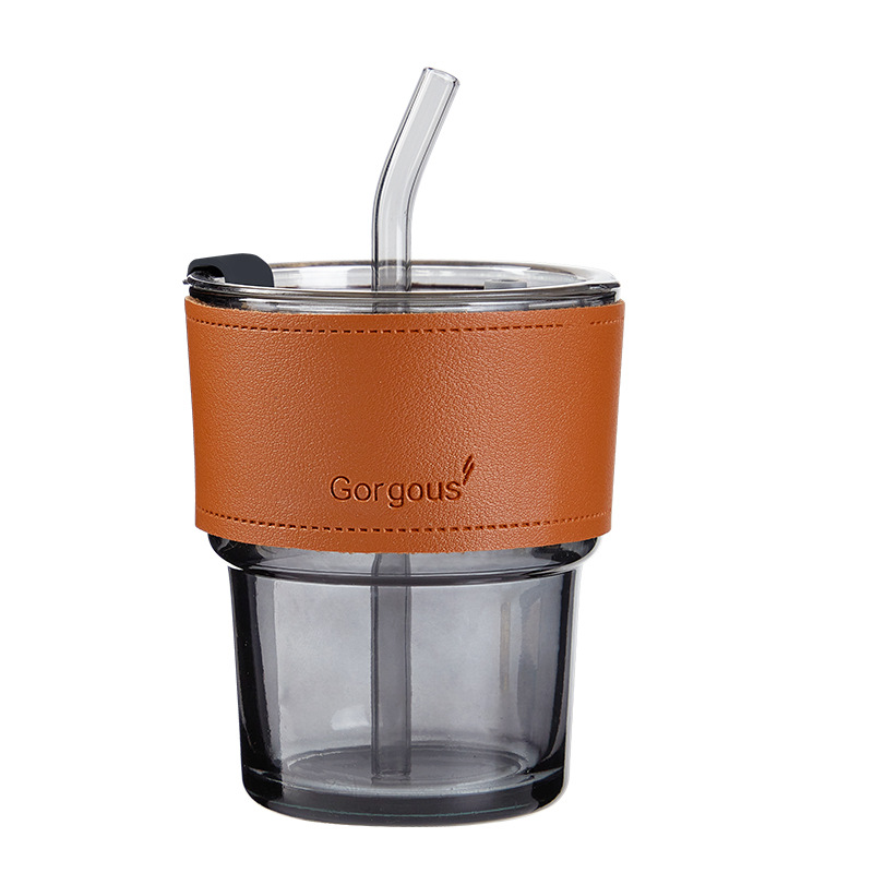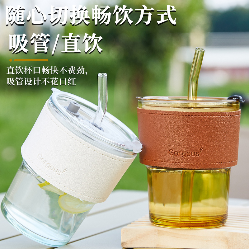 压机竹节杯高颜值玻璃水杯通用礼品杯玻璃吸管双饮杯批发咖啡杯
