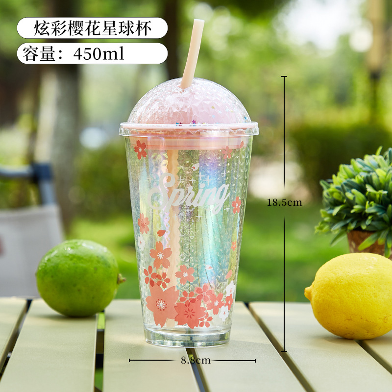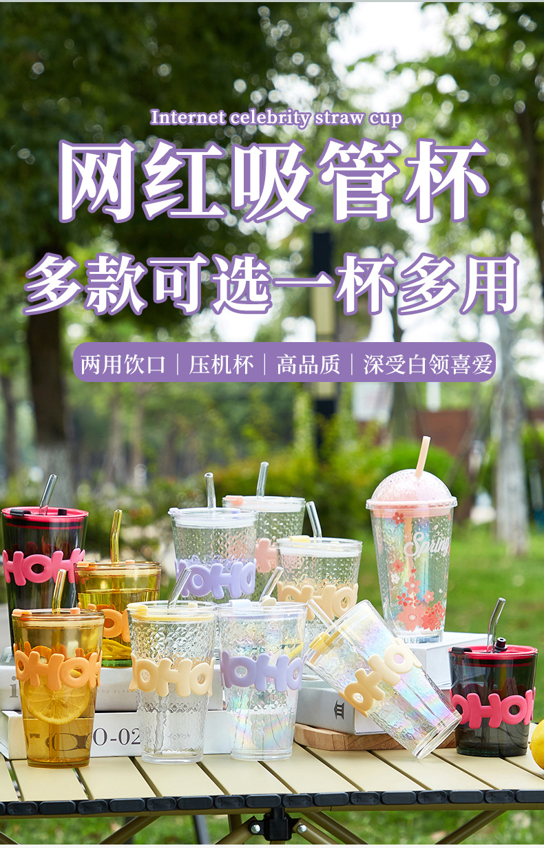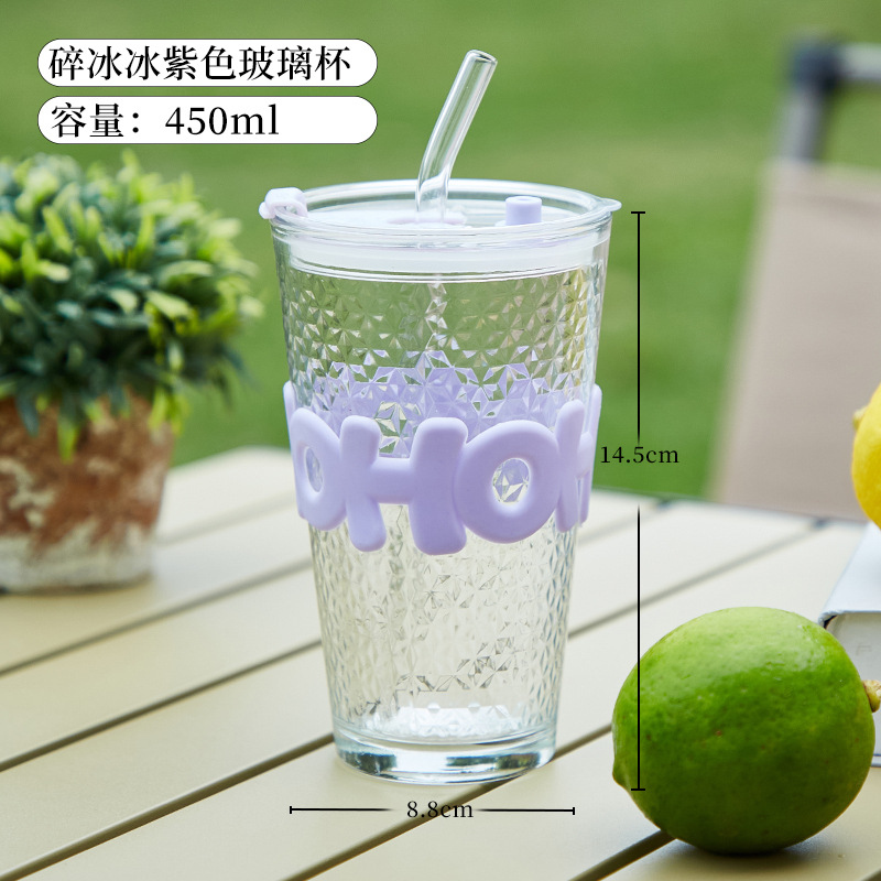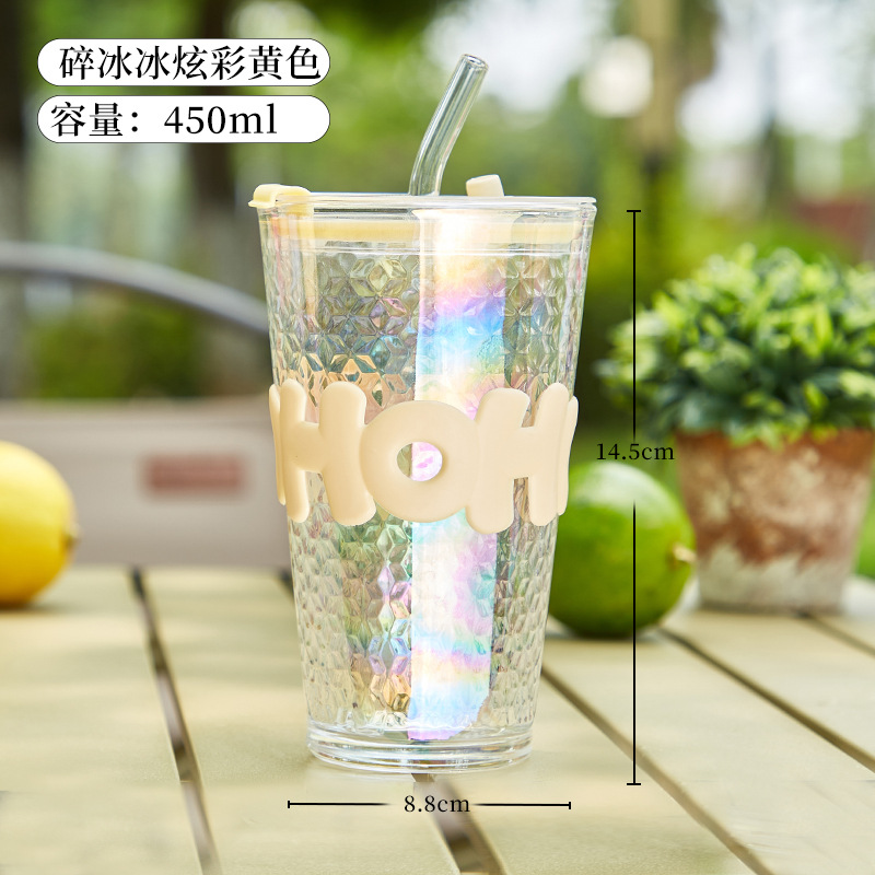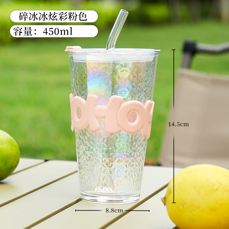 字母高颜值玻璃水杯大容量少女炫彩字母杯带盖冷萃咖啡杯吸管杯子