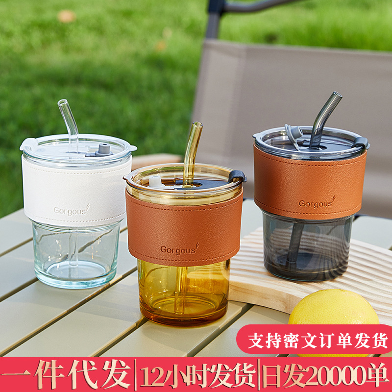 爆款ins风吸管玻璃咖啡果汁杯子引流广告礼品水杯印制logo竹节杯