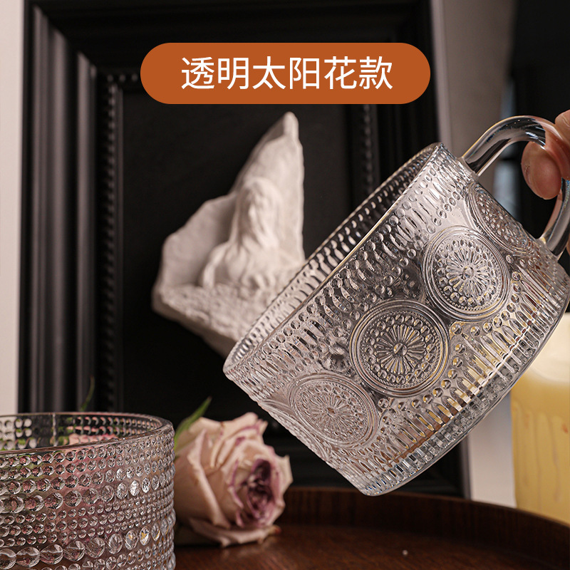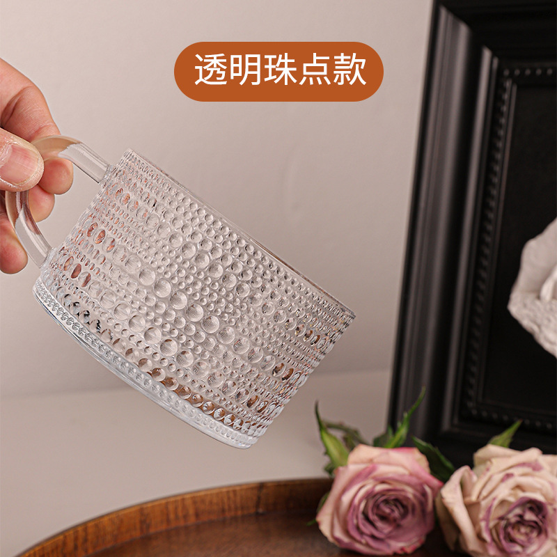 网红小熊锤纹水杯女士咖啡牛奶杯高颜值家用带把手早餐礼品玻璃杯