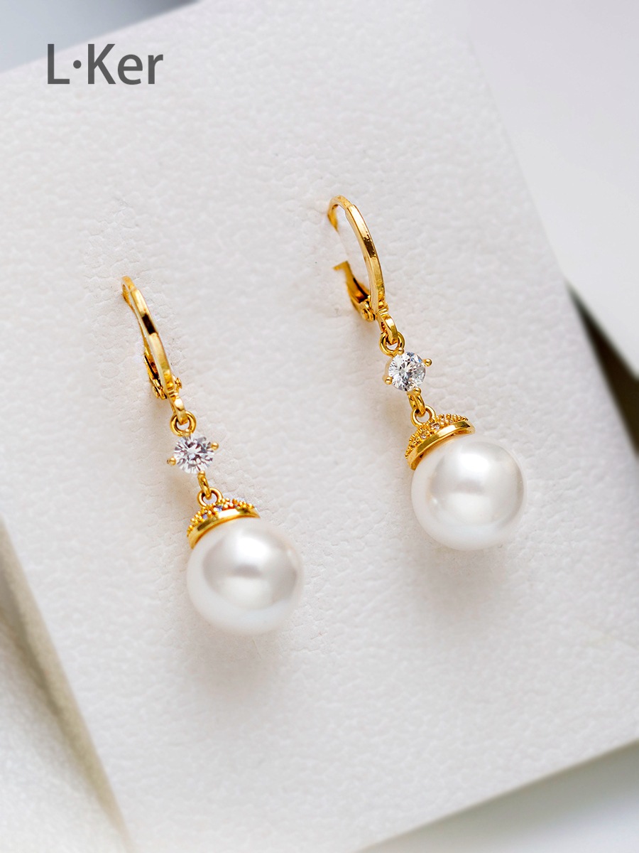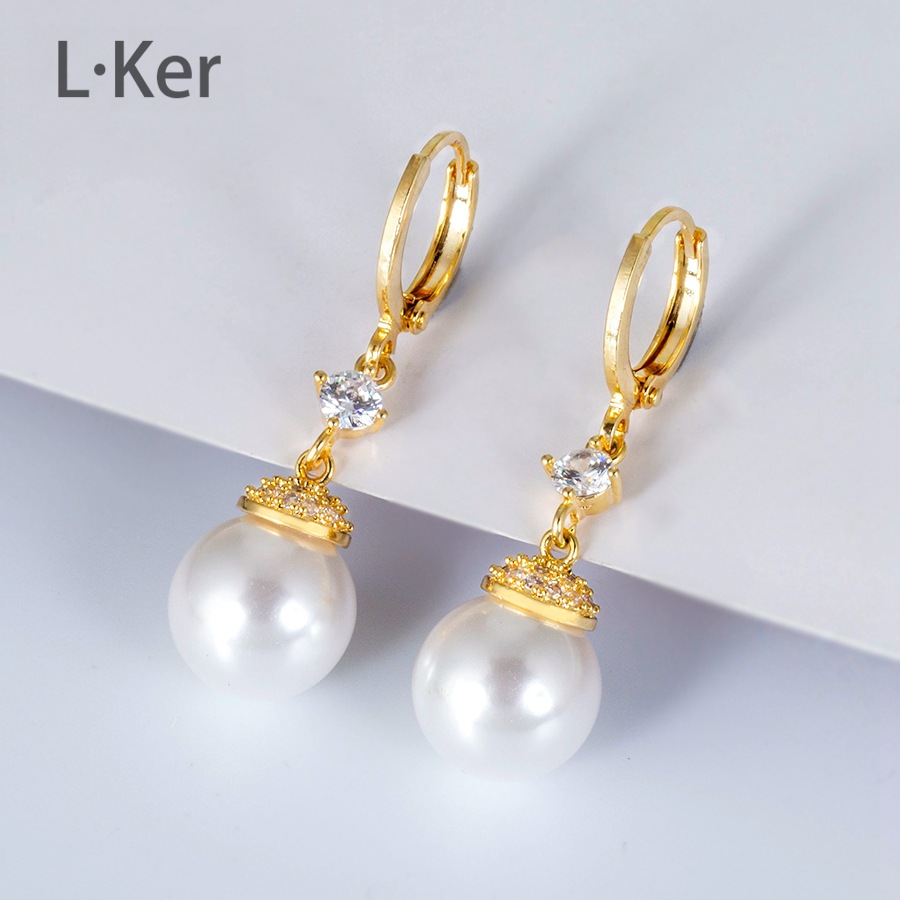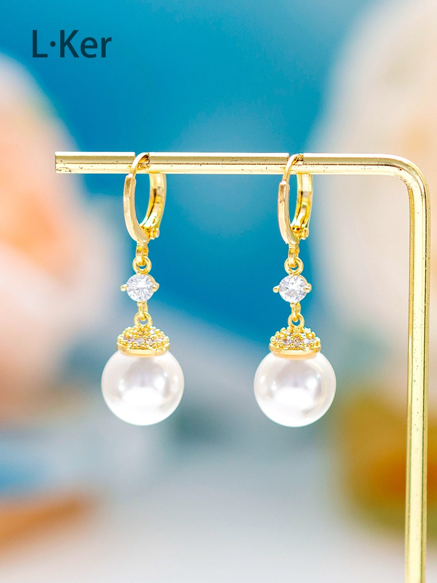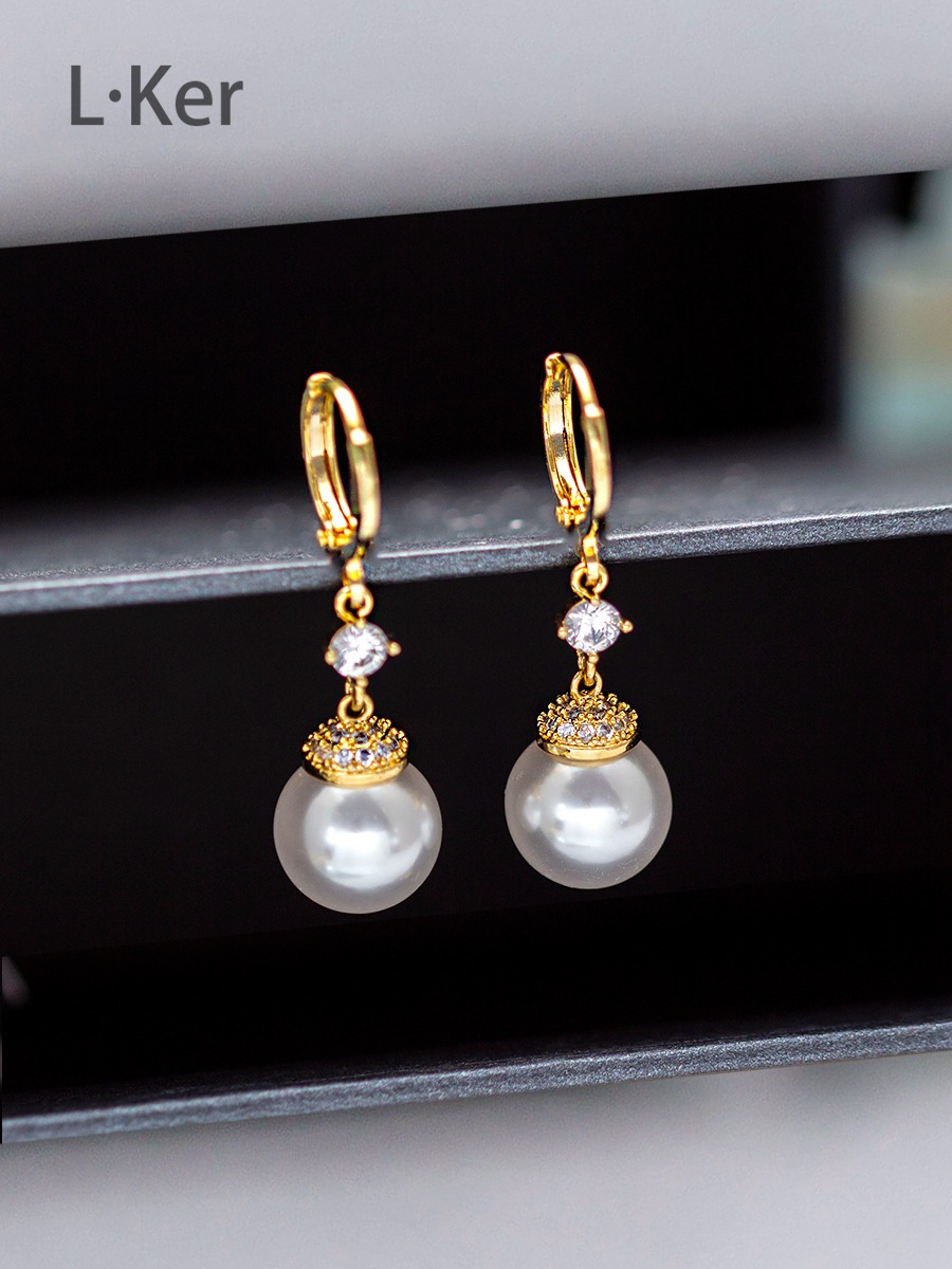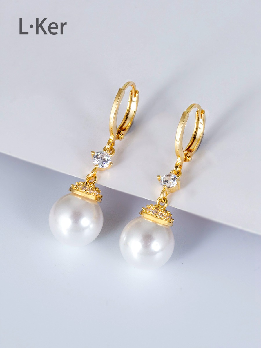 蓝可儿 合成立方氧化锆[珠光]水滴圆形珠珠女士时尚耳环1011