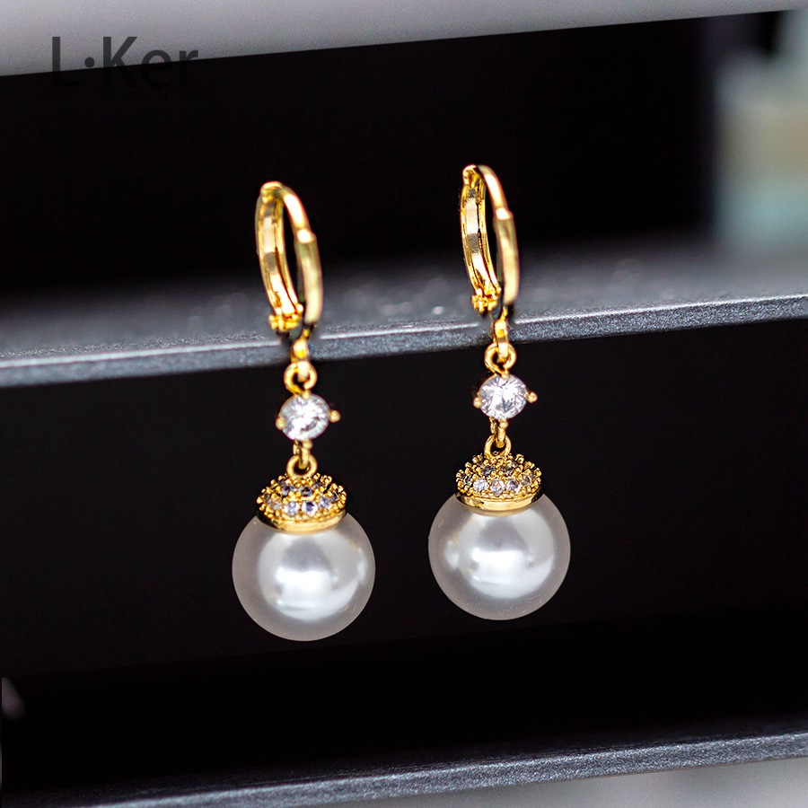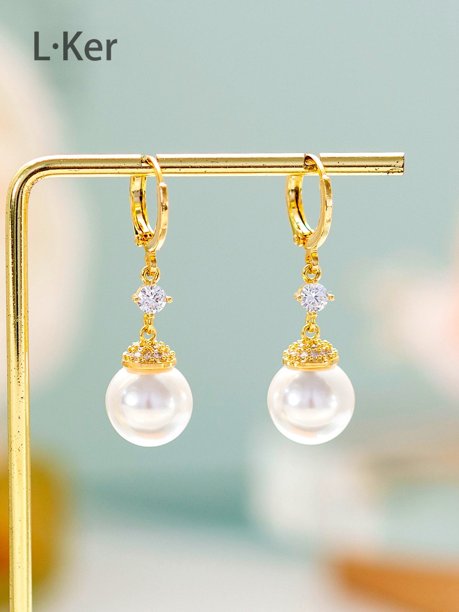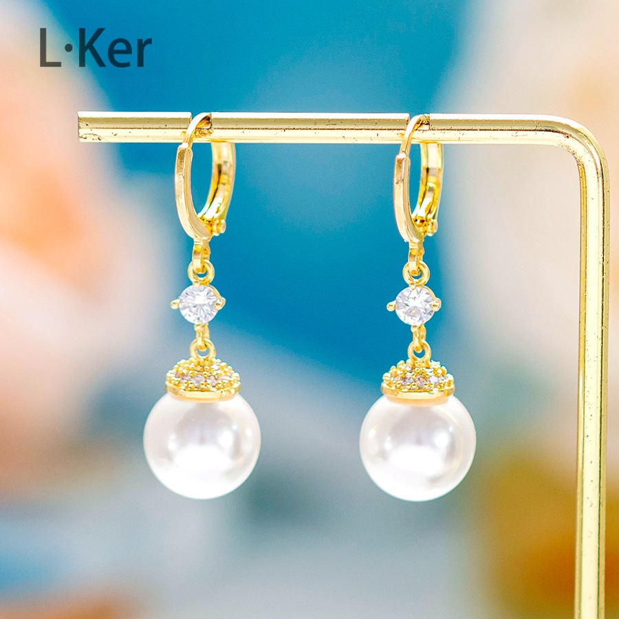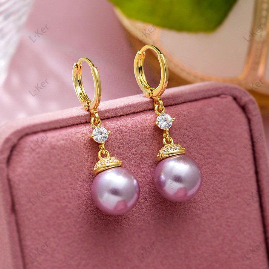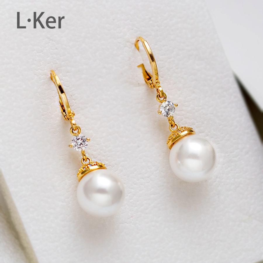 蓝可儿 合成立方氧化锆[珠光]水滴圆形珠珠女士时尚耳环1011