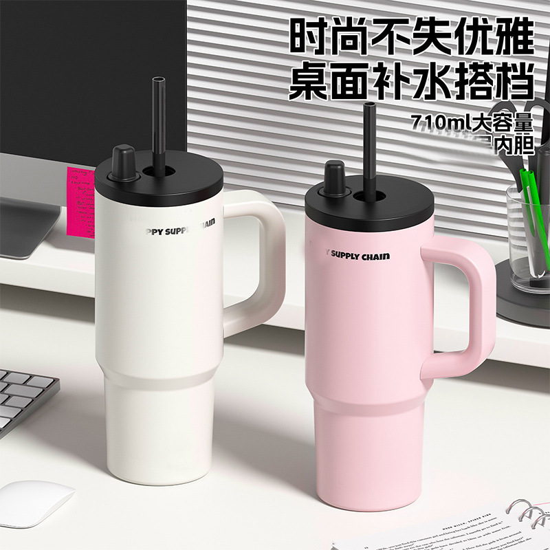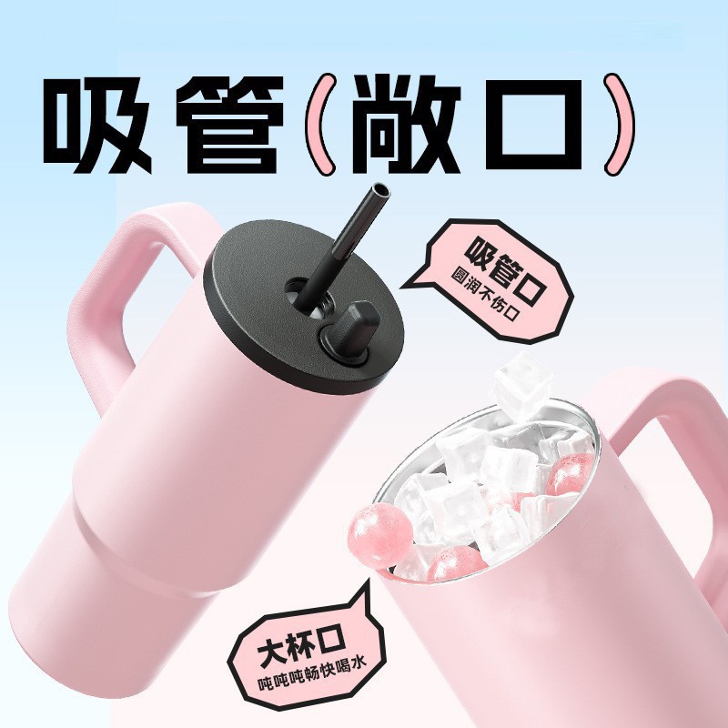 新款大容量咖啡杯316不锈钢保温杯户外车载水杯便携随行吸管杯子