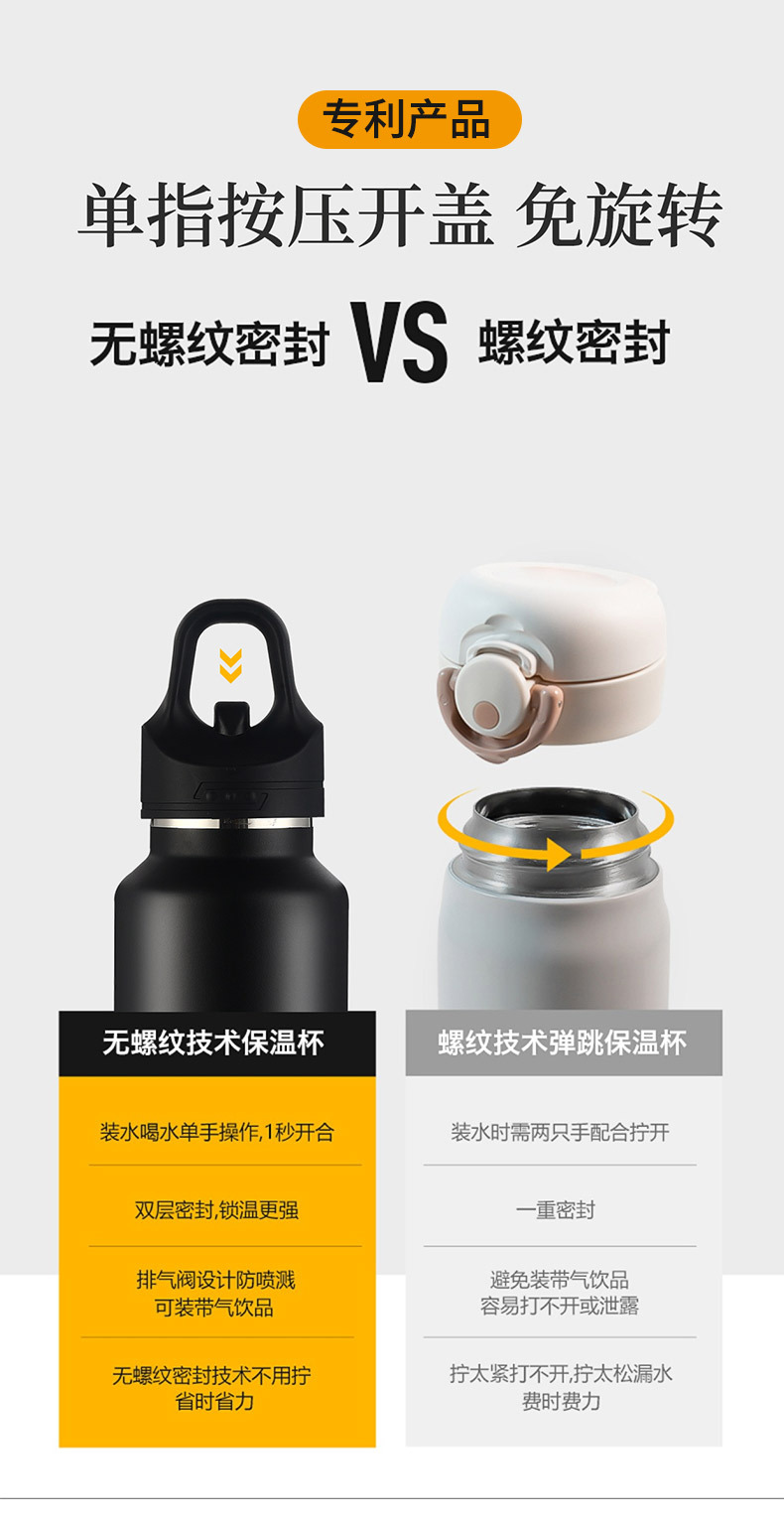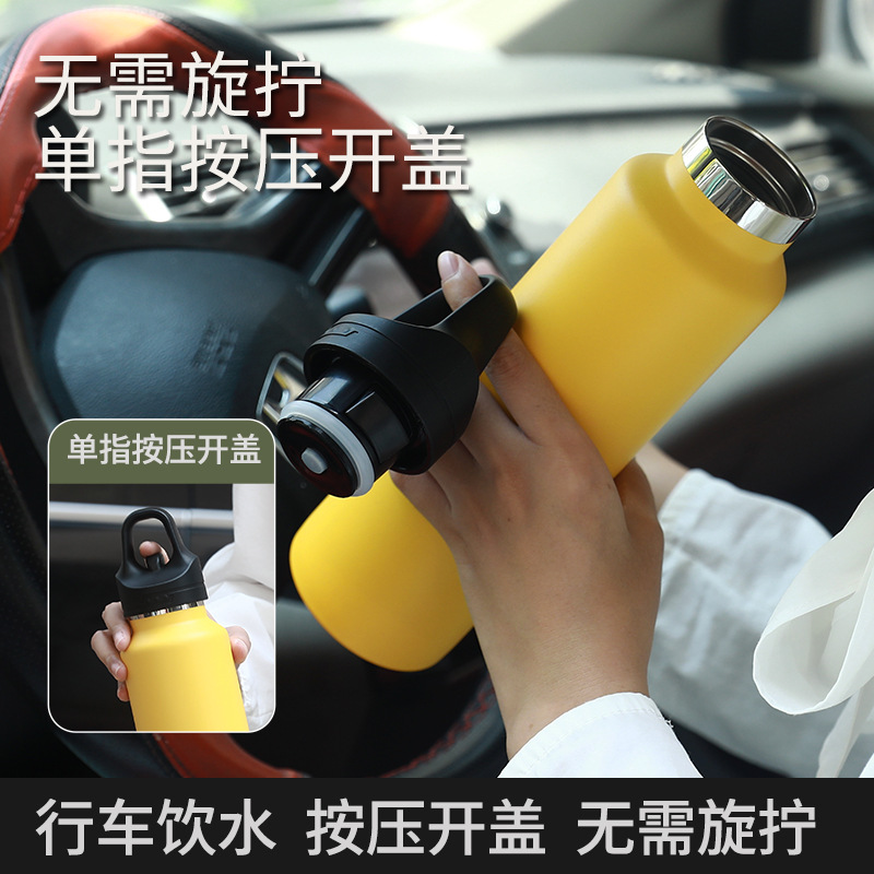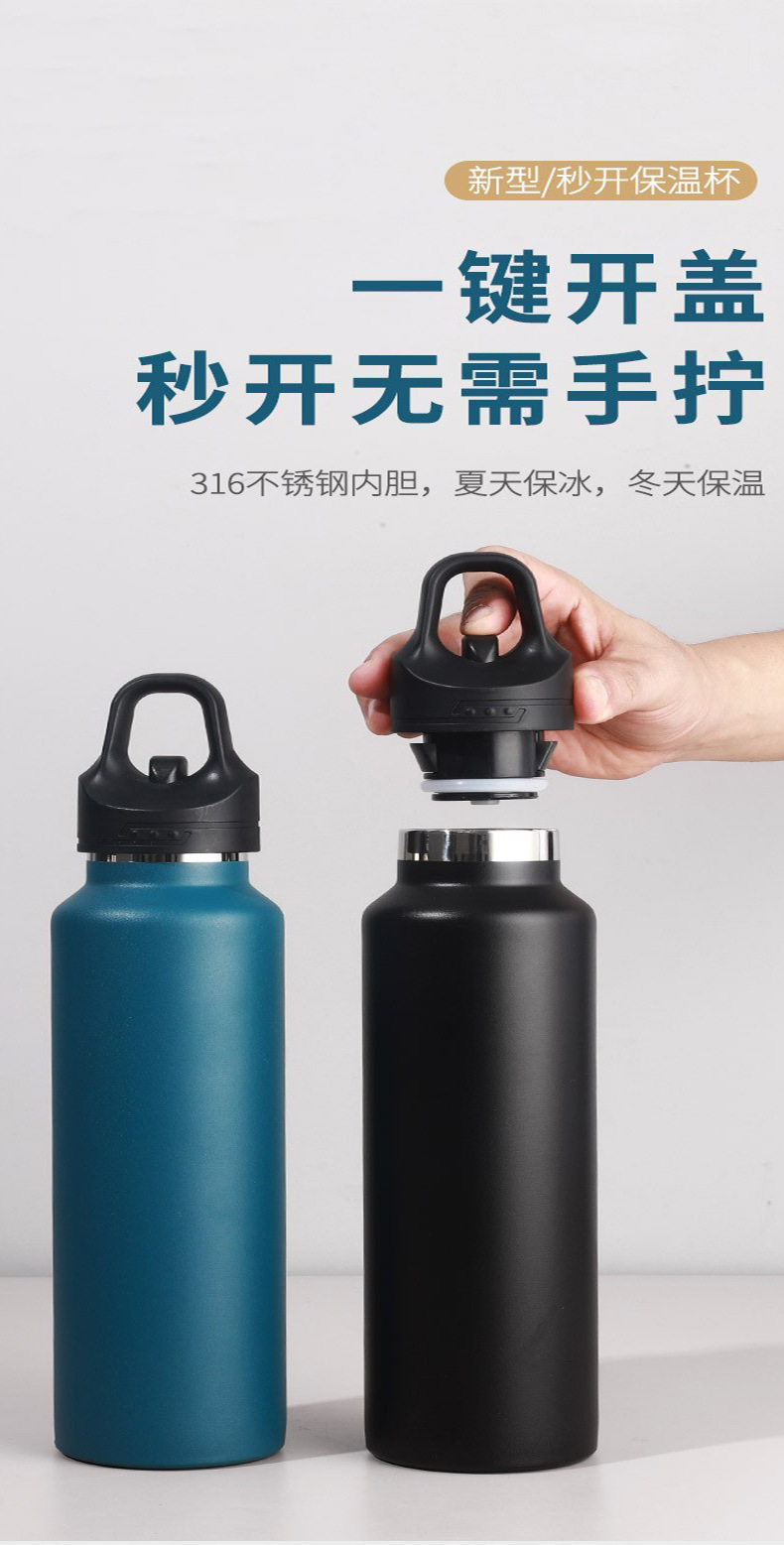 新款无螺纹单指速开保温杯316保温壶真空保冷水杯不锈钢运动水壶
